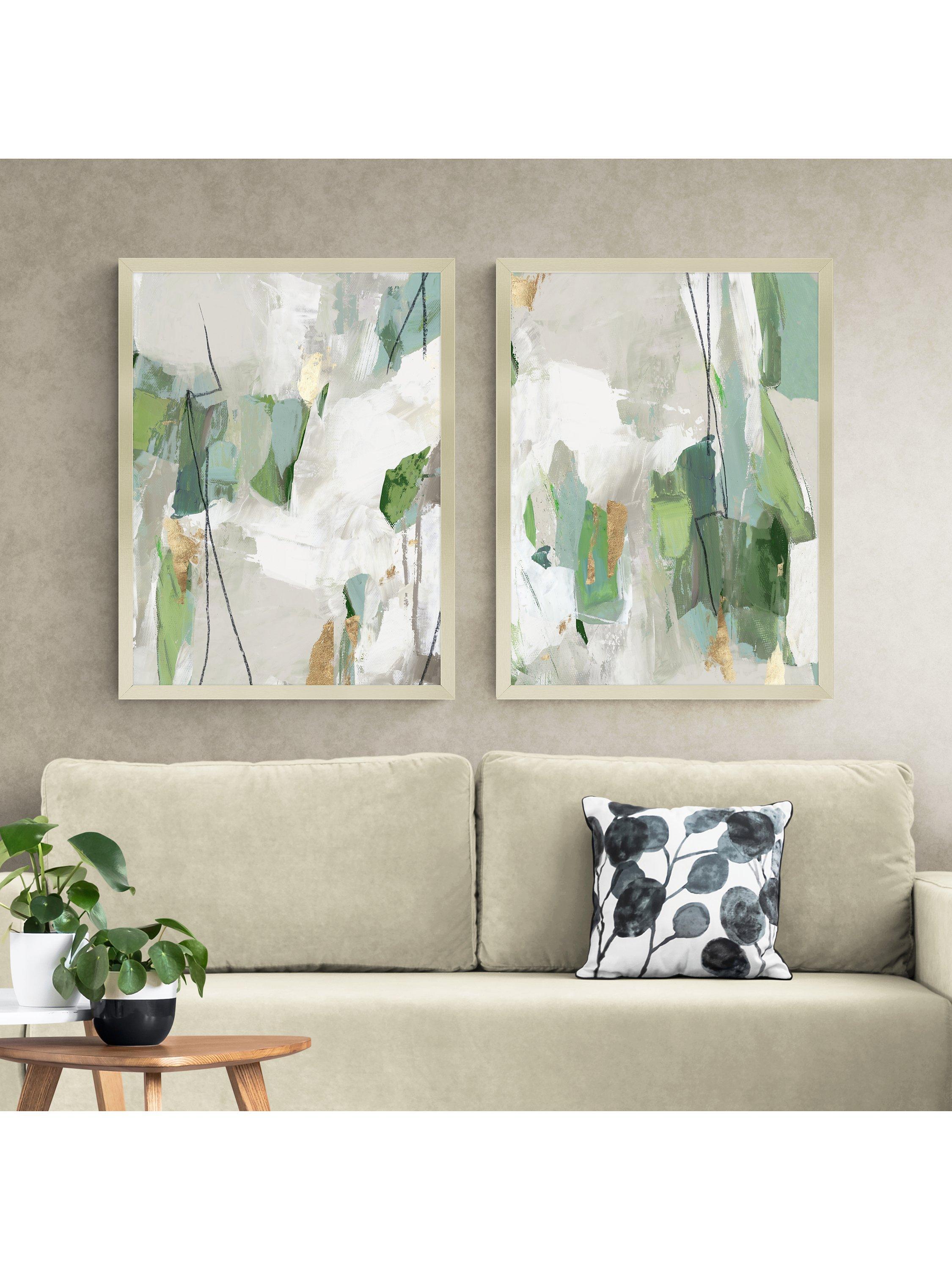 Pair of abstract prints by artist Tom Reeves, unglazed and finished with a hand-applied artist's texture gel. Made in the UK, each one is presented in a box frame, ready to hang on your wall.