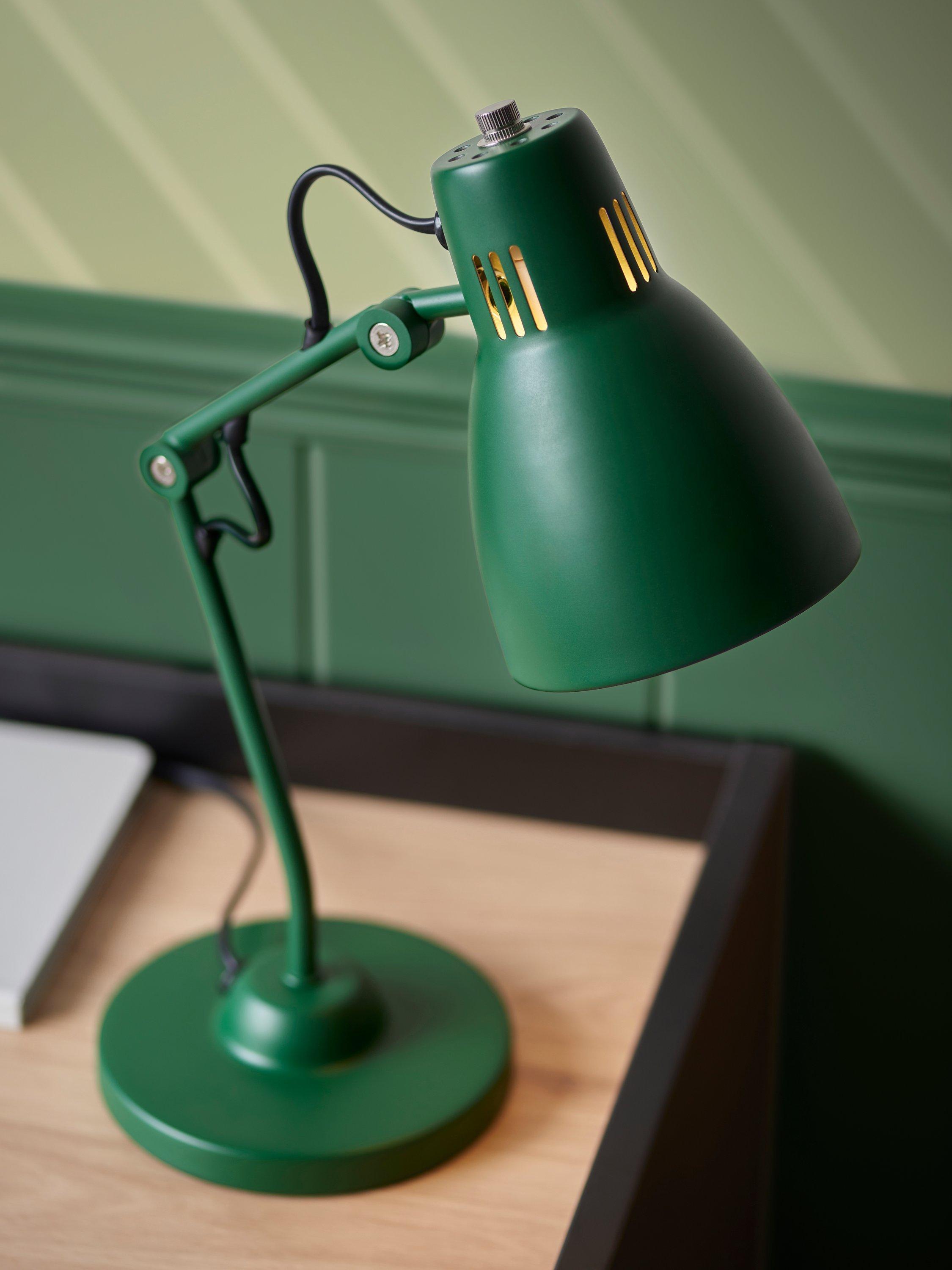 This excellent-value task lamp has an adjustable head, allowing you to direct the bright wash of light exactly where you need it. Designed in a compact shape so it's ideal, placed on a desk or bedside table. Available in a painted: gloss, matt or metallic finish, let its retro style stand out in your space.