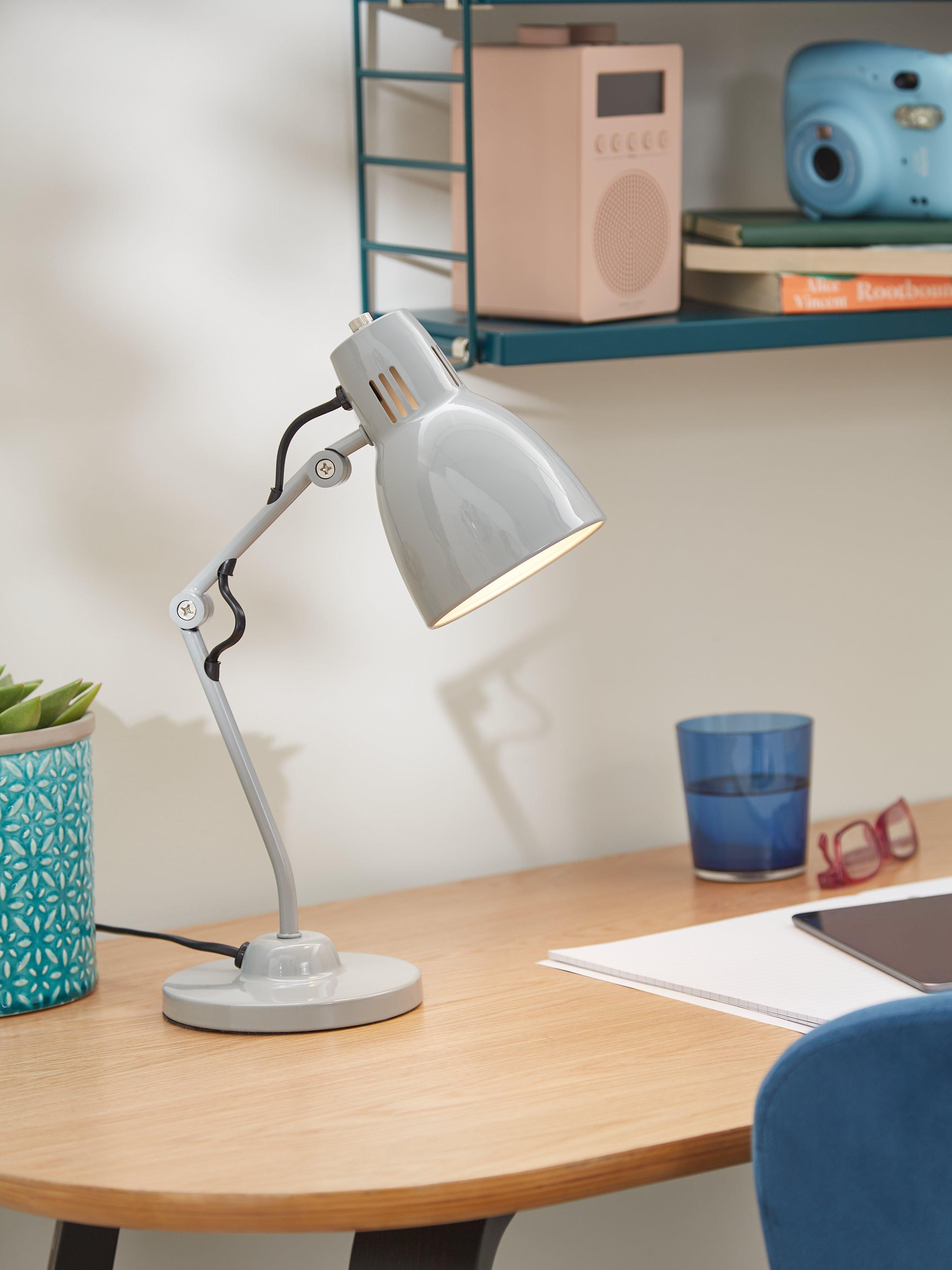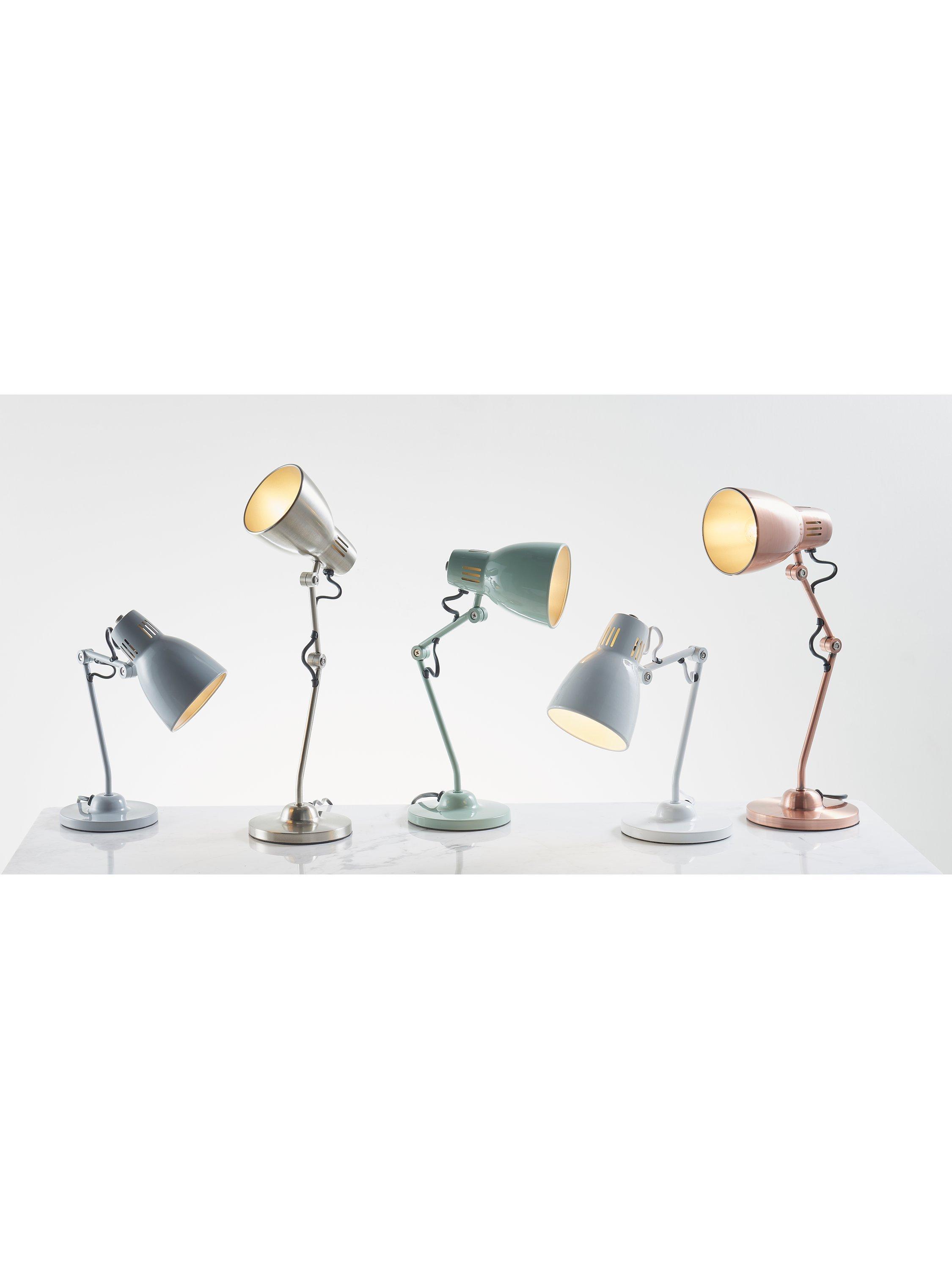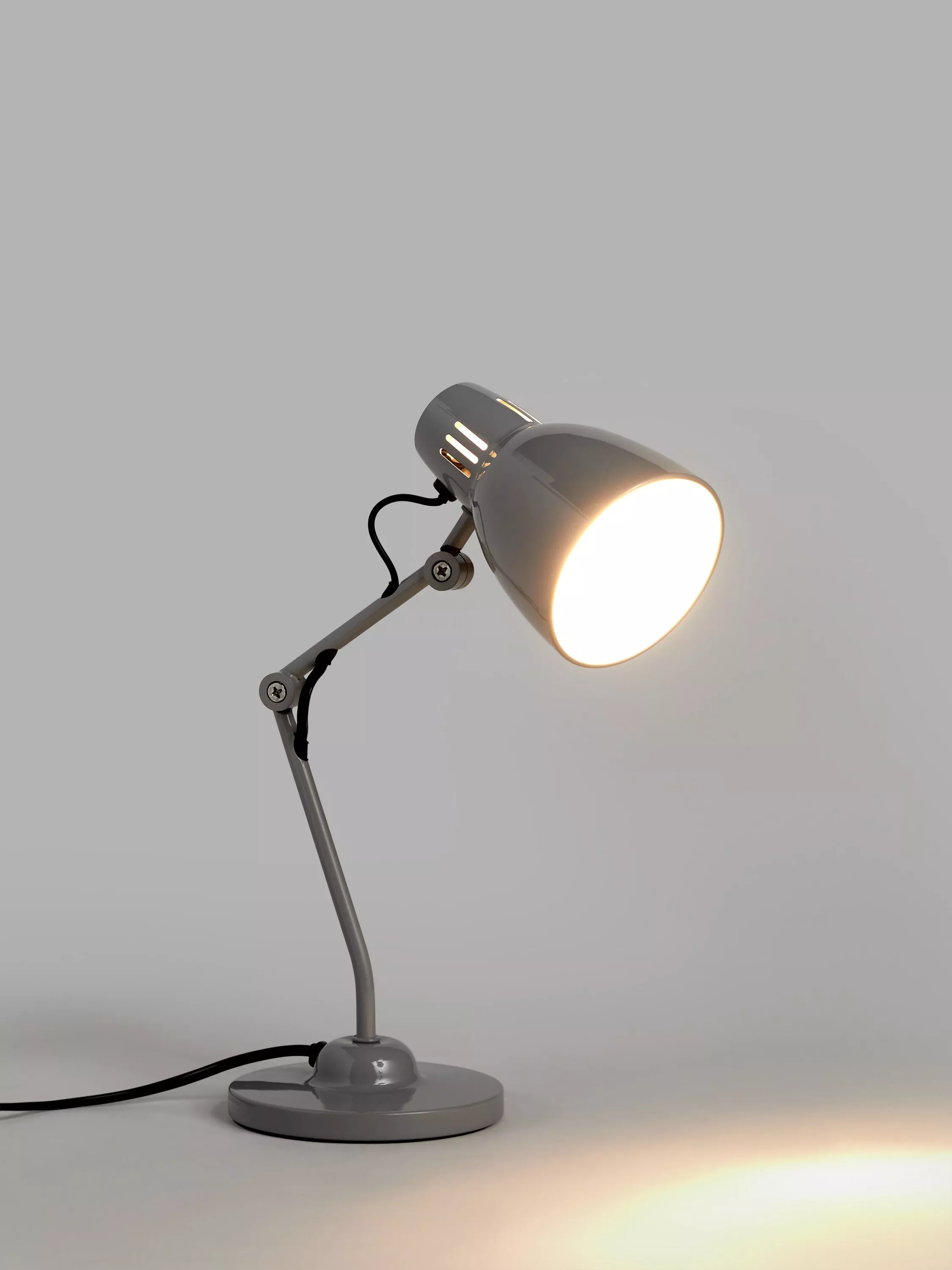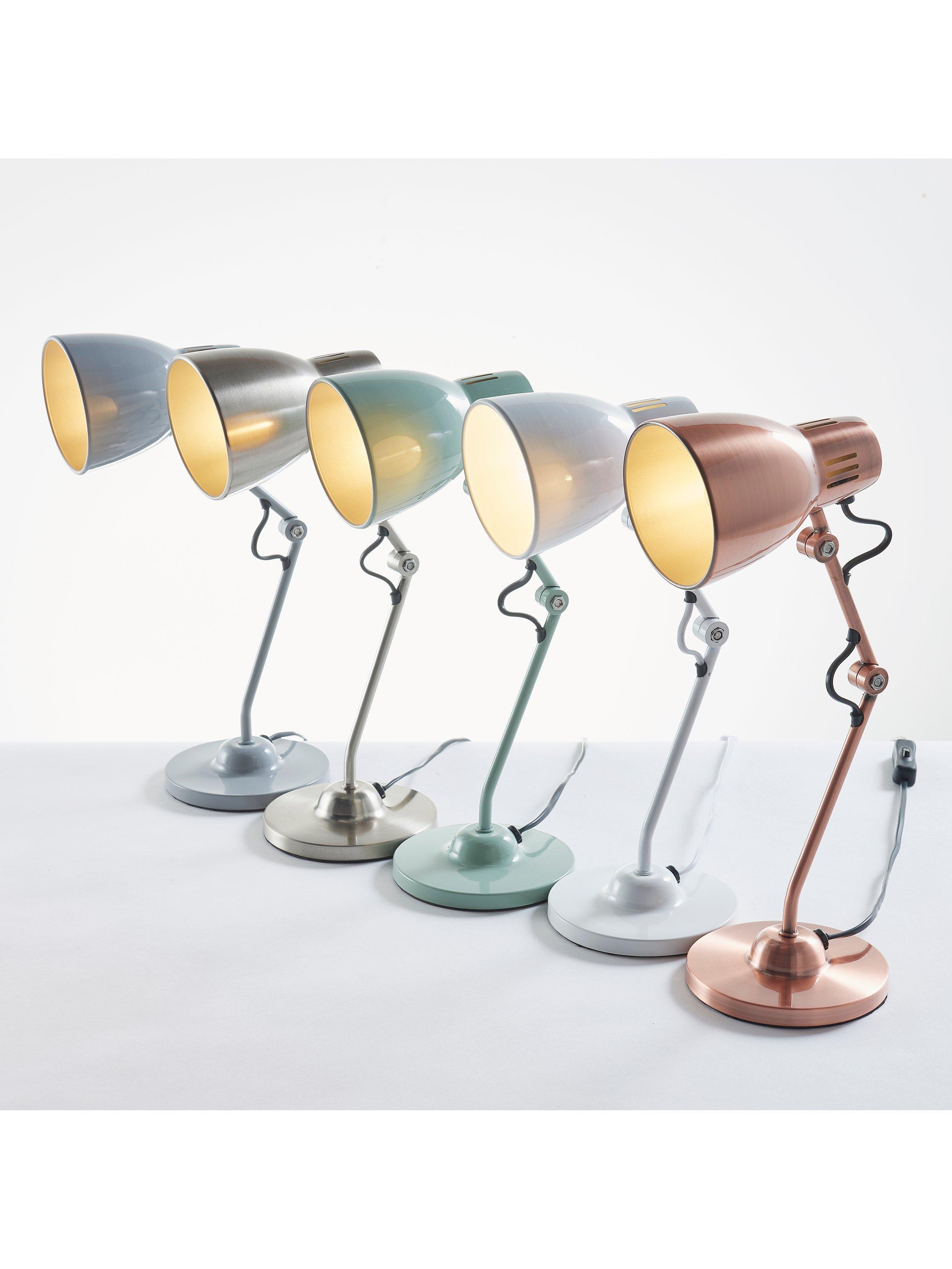 This excellent-value task lamp has an adjustable head, allowing you to direct the bright wash of light exactly where you need it. Designed in a compact shape so it's ideal, placed on a desk or bedside table. Available in a painted: gloss, matt or metallic finish, let its retro style stand out in your space.