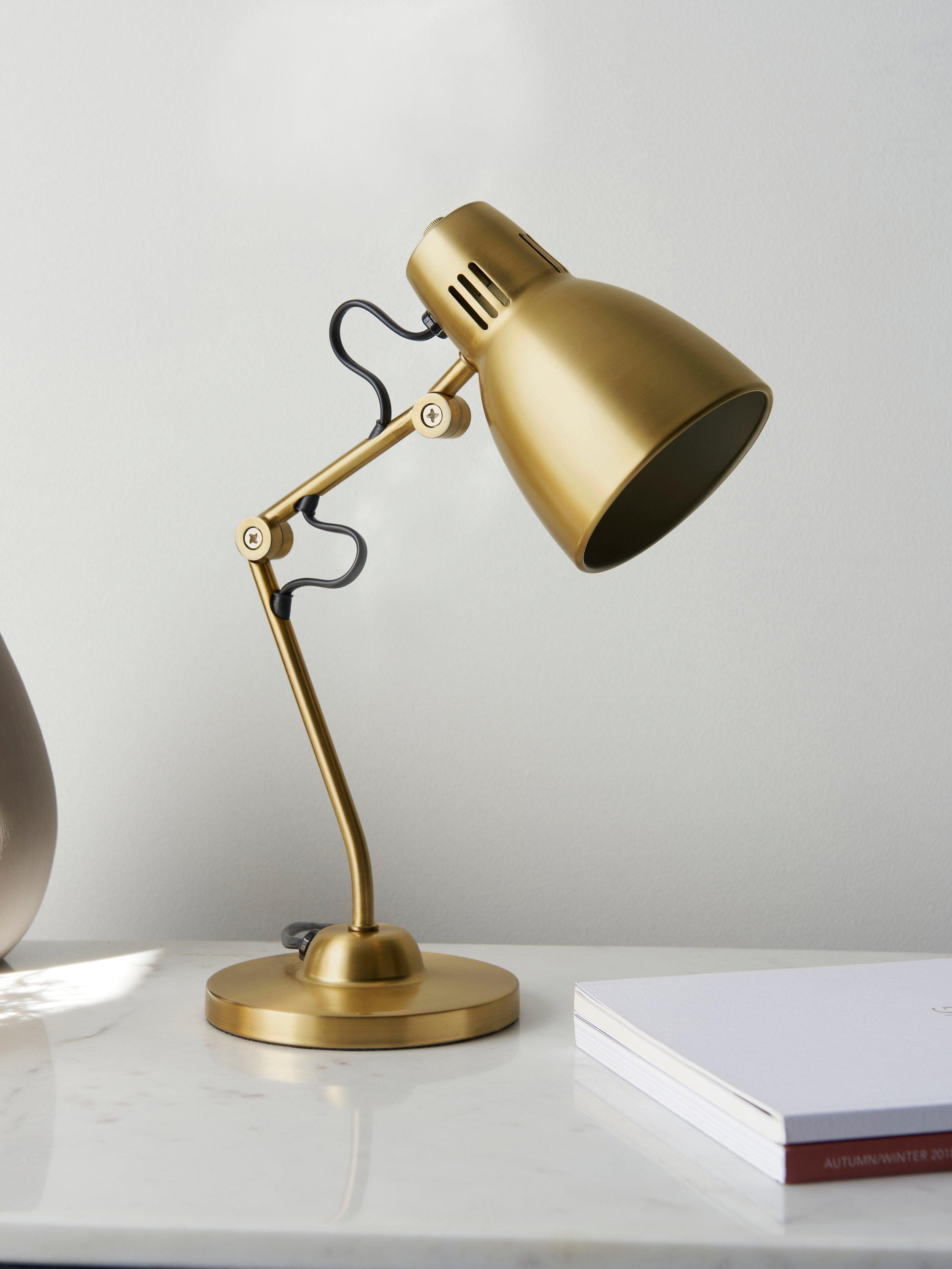 This excellent-value task lamp has an adjustable head, allowing you to direct the bright wash of light exactly where you need it. Designed in a compact shape so it's ideal, placed on a desk or bedside table. Available in a painted: gloss, matt or metallic finish, let its retro style stand out in your space.