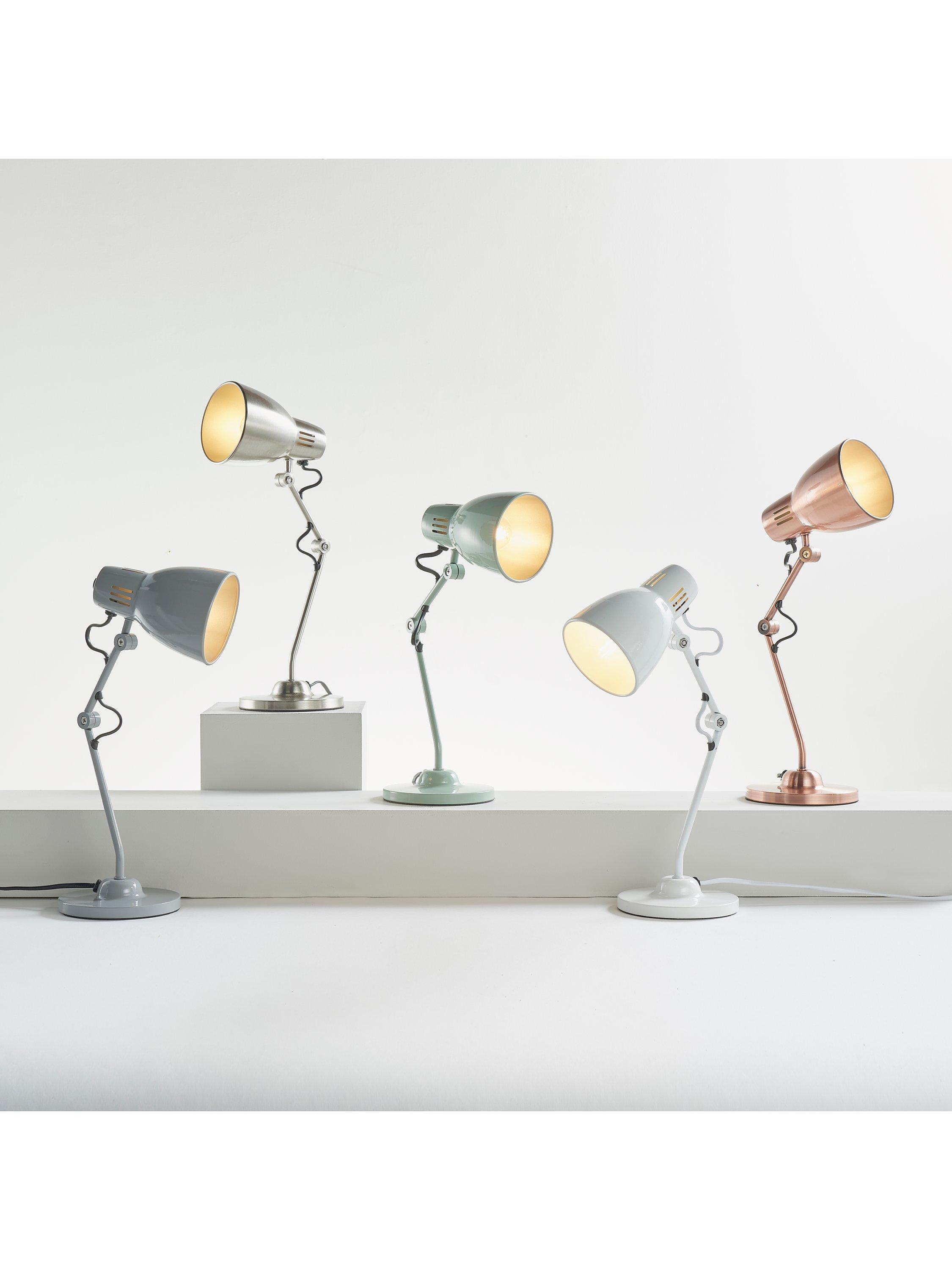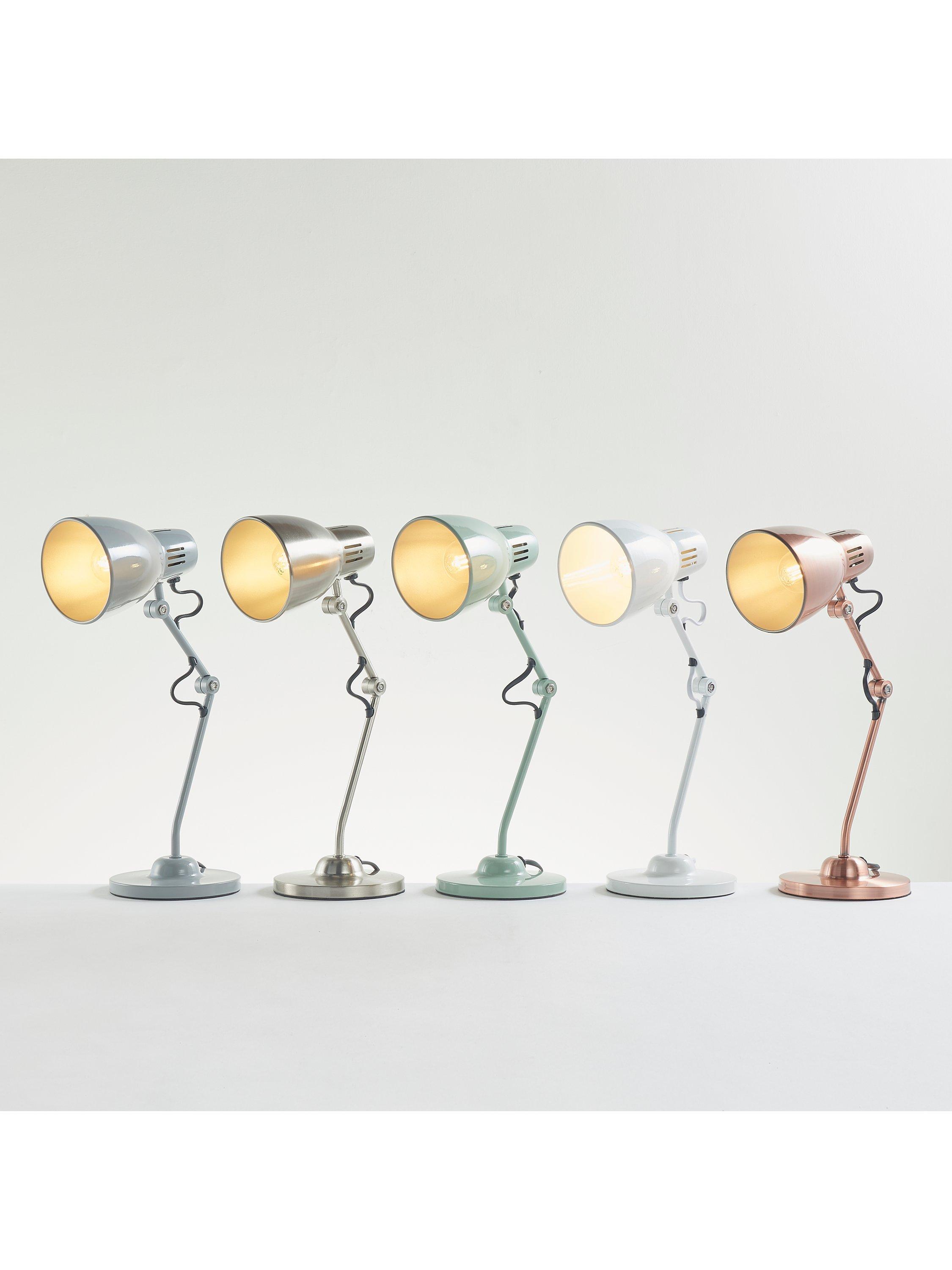 This excellent-value task lamp has an adjustable head, allowing you to direct the bright wash of light exactly where you need it. Designed in a compact shape so it's ideal, placed on a desk or bedside table. Available in a painted: gloss, matt or metallic finish, let its retro style stand out in your space.