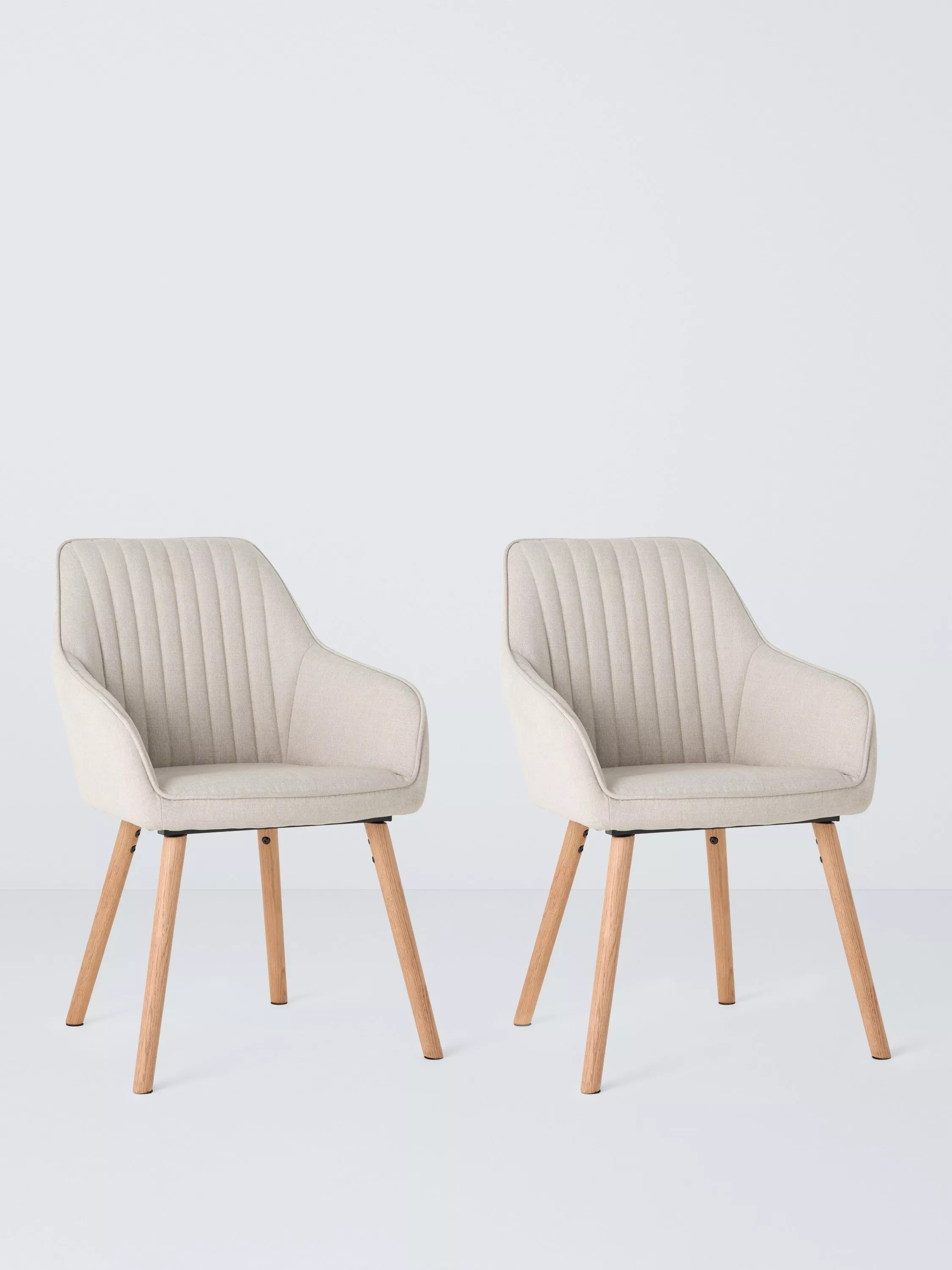 Offering comfort and quality, our Toronto armchairs are designed for regular dining and occasional use. Crafted with a sleek, solid oak leg, this practical set of two is neatly upholstered in a soft fabric and foam filled for extra cushioning.