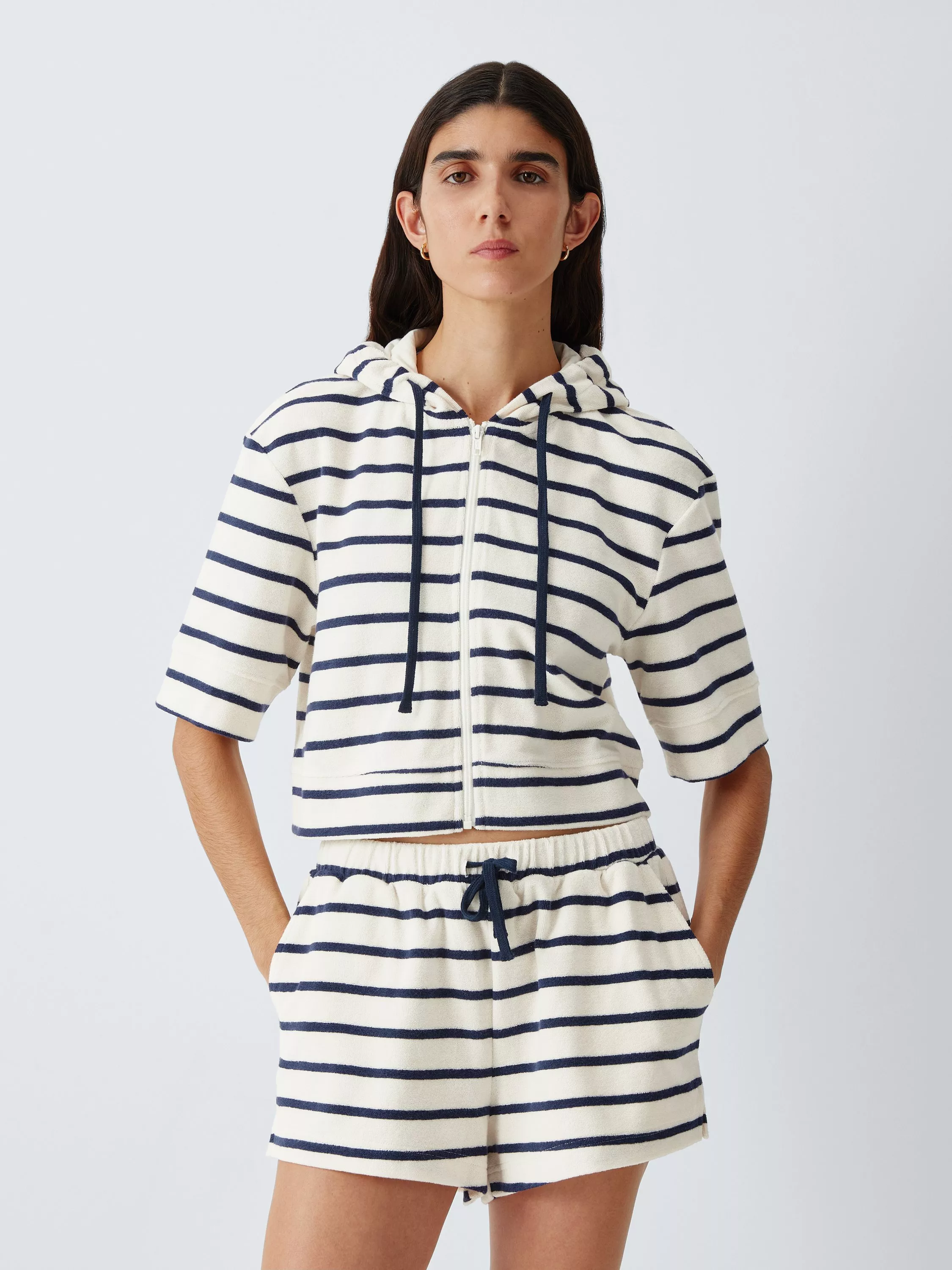 John LewisTowelling Cropped Hoodie, Stripe