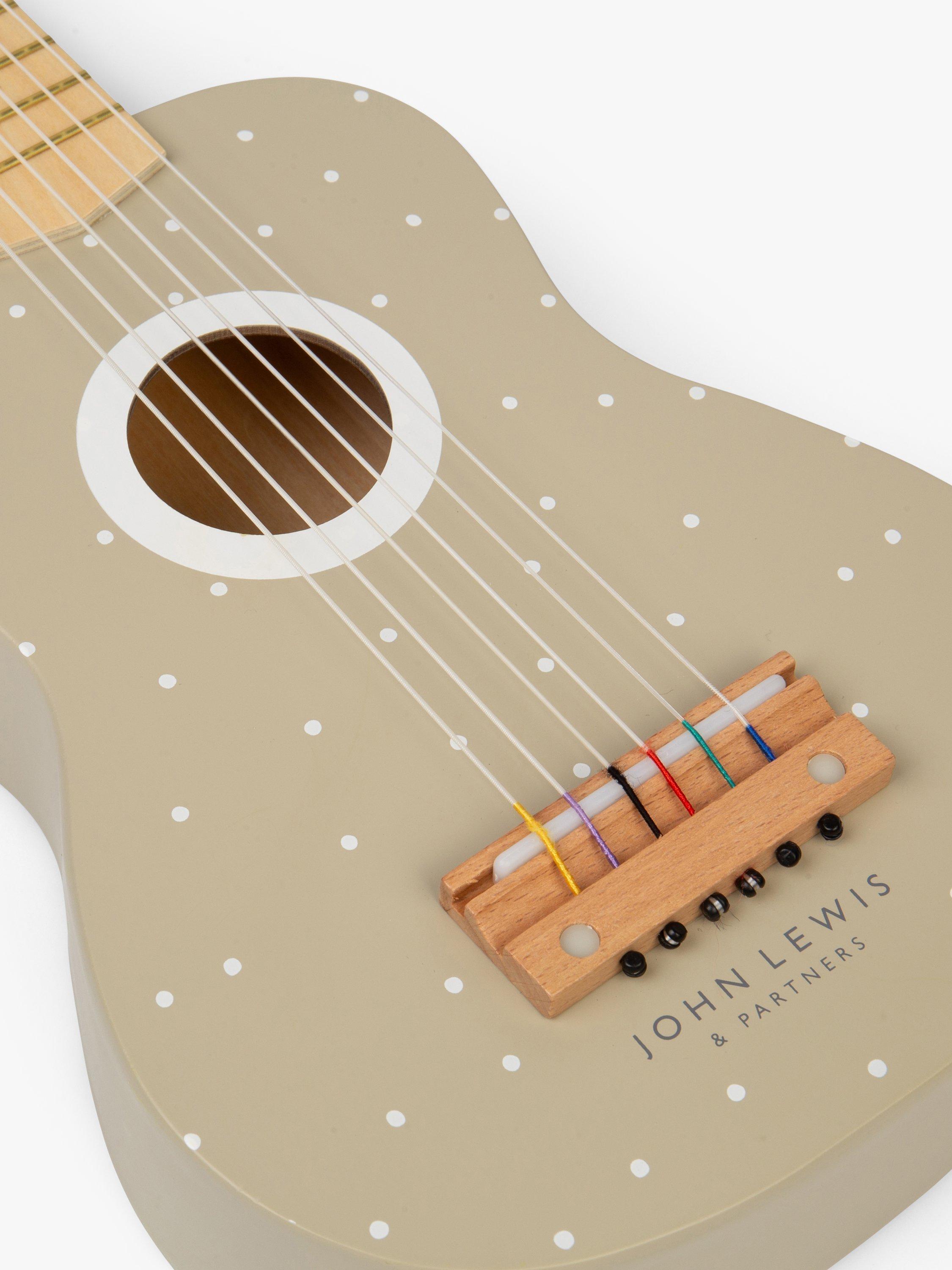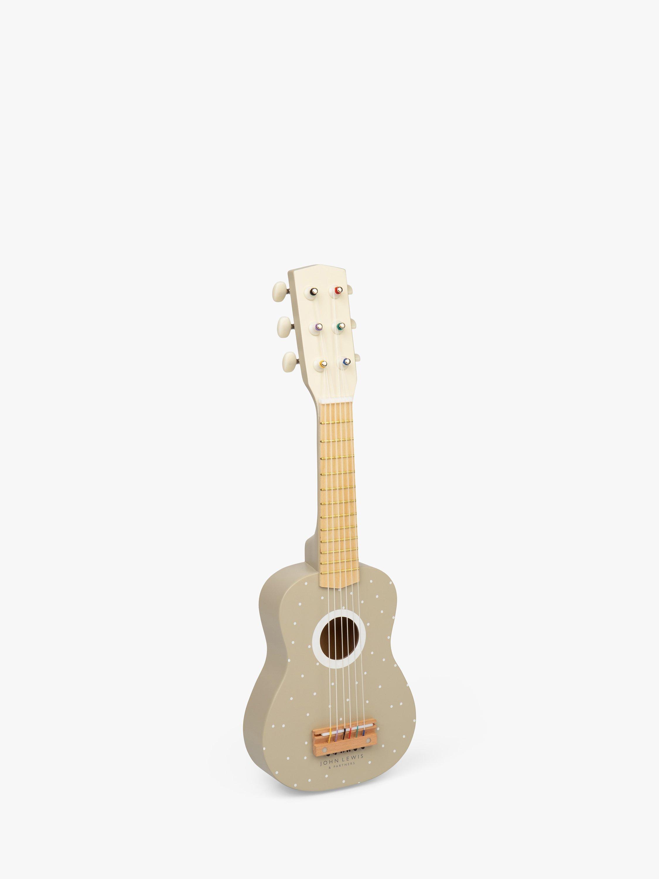 Lead a family sing-along or jam solo with our Wooden Guitar! Little guitar heroes will go wild for this charming introduction to string instruments. The guitar produces a sweet, melodic sound and comes with a plectrum and spare strings in case of any strumming mishaps. Sized for small hands, this instrument will inspire a love for music and nurture children's sensory development, hand-eye coordination, and fine motor skills.