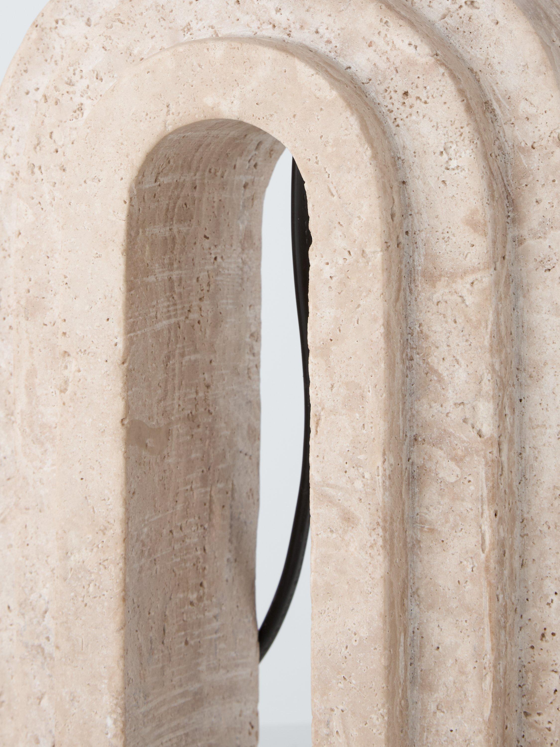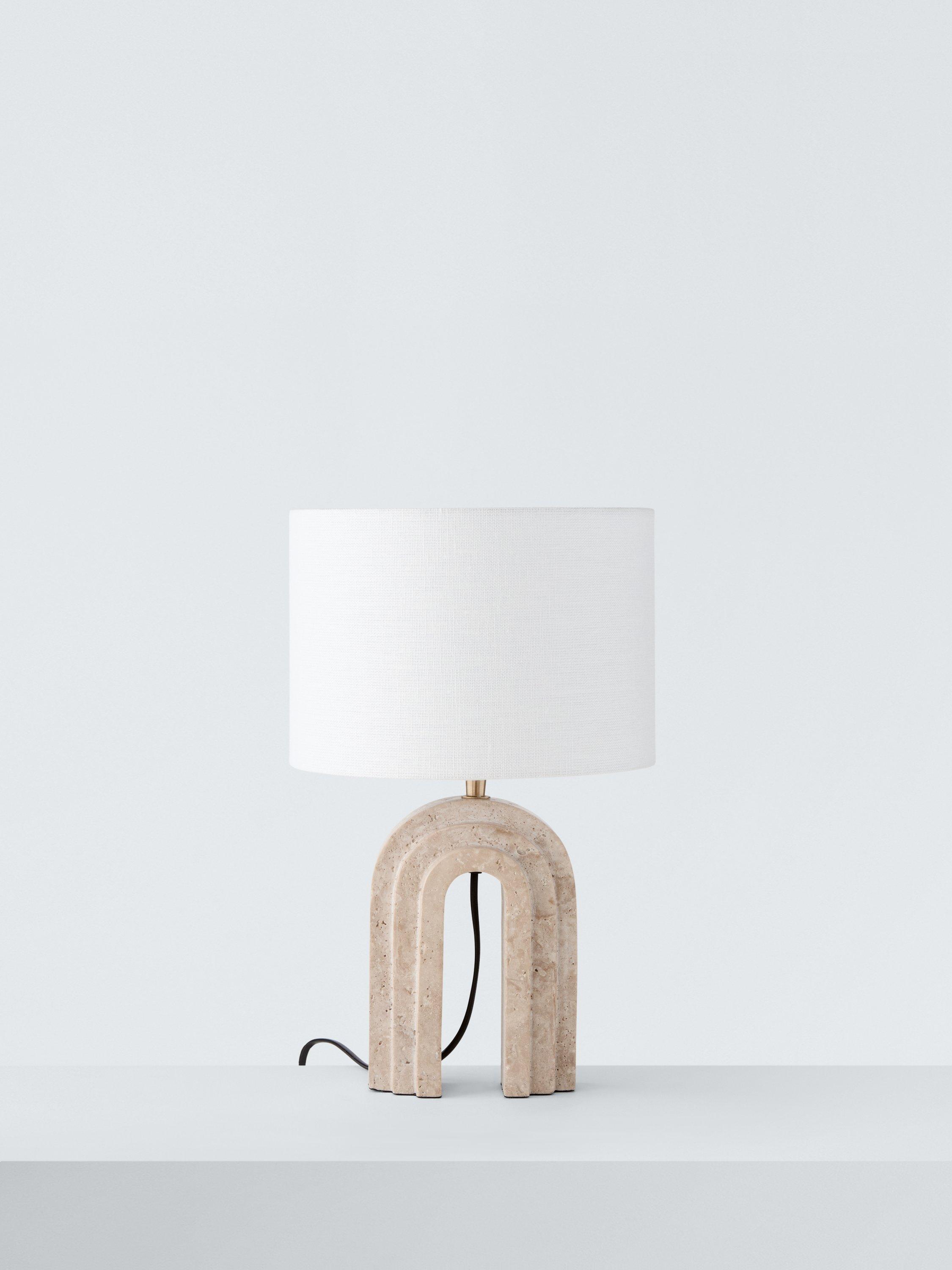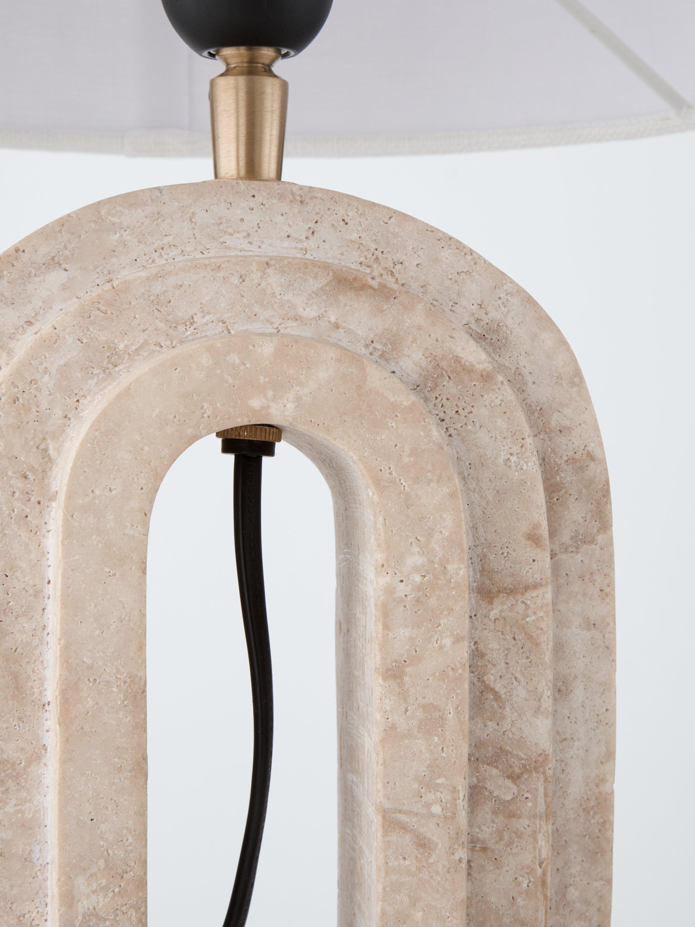 Elevate your space with this stunning lamp, featuring an arch-shaped base made from natural travertine stone. The warm tones and textured surface of the travertine bring an organic elegance that complements a range of interior styles, from modern to traditional.