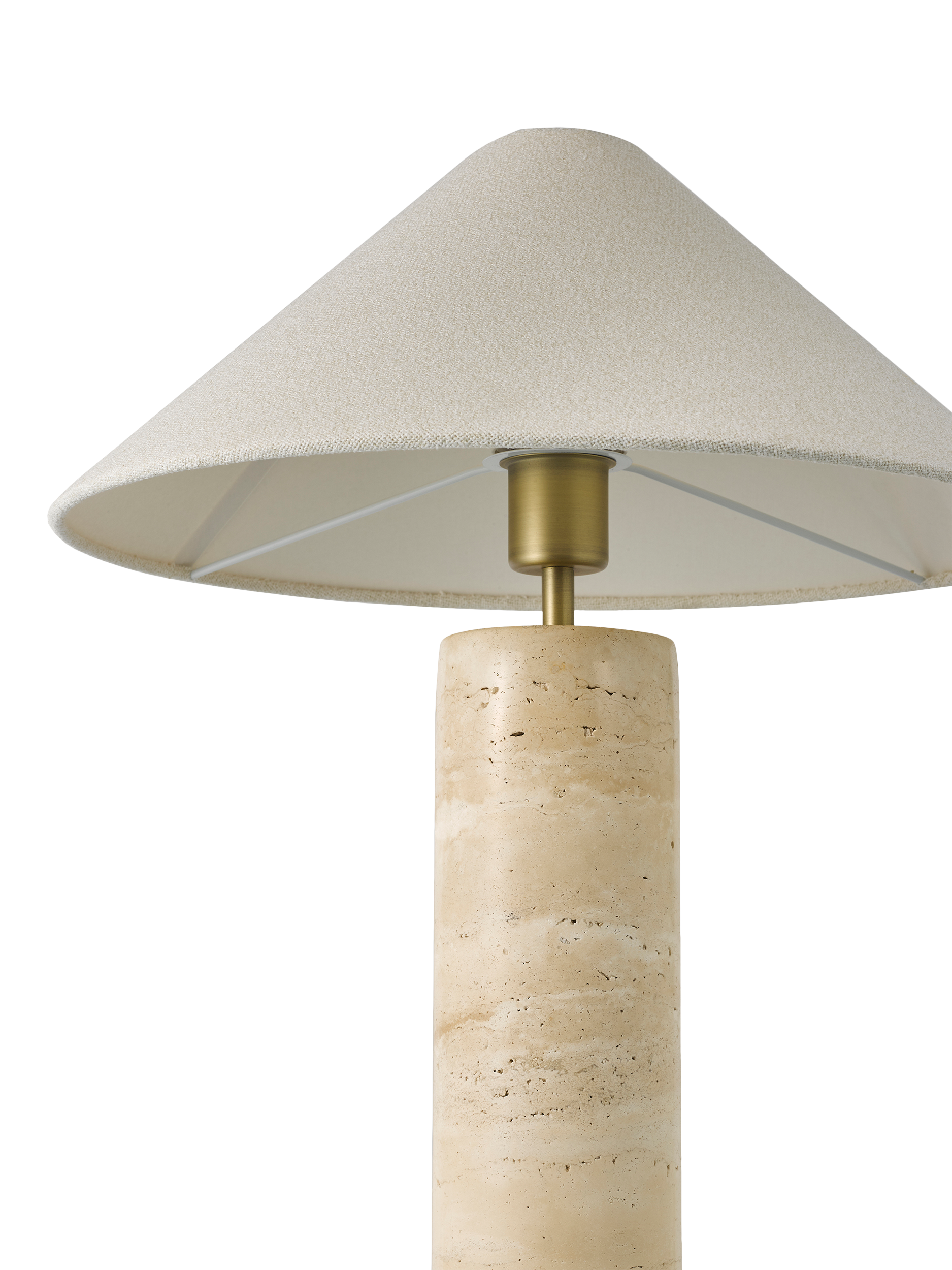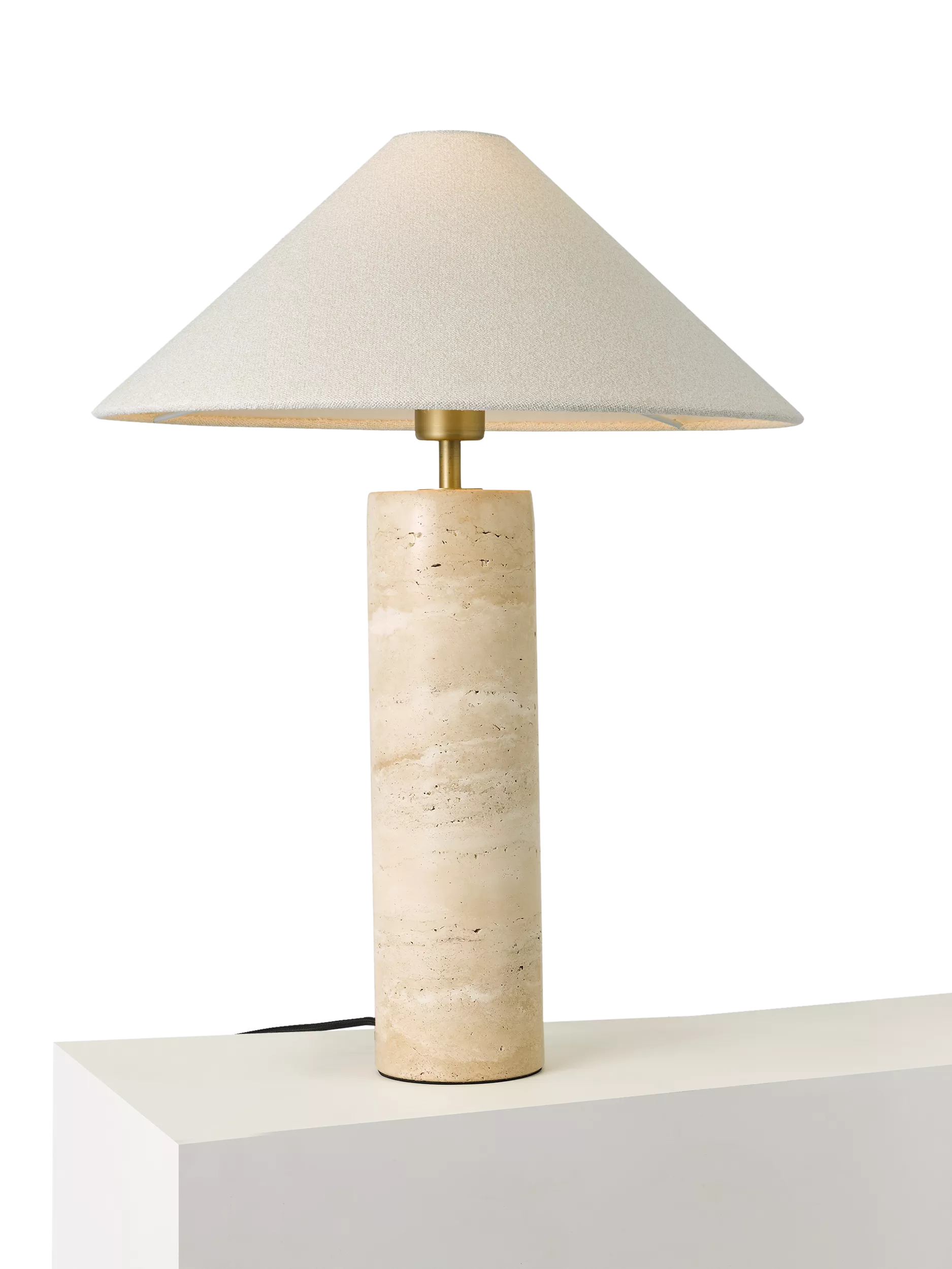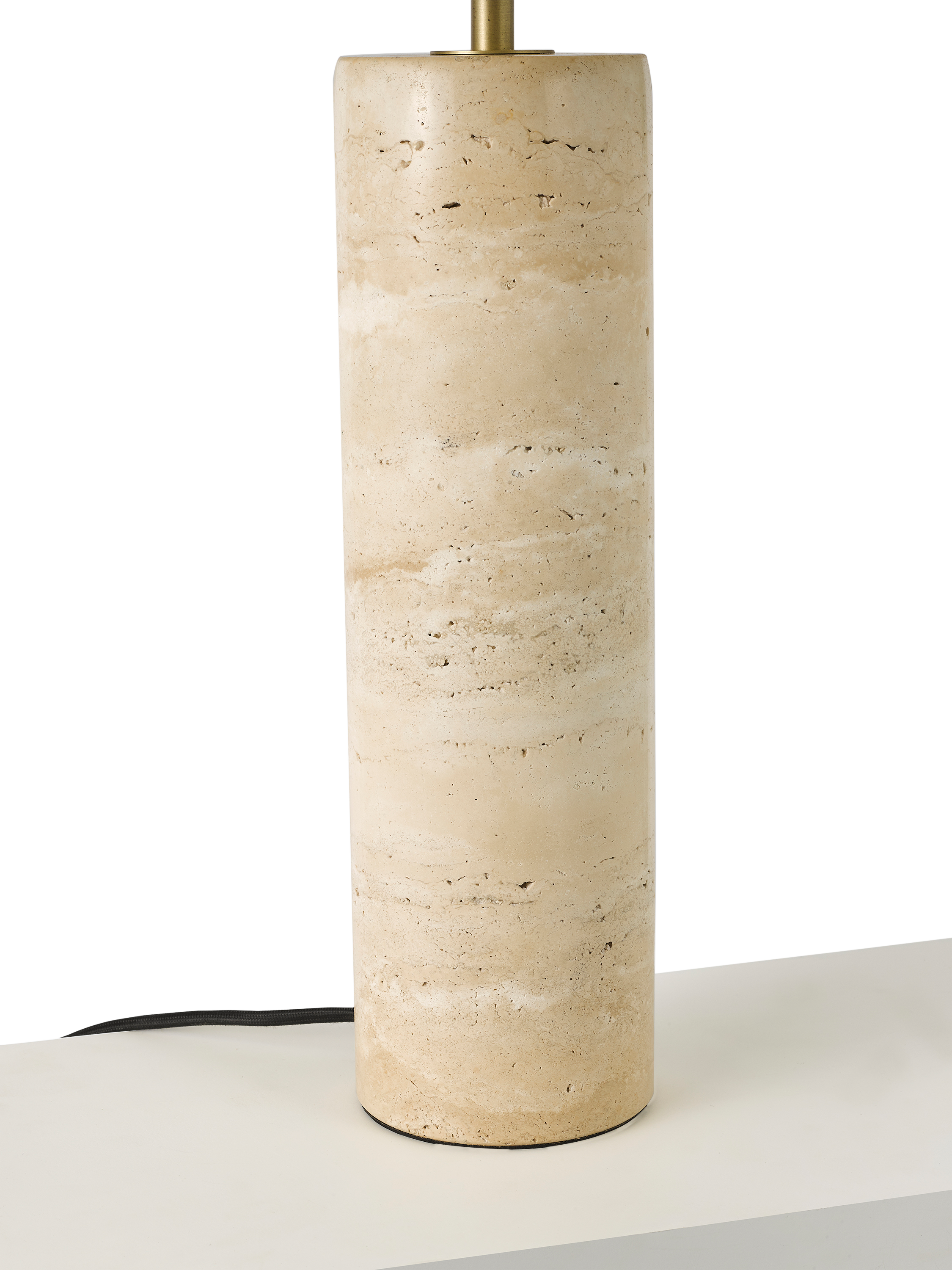 Natural matt travertine marble is used on this sensational table lamp. Hand finished and topped with a modern woven lampshade, with a braided cable.