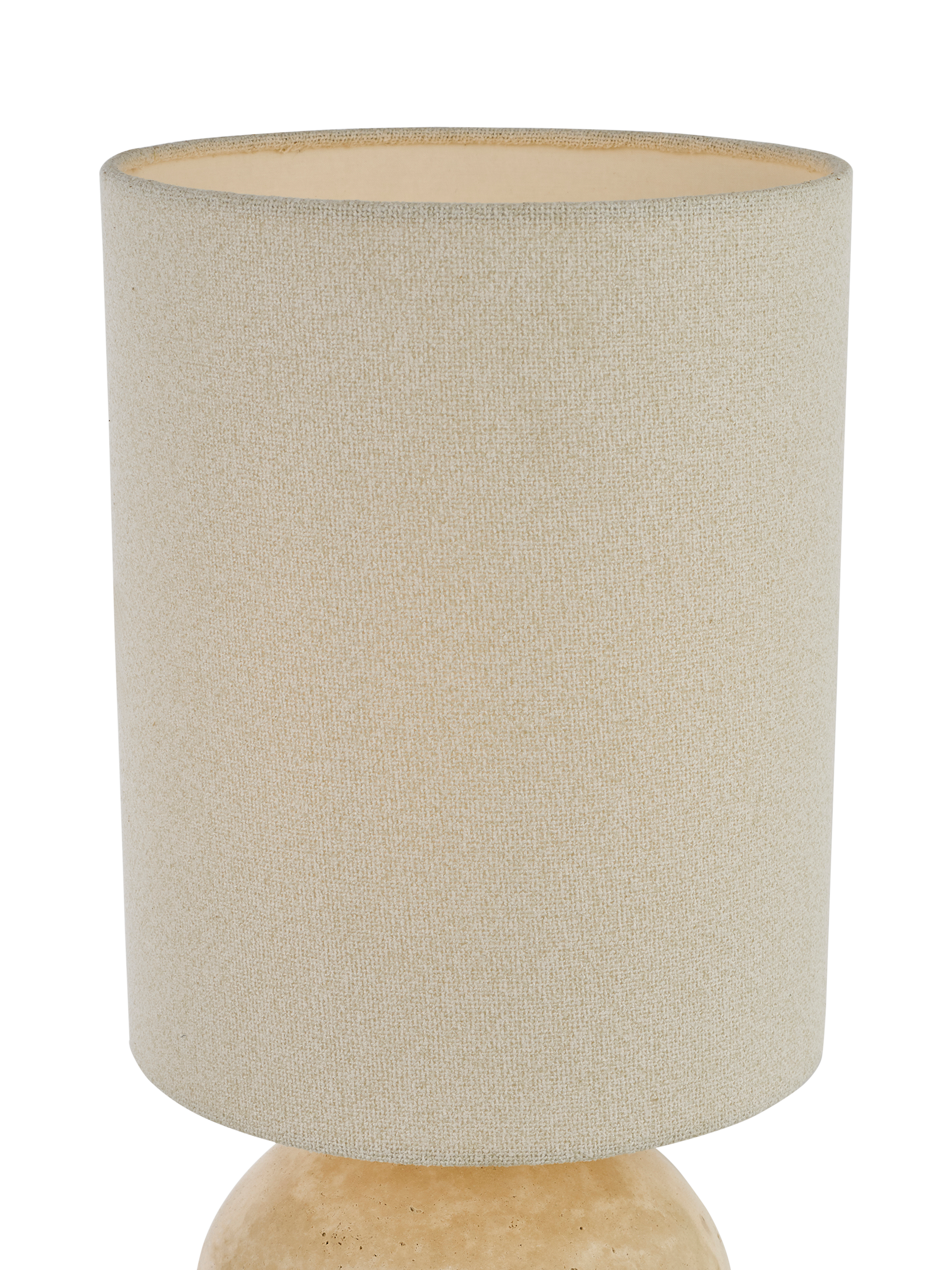 Natural matt travertine marble is used on this sensational table lamp. Hand finished and topped with a modern woven lampshade, with a braided cable.