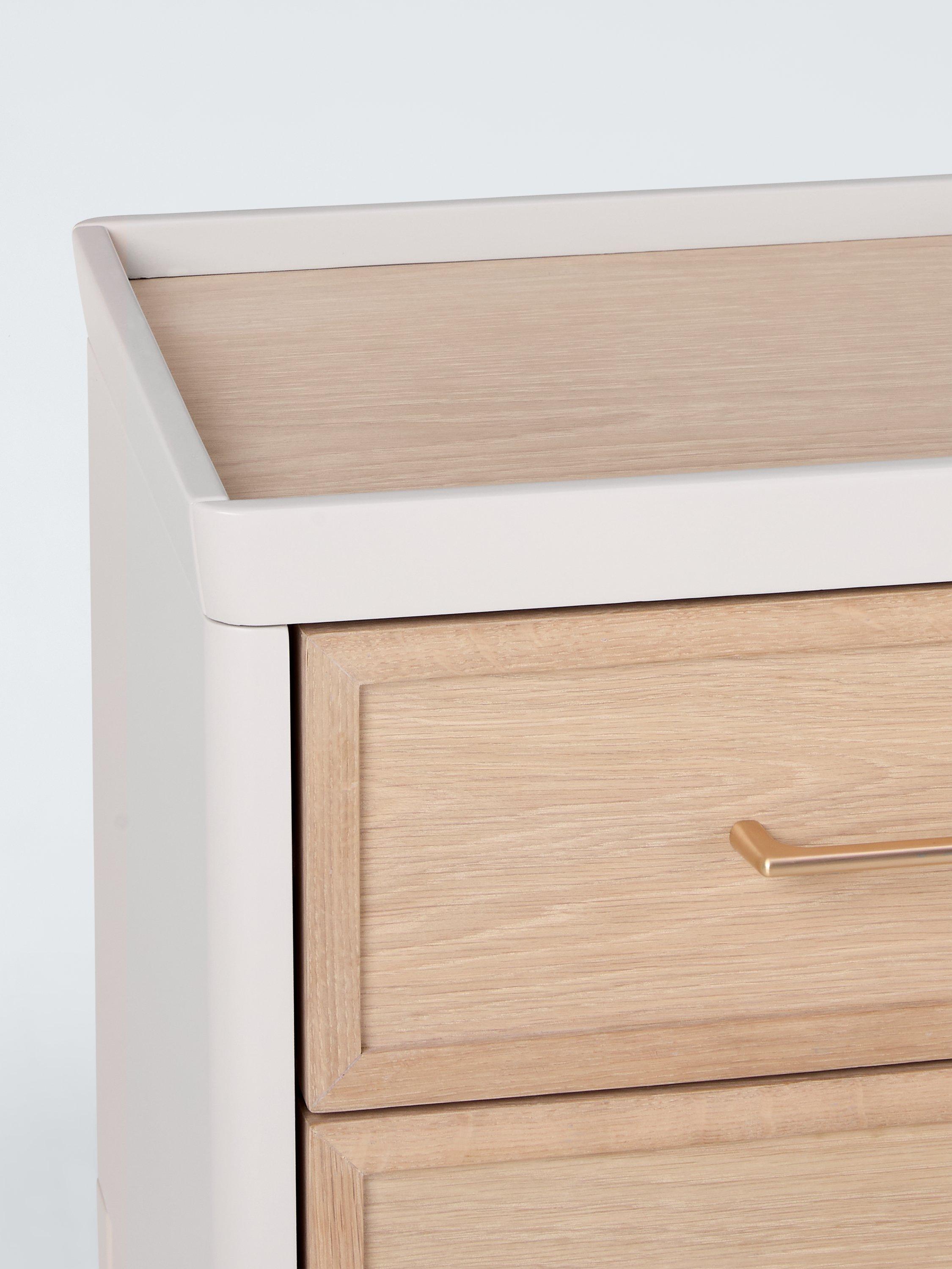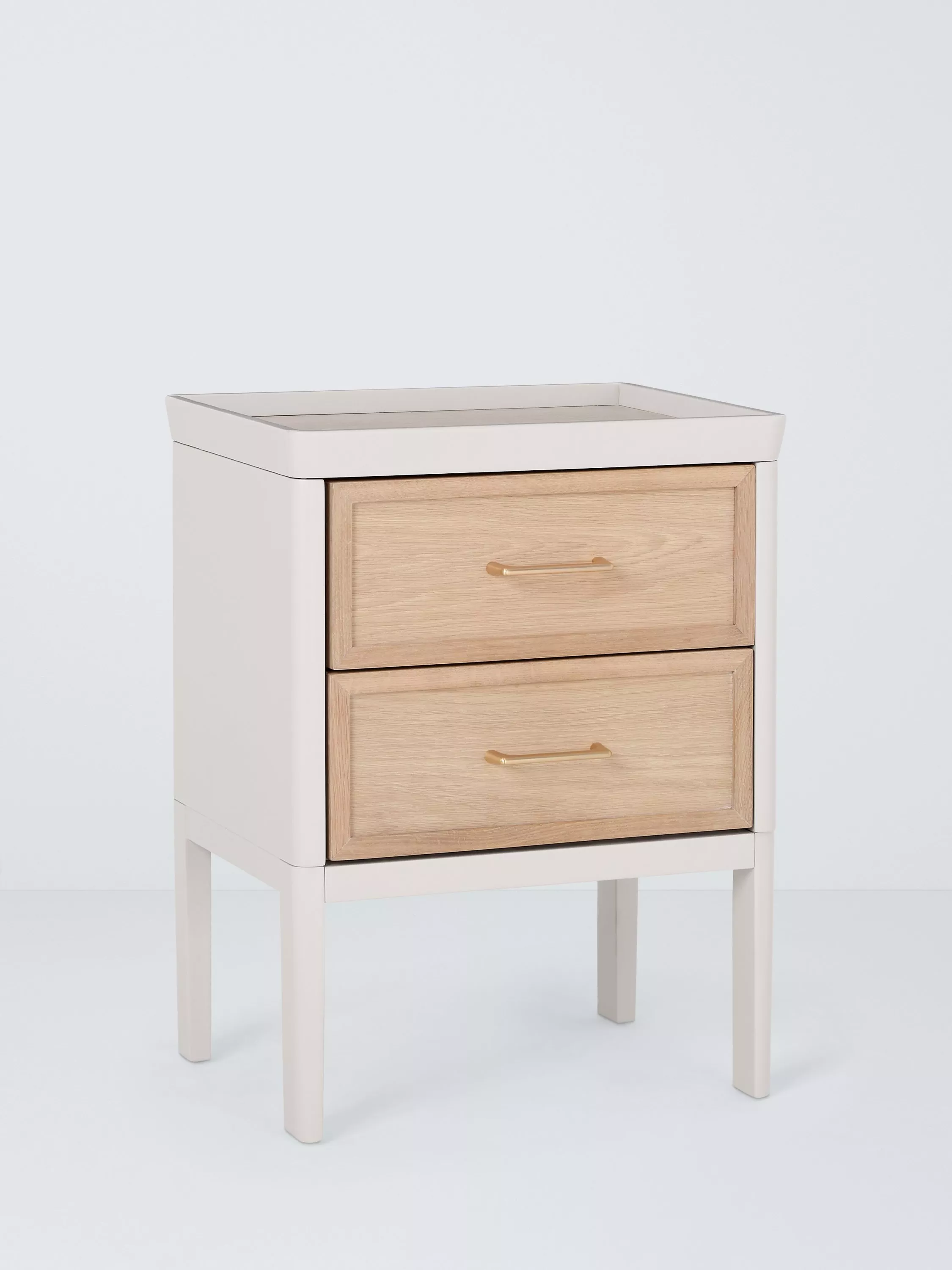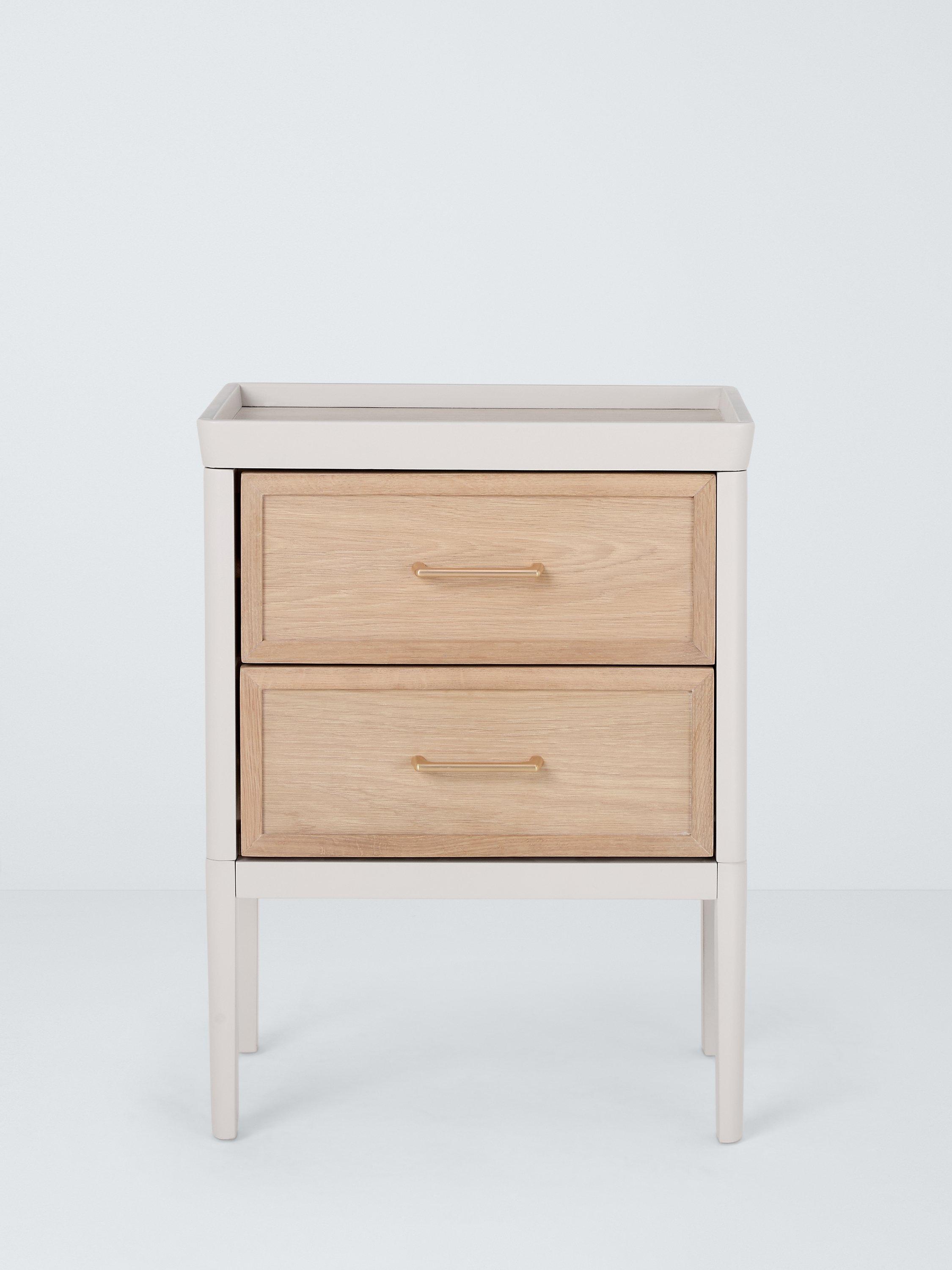 With a coordinated sculptured frame, this bedside table is part of our Tray range. Crafted with two storage drawers and a top surface with a tray-edge design so your bedside essentials stay secure.
