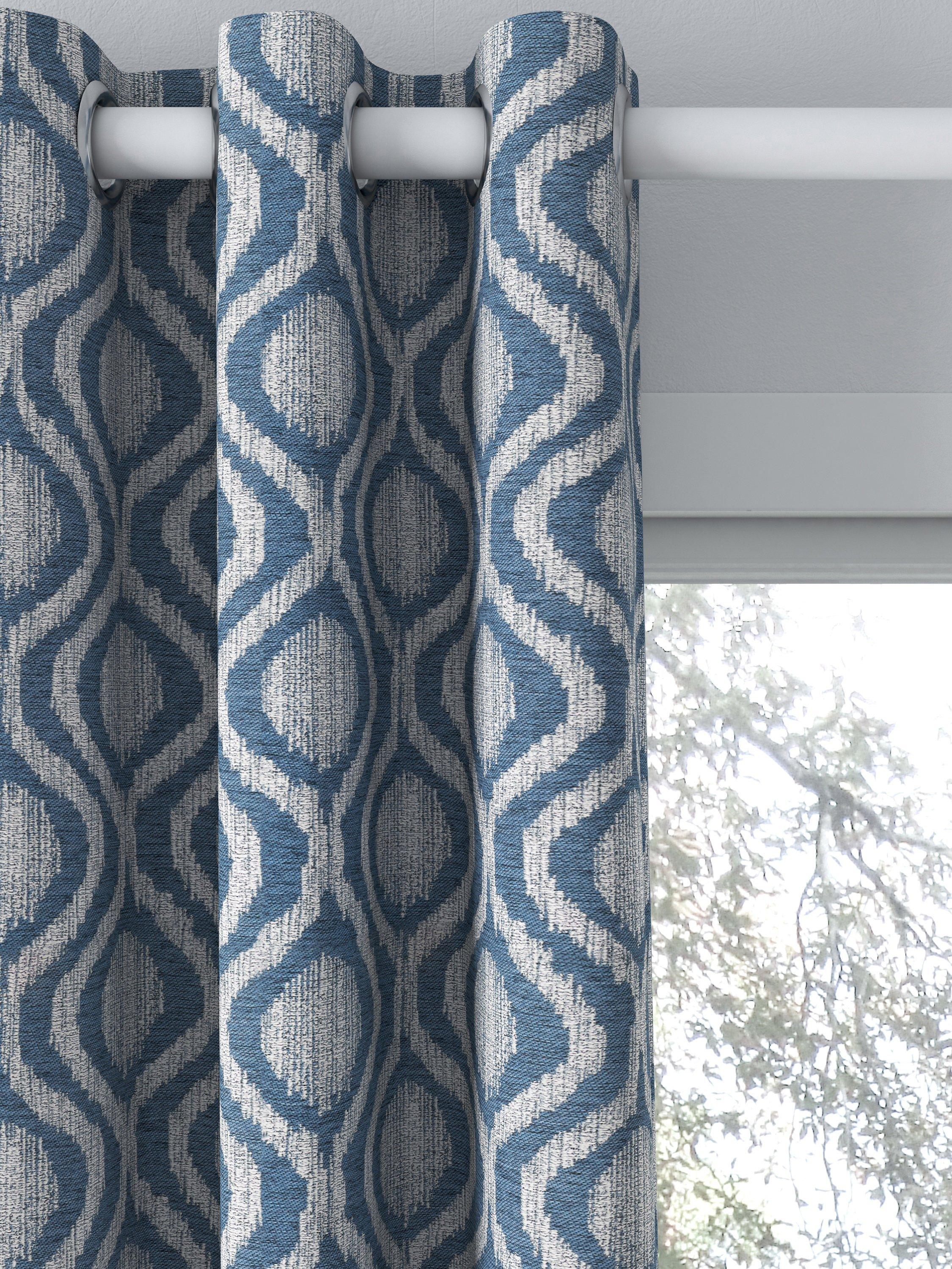 These curtains feature a woven geometric ikat design. The eyelet heading gives them a more contemporary look with large, even folds and the lining adds the perfect finish, improving the drape of the curtains.