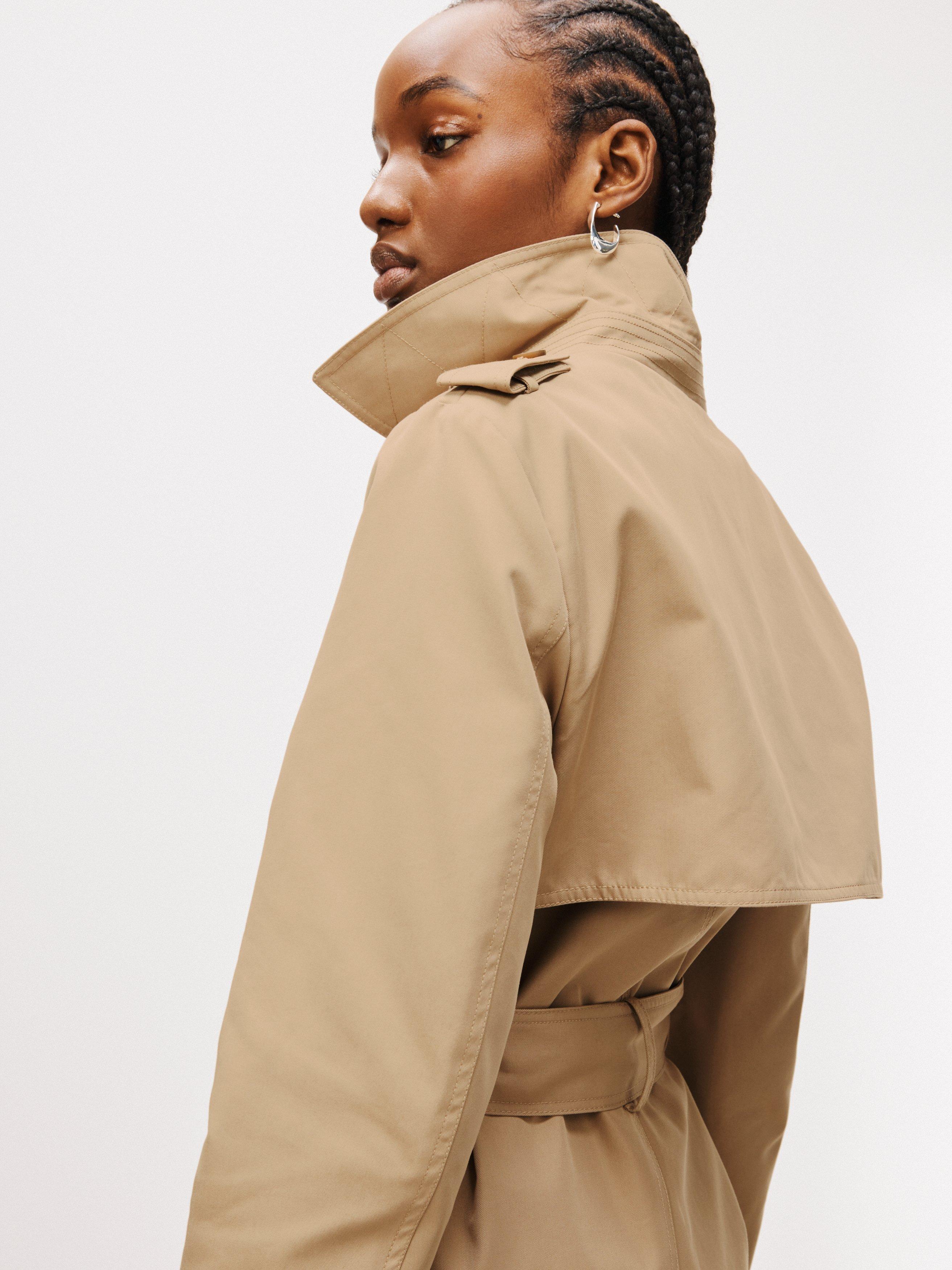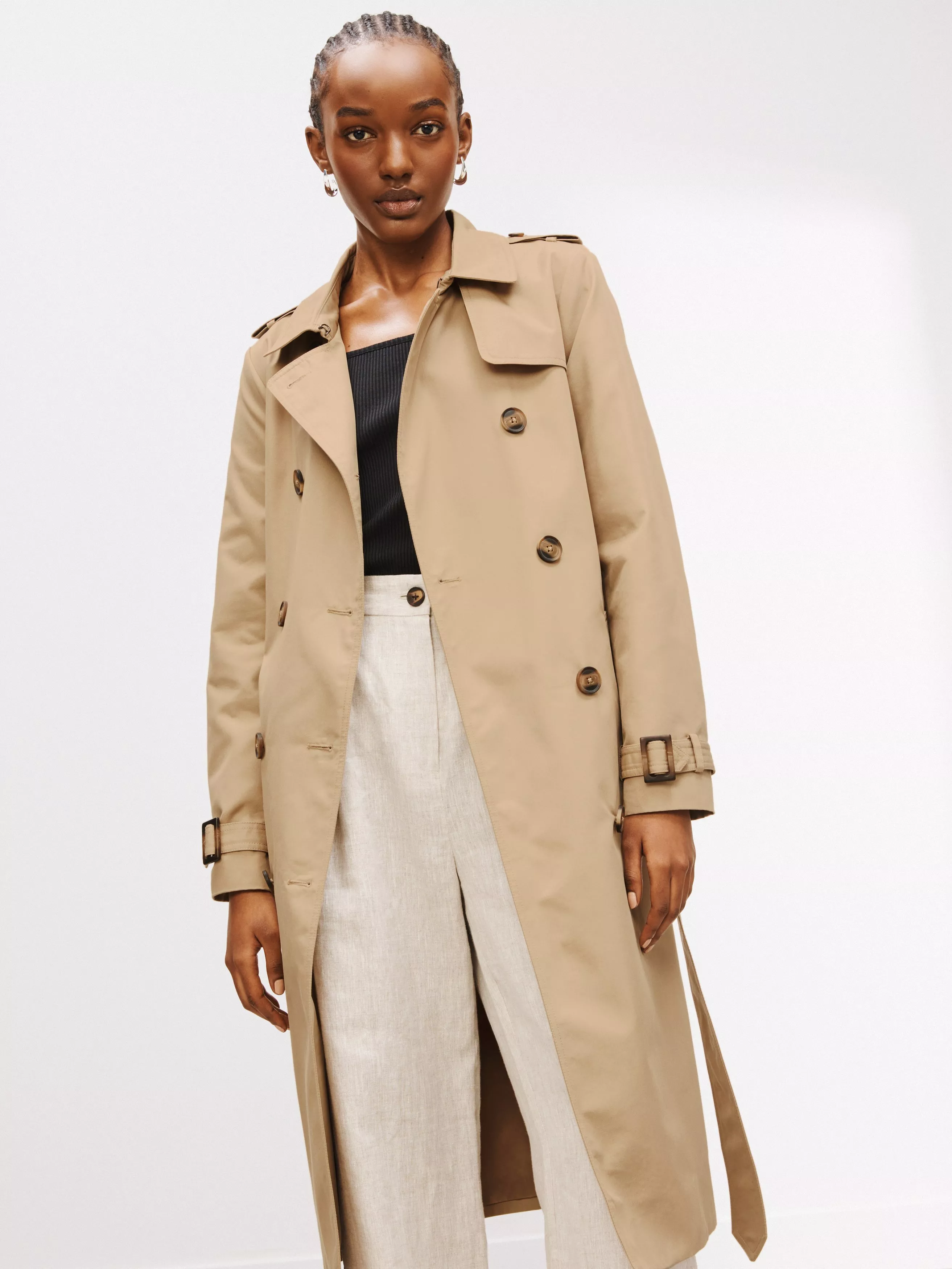Featuring military-inspired shoulder strap detailing and a waist-cinching belt, this trench coat is designed in a classic long-length cut. The result? A commanding silhouette that looks just as good over office edits as it does on weekend strolls.