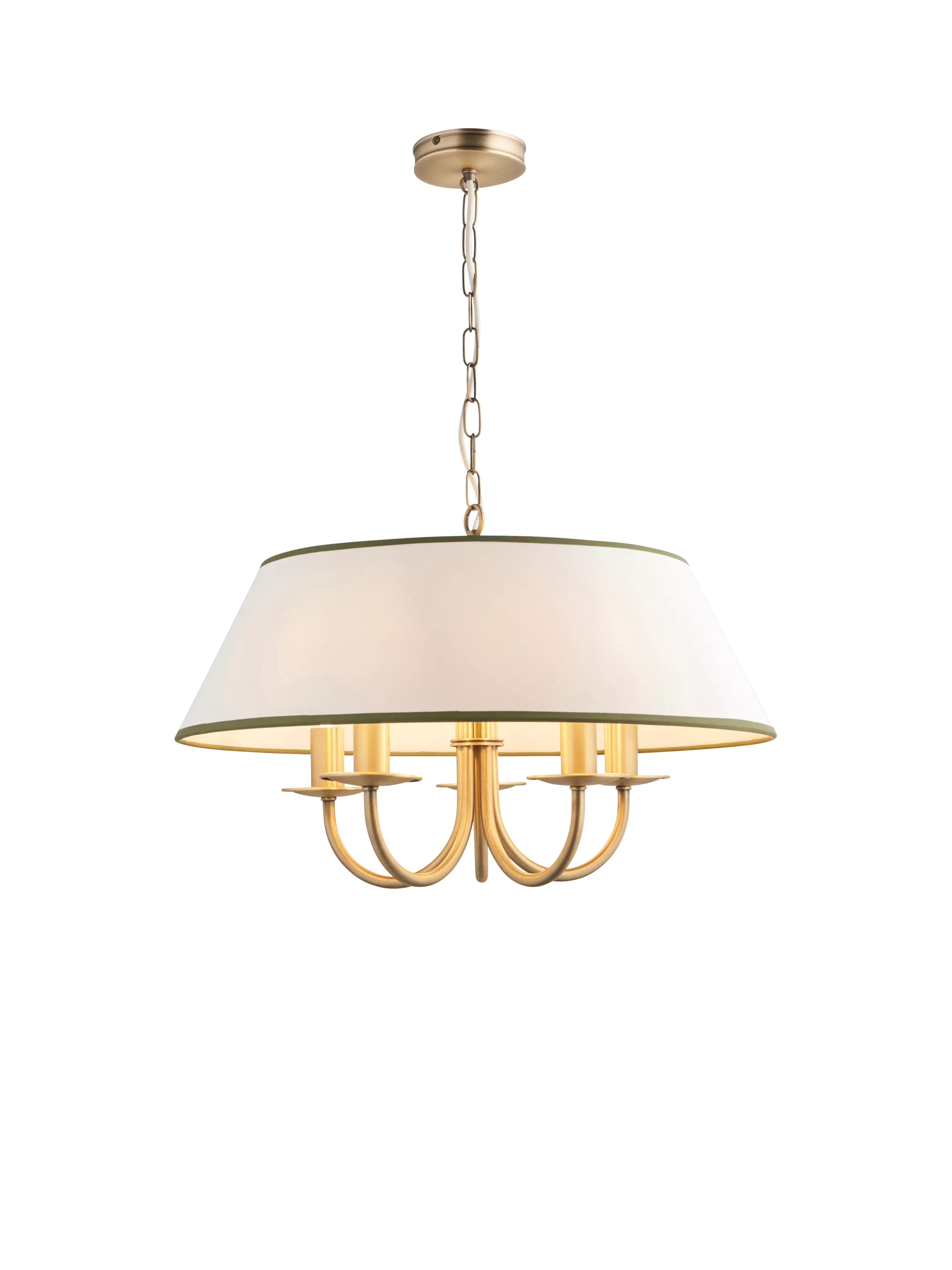 Our Trevelyan pendant light follows classic forms, complemented by elegant warm brass tones and paired with an evenly lit ivory fabric shade. Featuring coastal-inspired striped trim, this ceiling light is ideal for a living room or bedroom, and it's height-adjustable to suit your space.