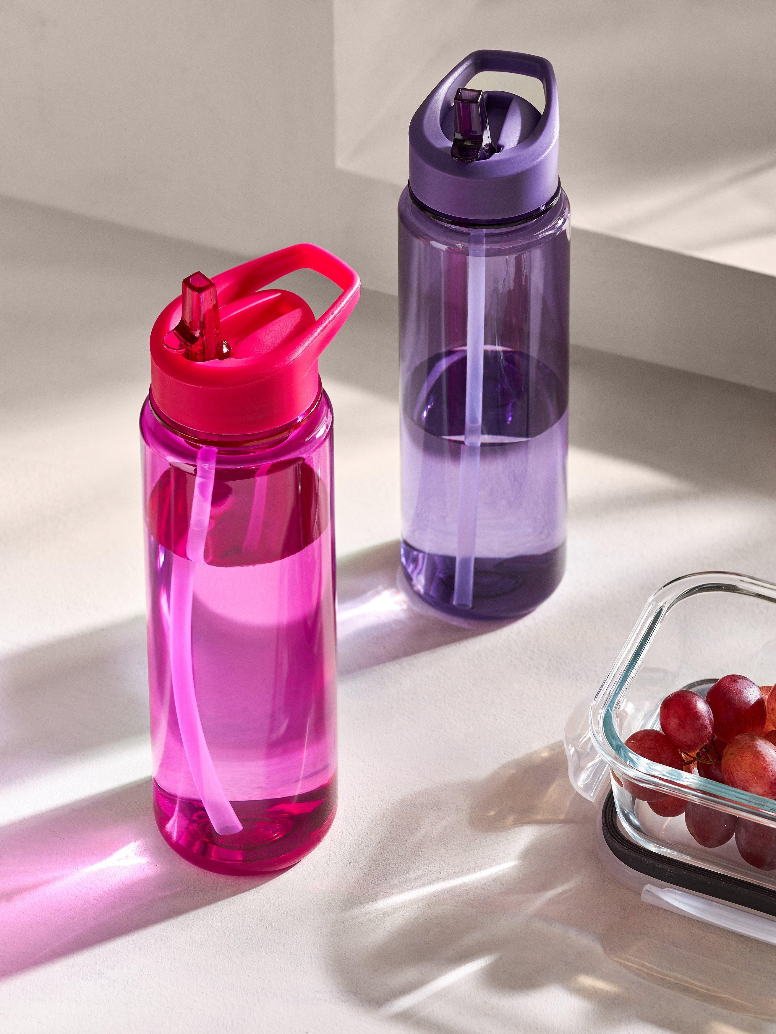 Keep hydrated on the move with this drinks bottle, designed with a built-in sipping straw, grab handle and a secure lockable lid to prevent leaks. The bottle is made of BPA-free Tritan for safe drinking.