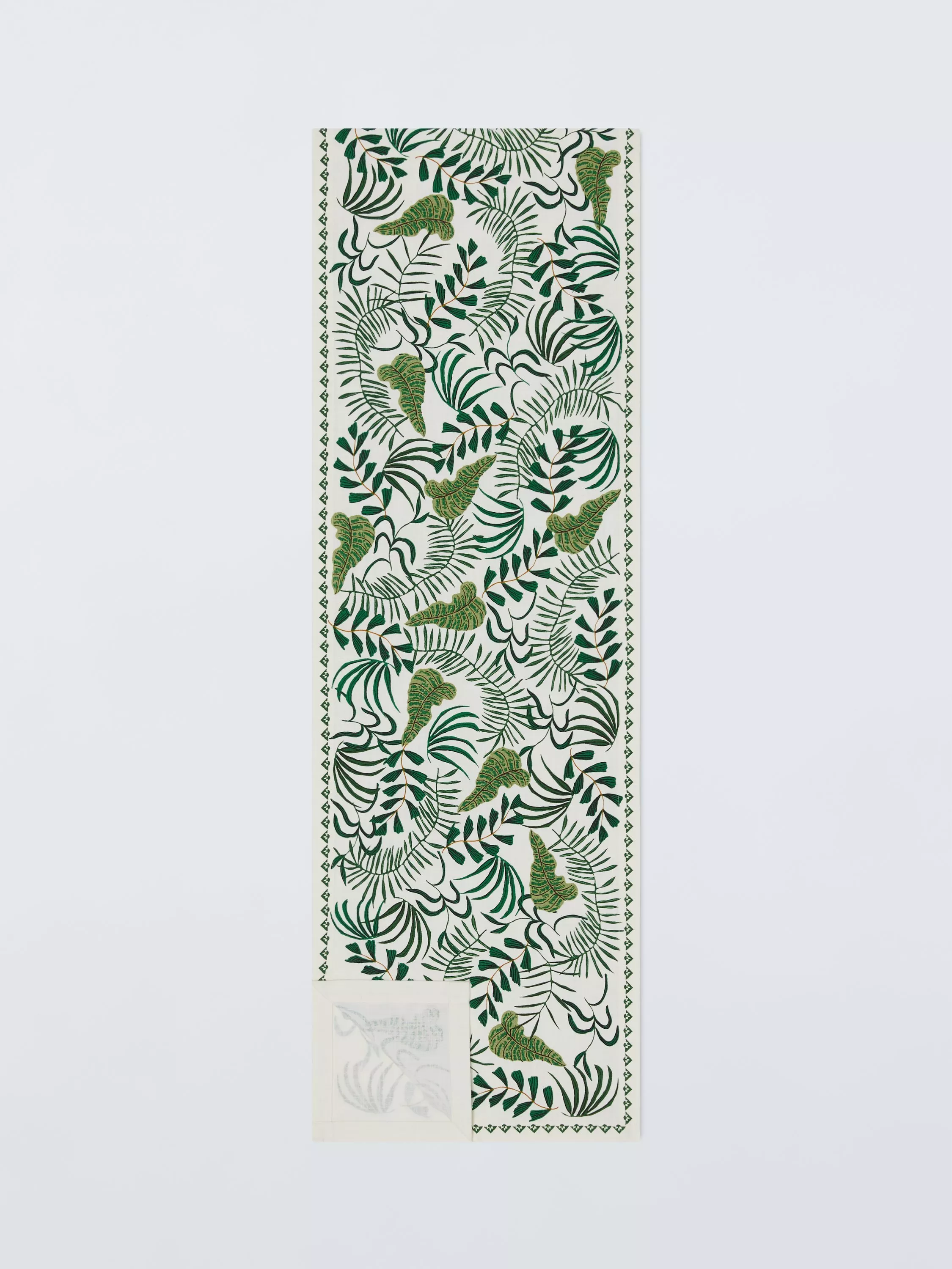 John LewisTropical Print Cotton Table Runner, 250cm, Green