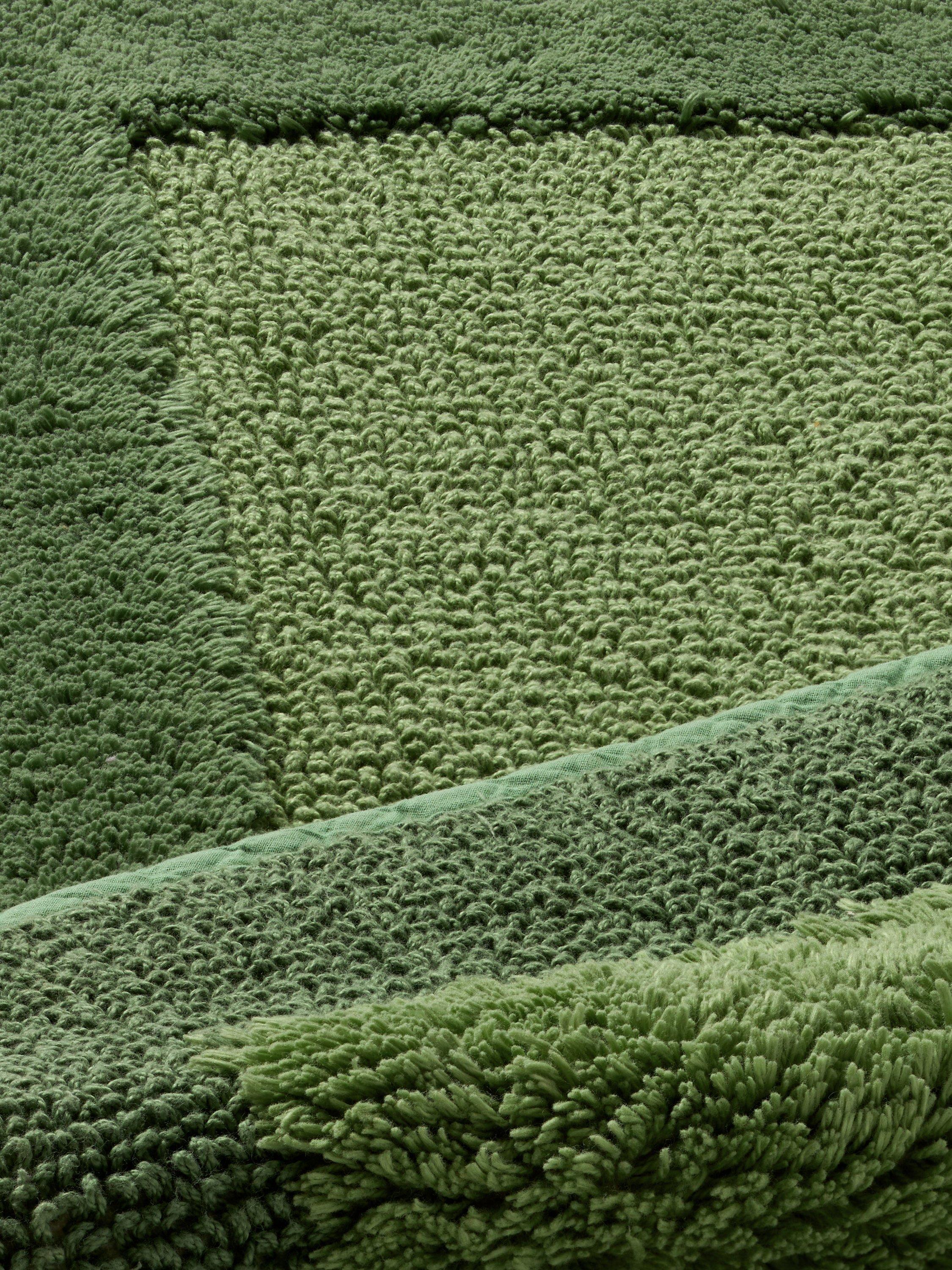 This luxurious deep pile bath mat has a two shade colour block design, with a tufted centre and looped border for contrasting texture.