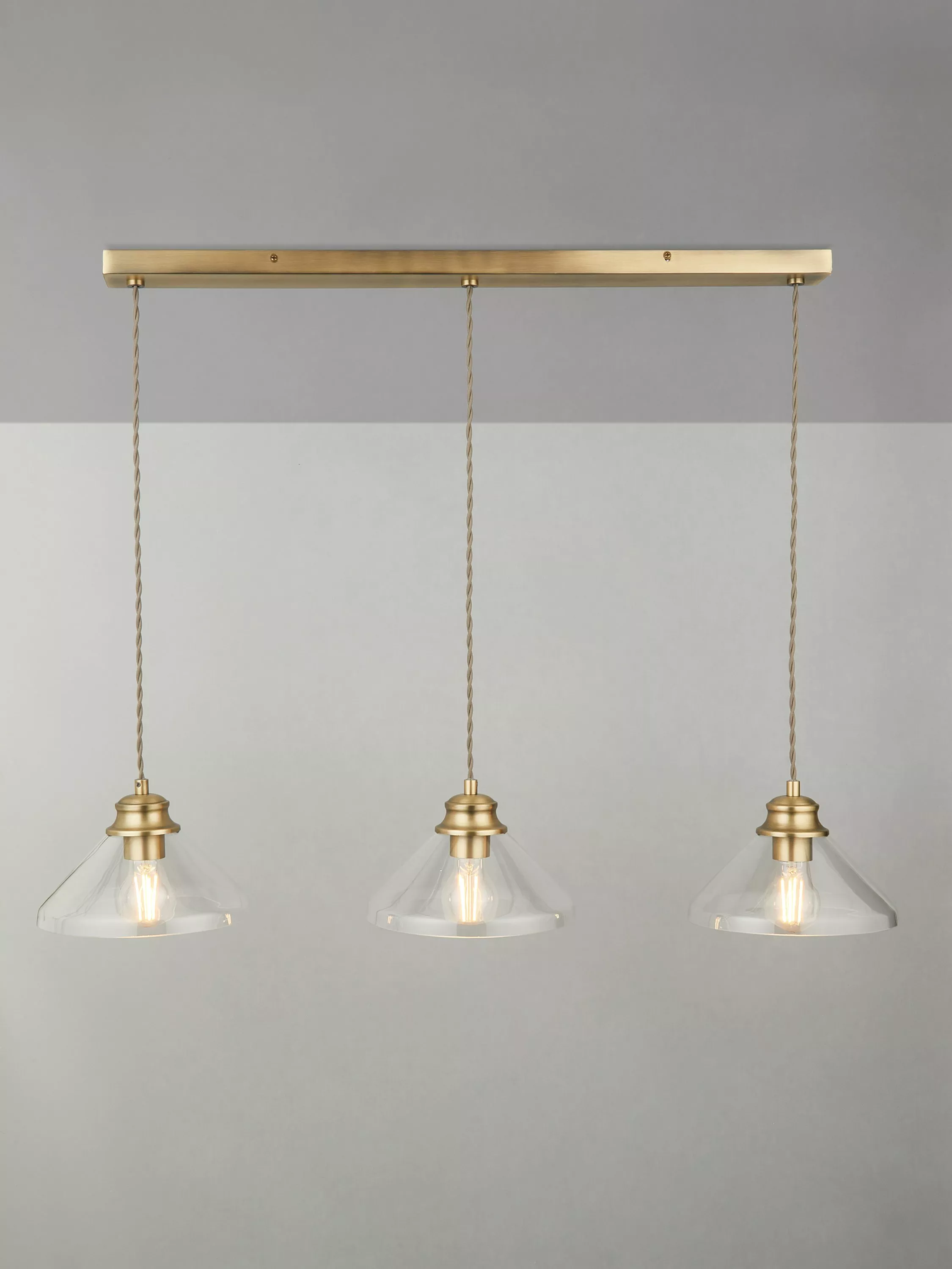 Hints of Parisian café chic, Tula combines refined glass forms and classically detailed metalwork. This over-dining ceiling light has three shades, finished with height adjustable twisted fabric cables.