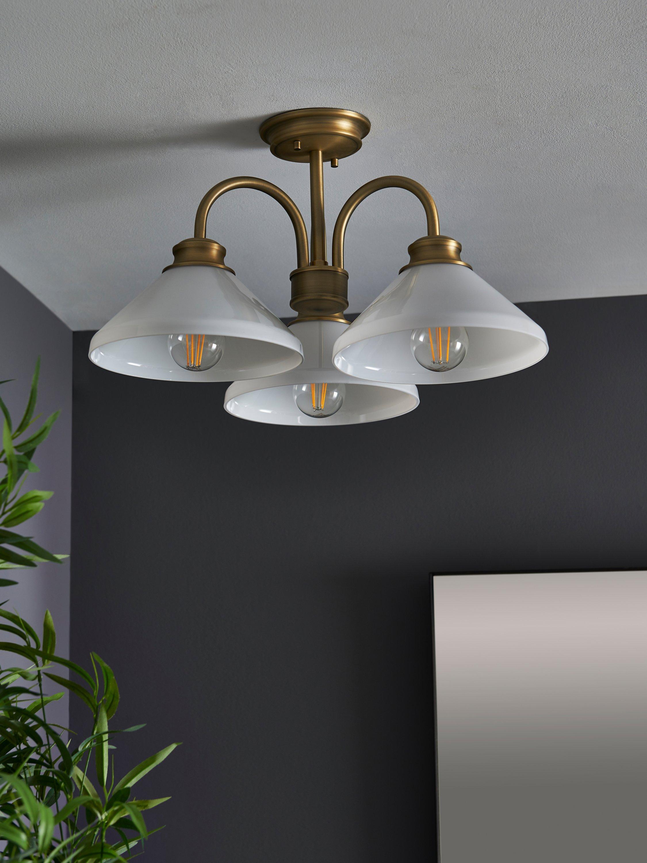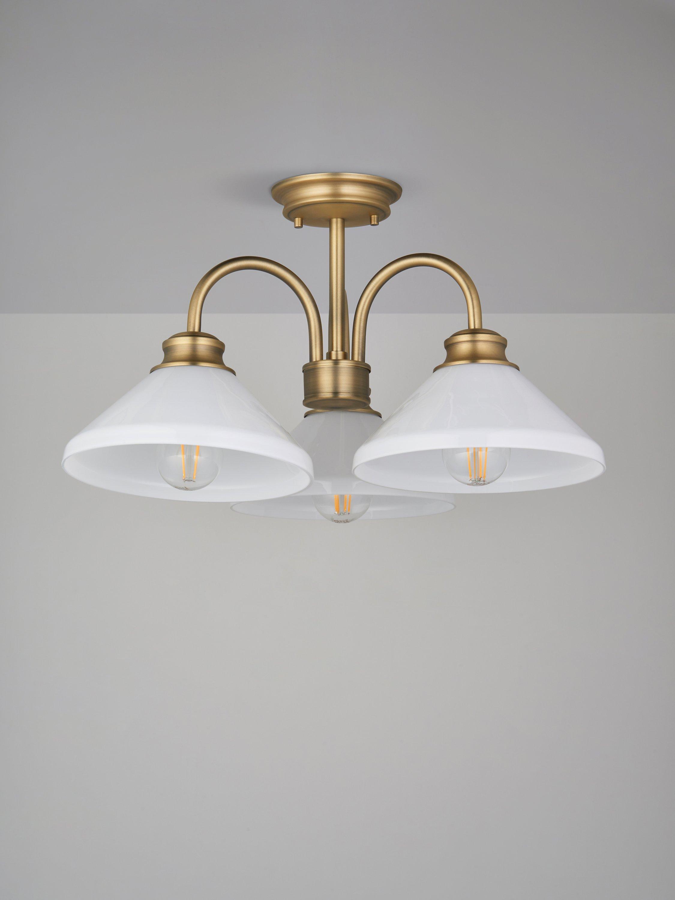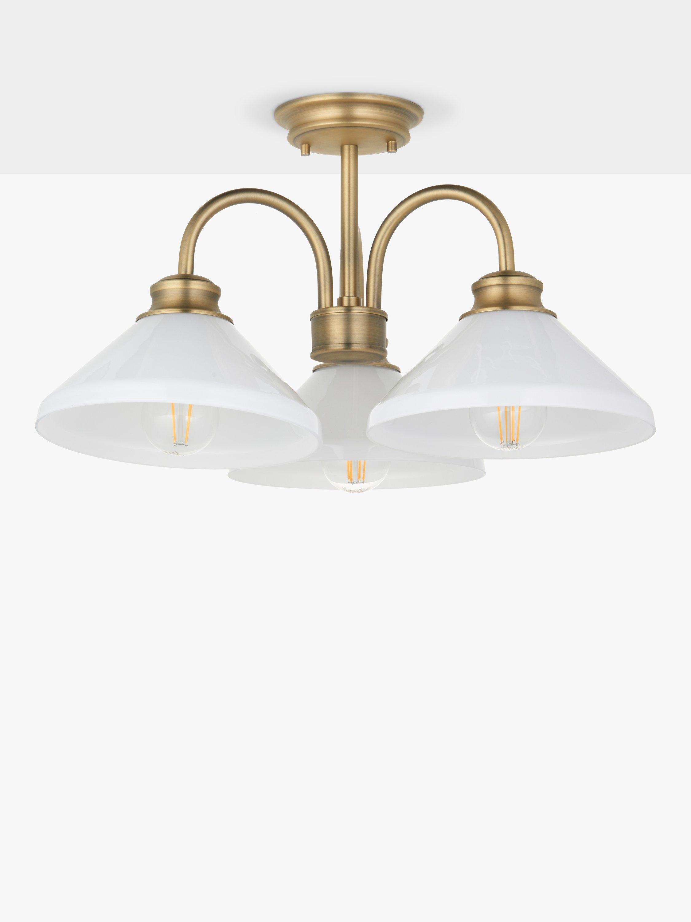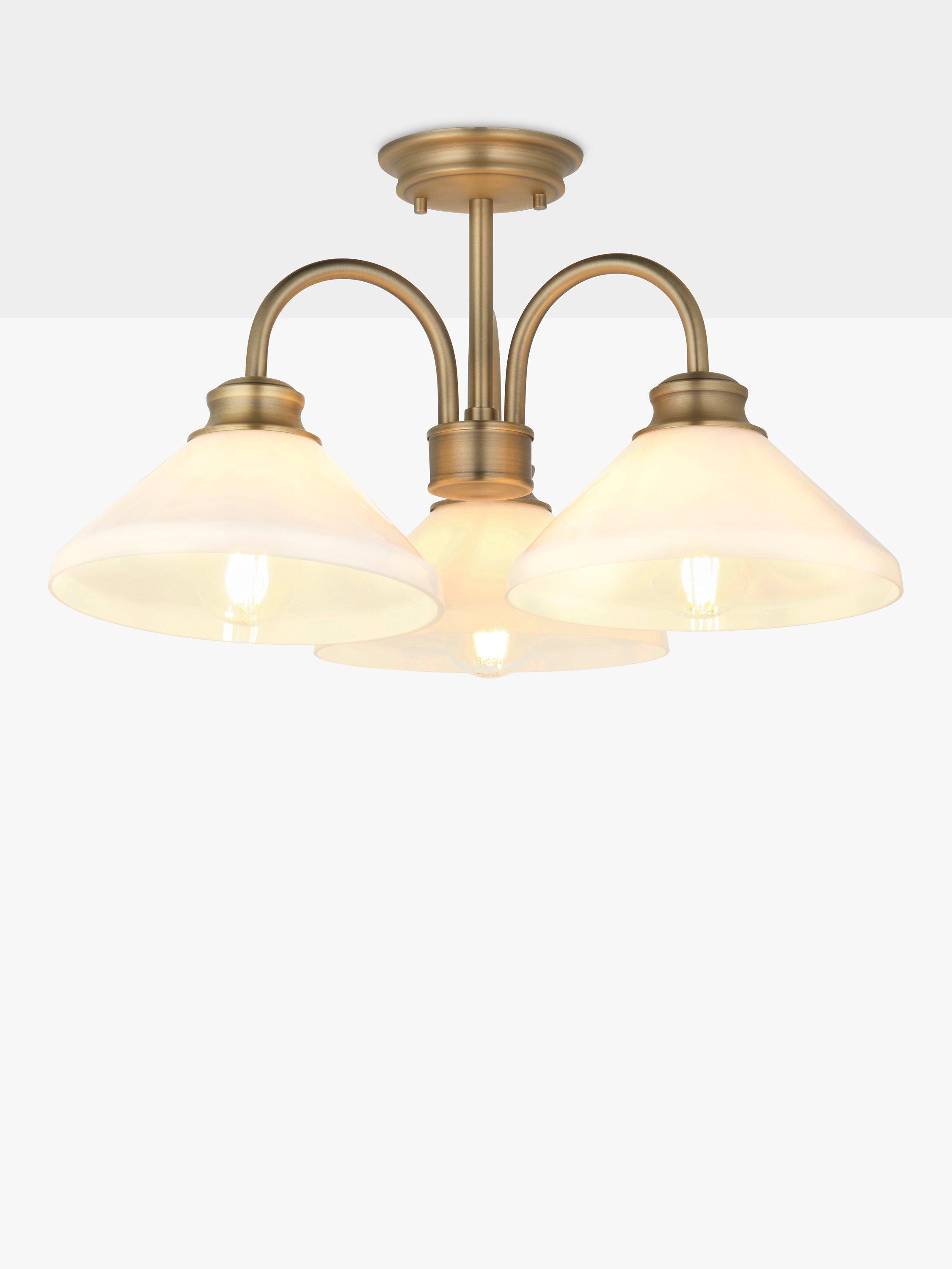Hints of Parisian café chic, Tula combines refined glass forms and classically detailed metalwork. This semi flush light is ideal for spaces with a low ceiling height and offers three elegantly designed goose neck arms each with a bold, evenly lit glass shade.