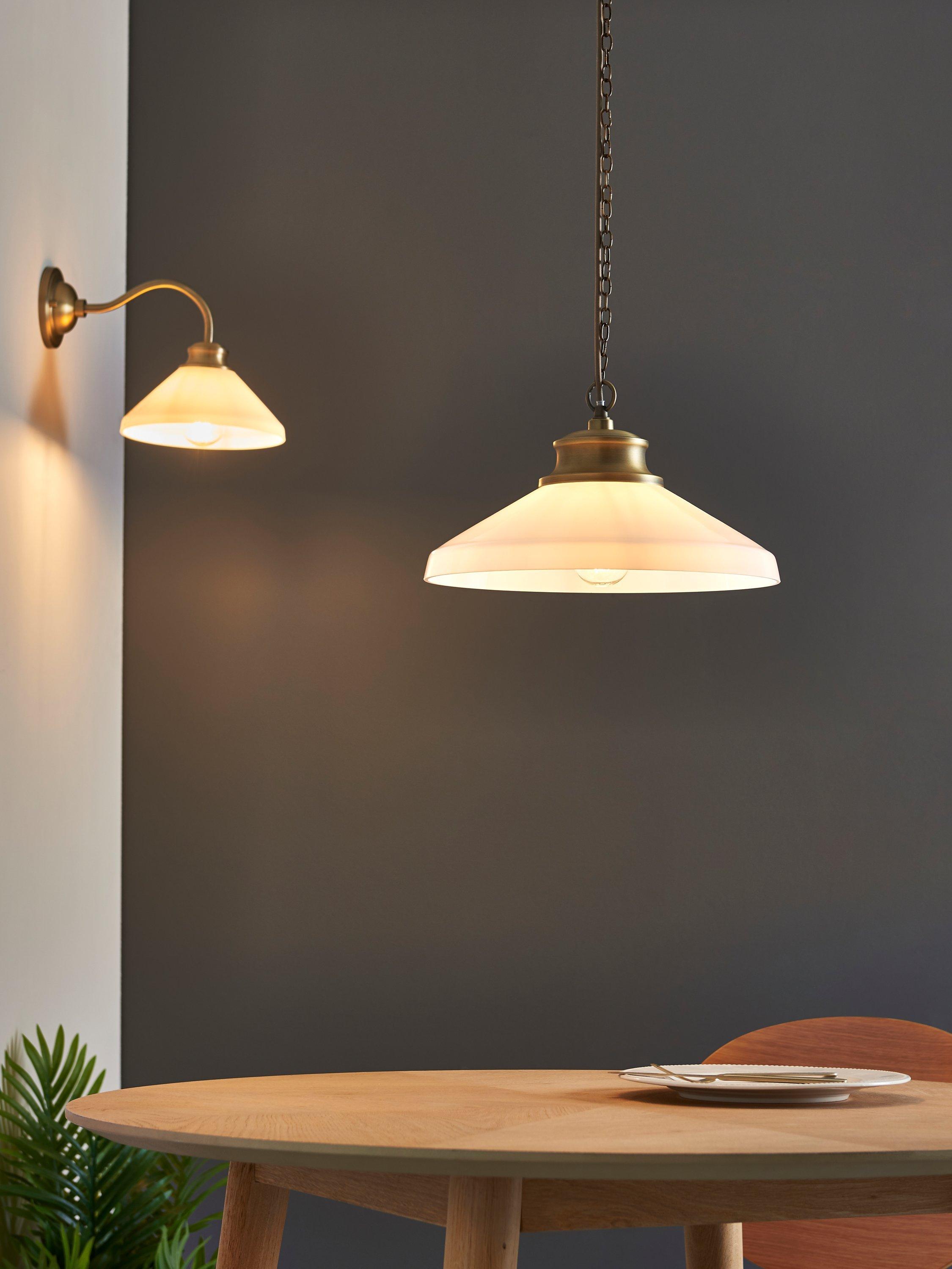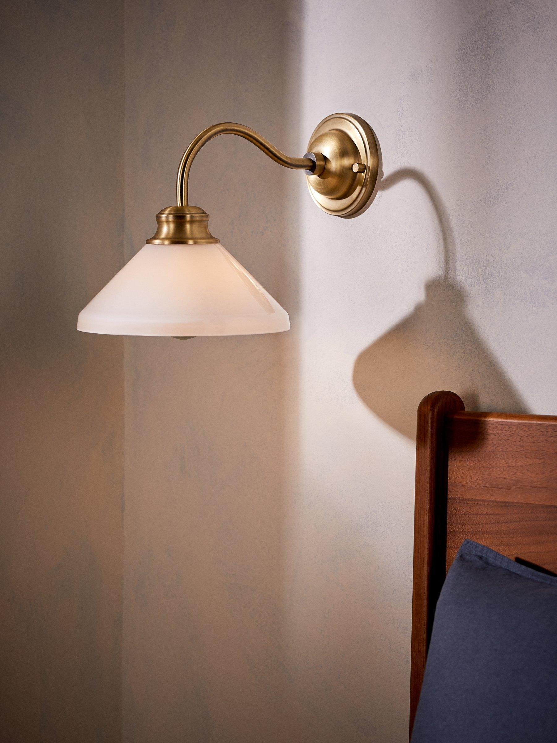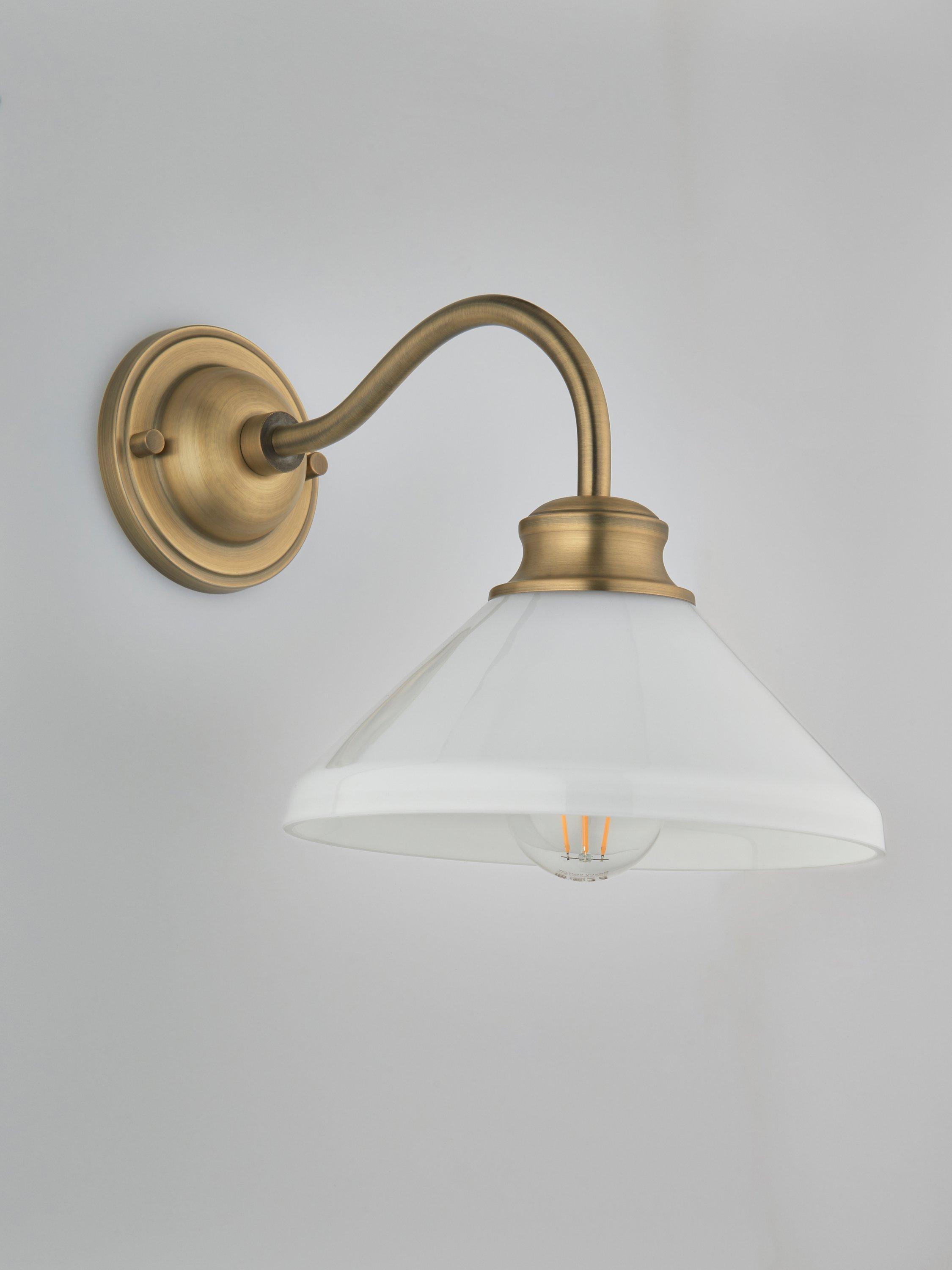 Hints of Parisian café chic, Tula combines refined glass forms and classically detailed metalwork. This wall light is designed with an elegant goose neck arm and offers a bold, evenly lit glass shade.
