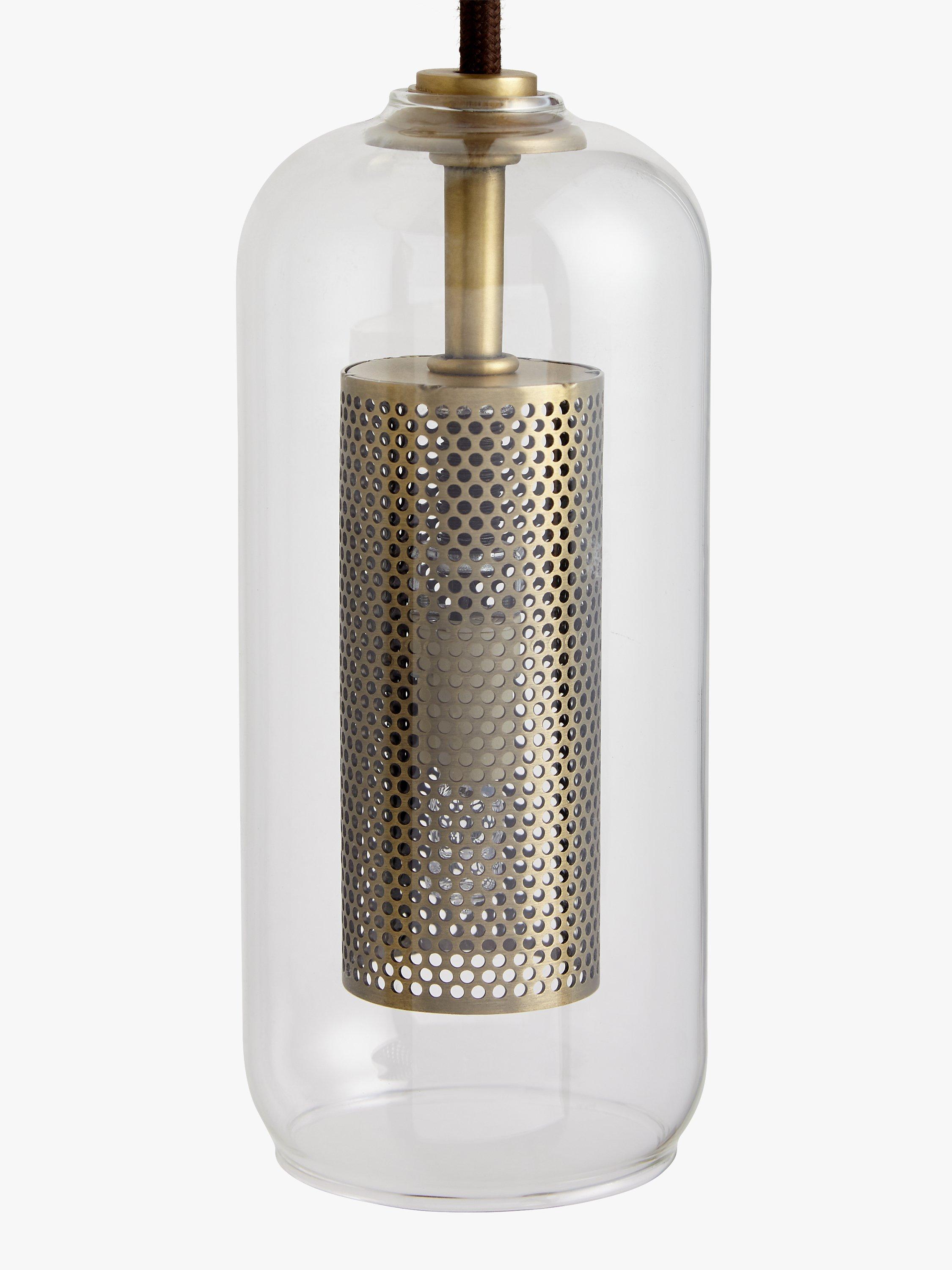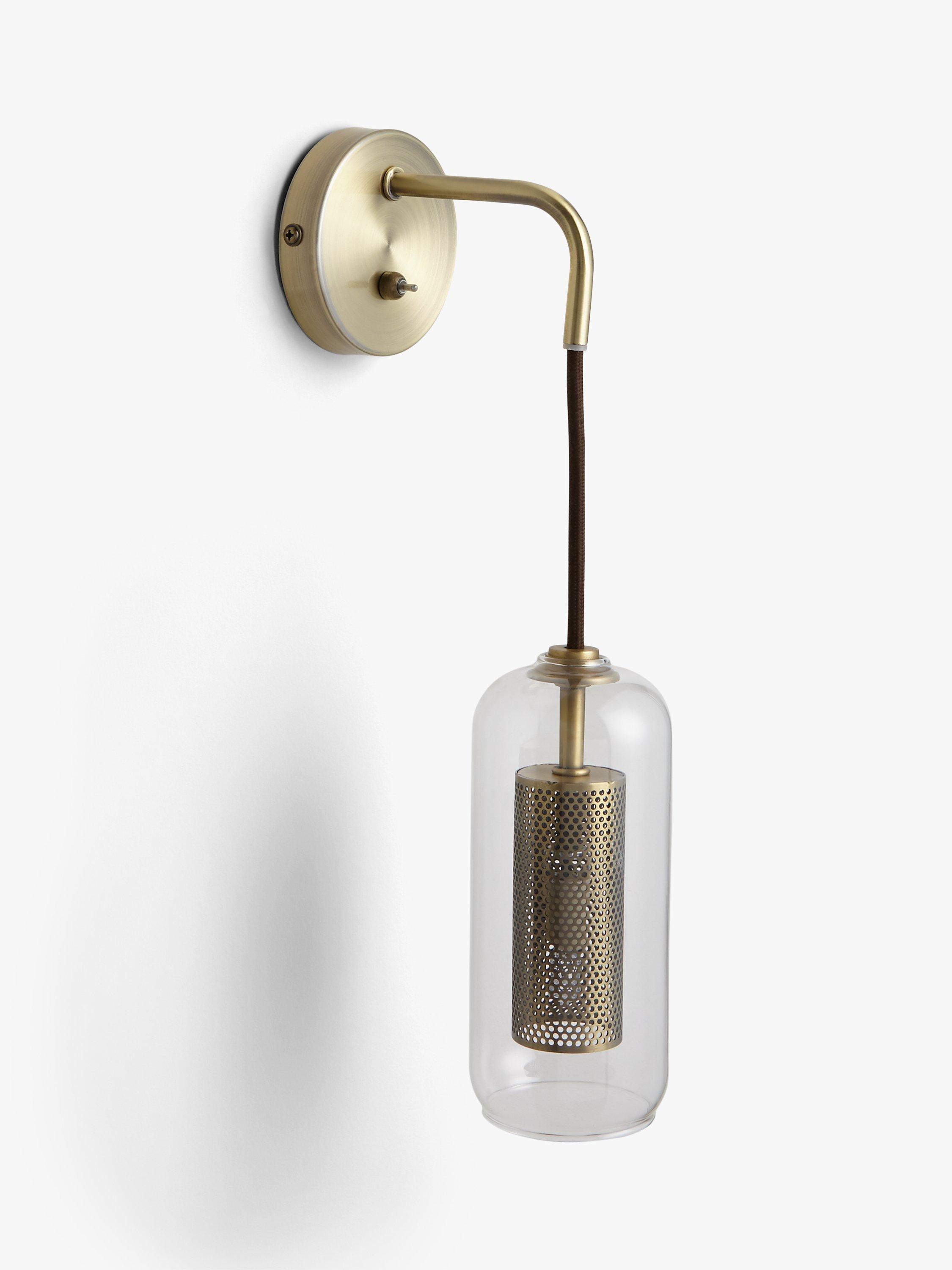 Our Tulip wall light offers an ambient wash of light. The light source sits behind a metal grate that's encased within a recycled glass shade. Its sleek, single arm design is understated, with a versatile antique brass finish.
