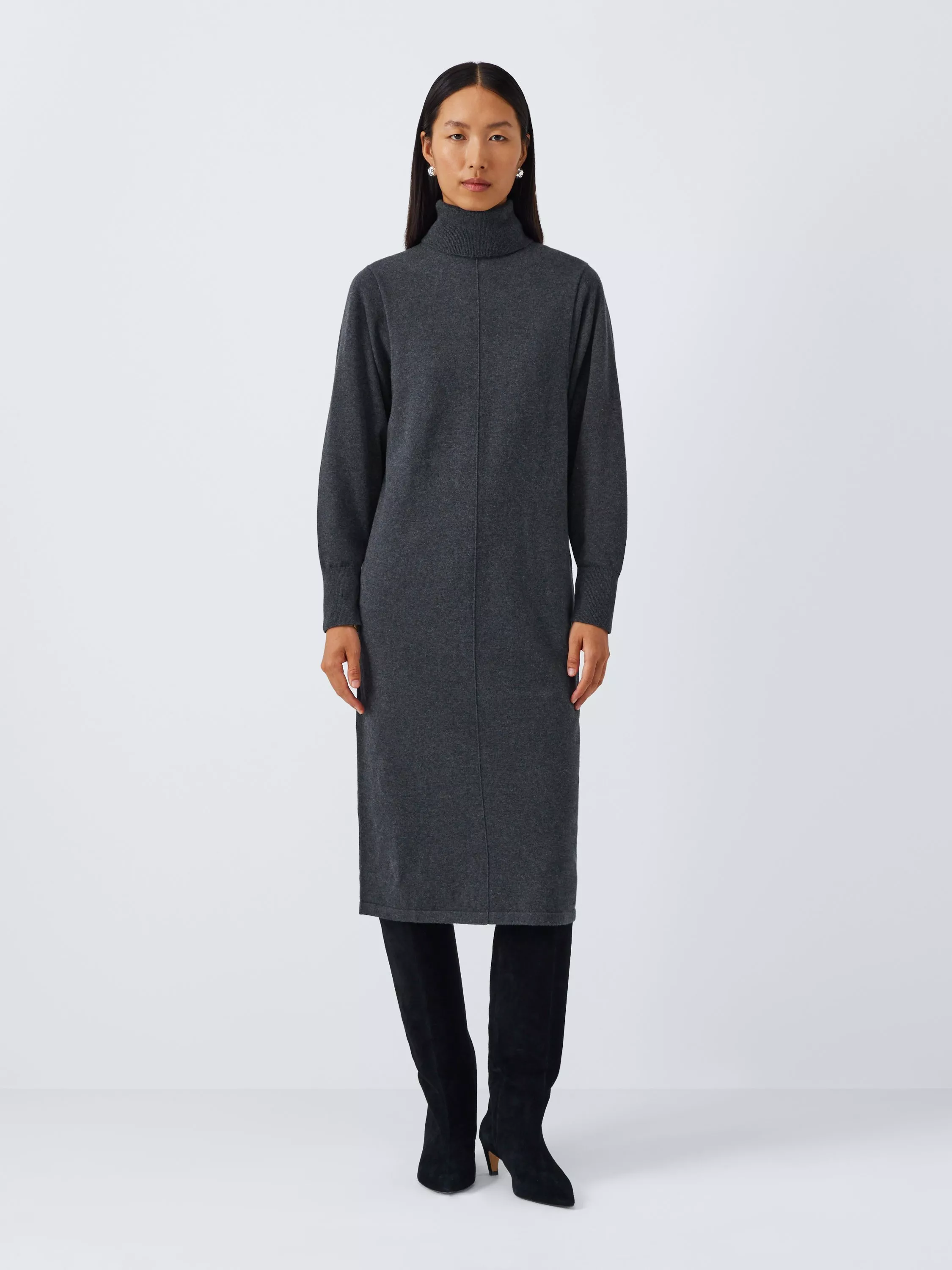 Batwing jumper dress with a cosy turtle neck. Falling to midi length, it's knitted from a soft cotton blend.