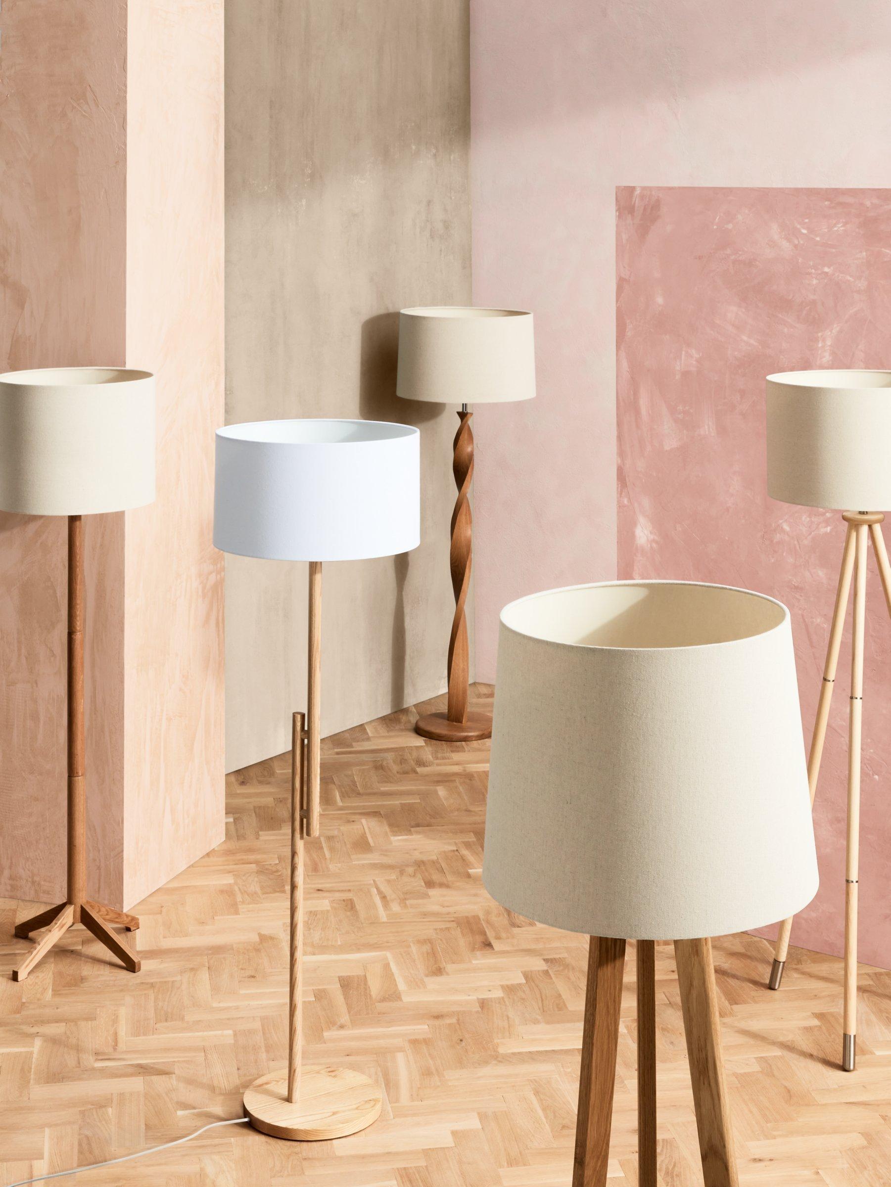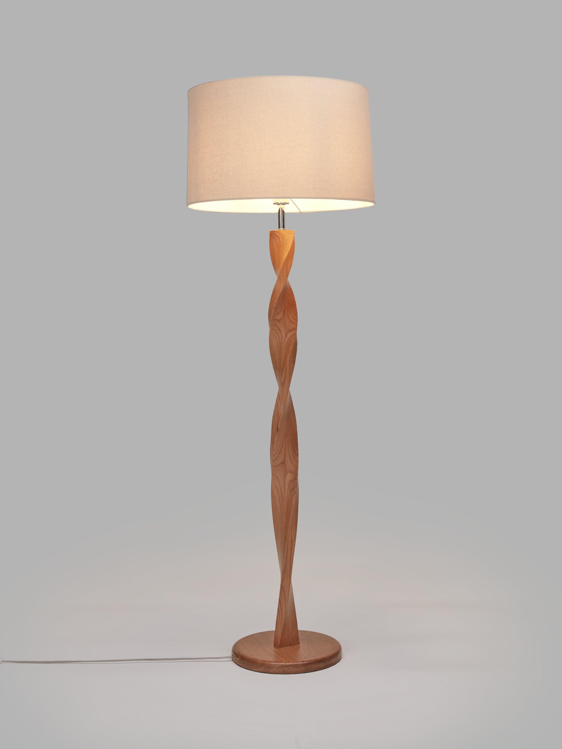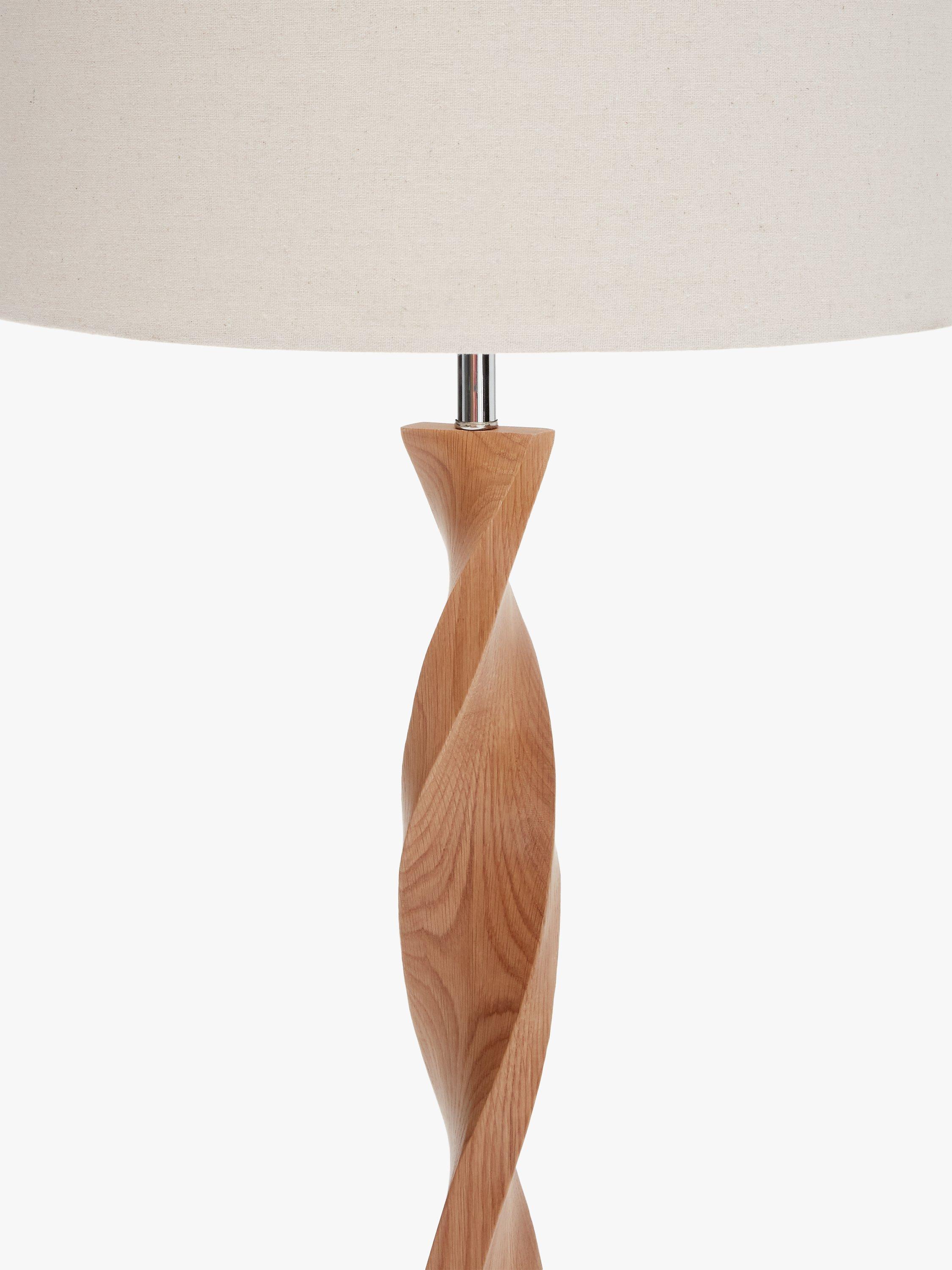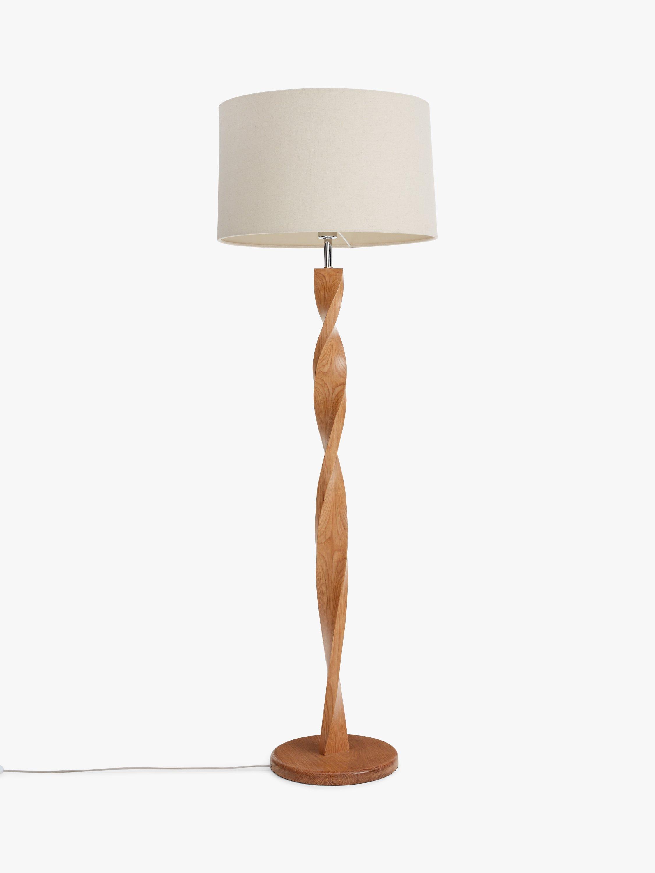 This floor lamp takes inspiration from the Arts & Crafts Movement, whose members believed even the most functional thing should be beautifully designed. The double twisted stem is mounted on a deep, round base, both made from solid oak in a natural finish. We've added a natural linen lampshade to enhance a warm glow of light and a simple foot switch. It's a timeless, adaptable style that will suit both traditional and more modern settings.