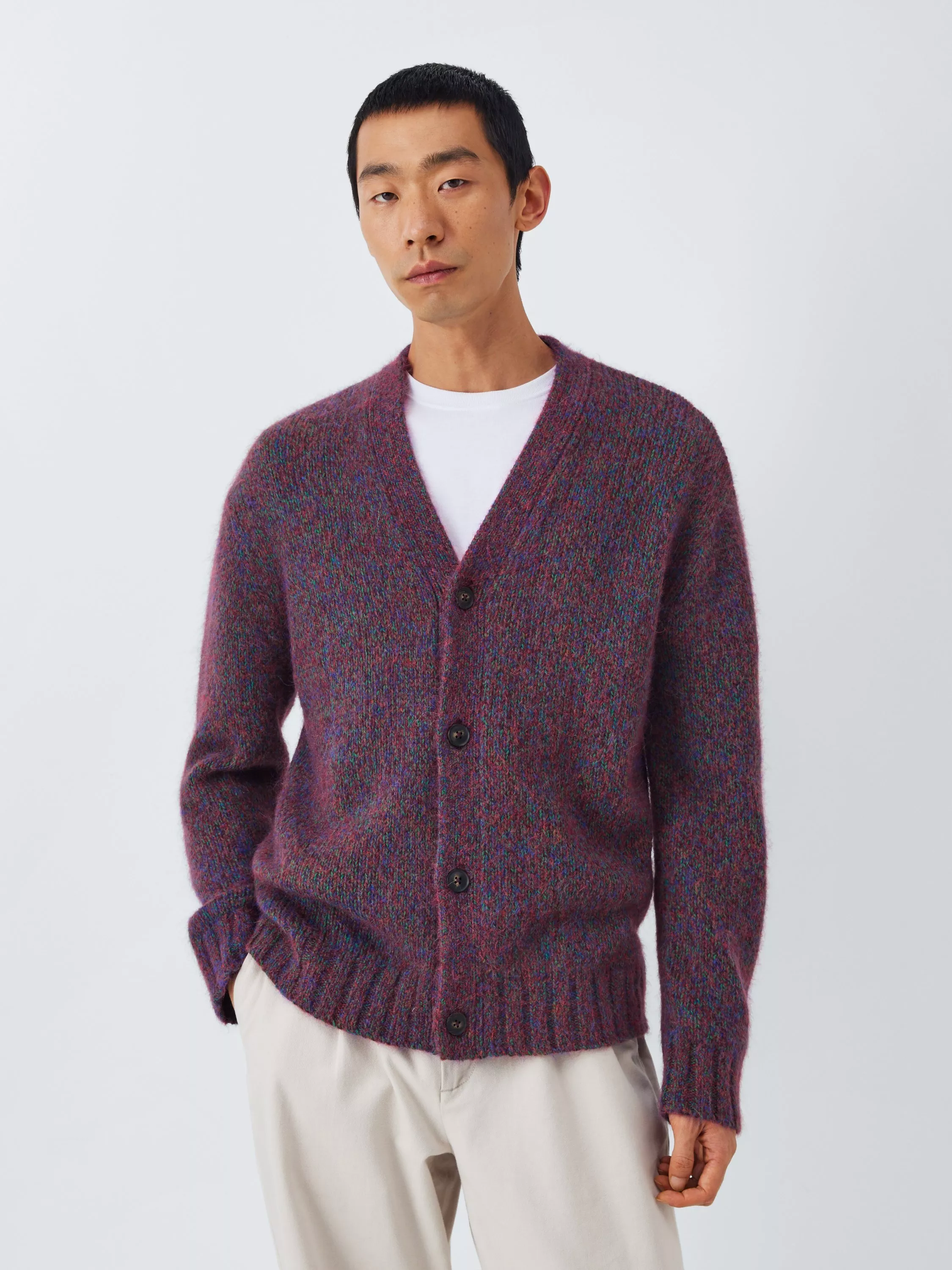 V-neck cardigan in a knitted blend that includes luxurious alpaca and wool, with a touch of cashmere for added softness. Finished with a button-down front and chunky ribbed knit on the cuffs and hem.