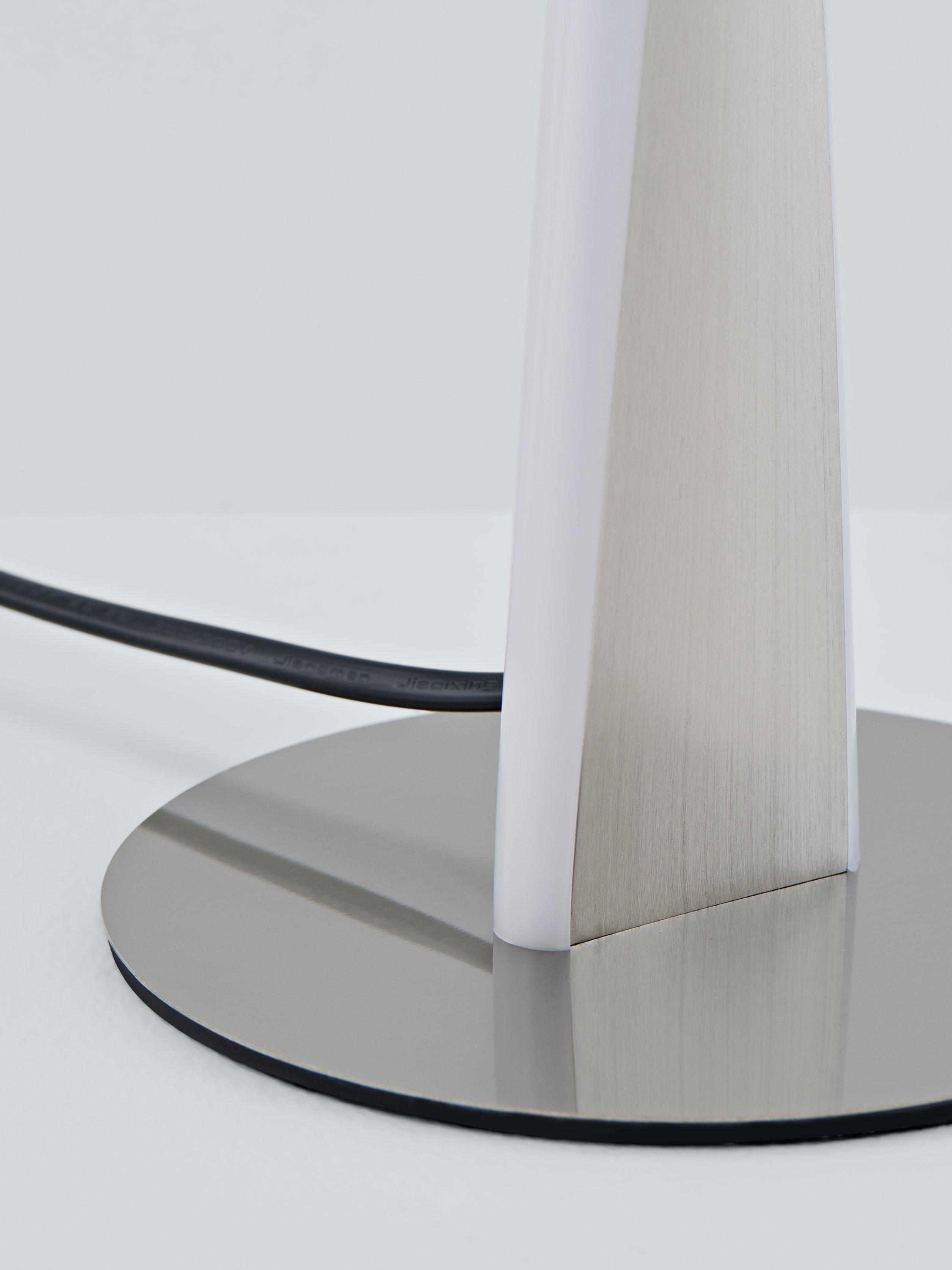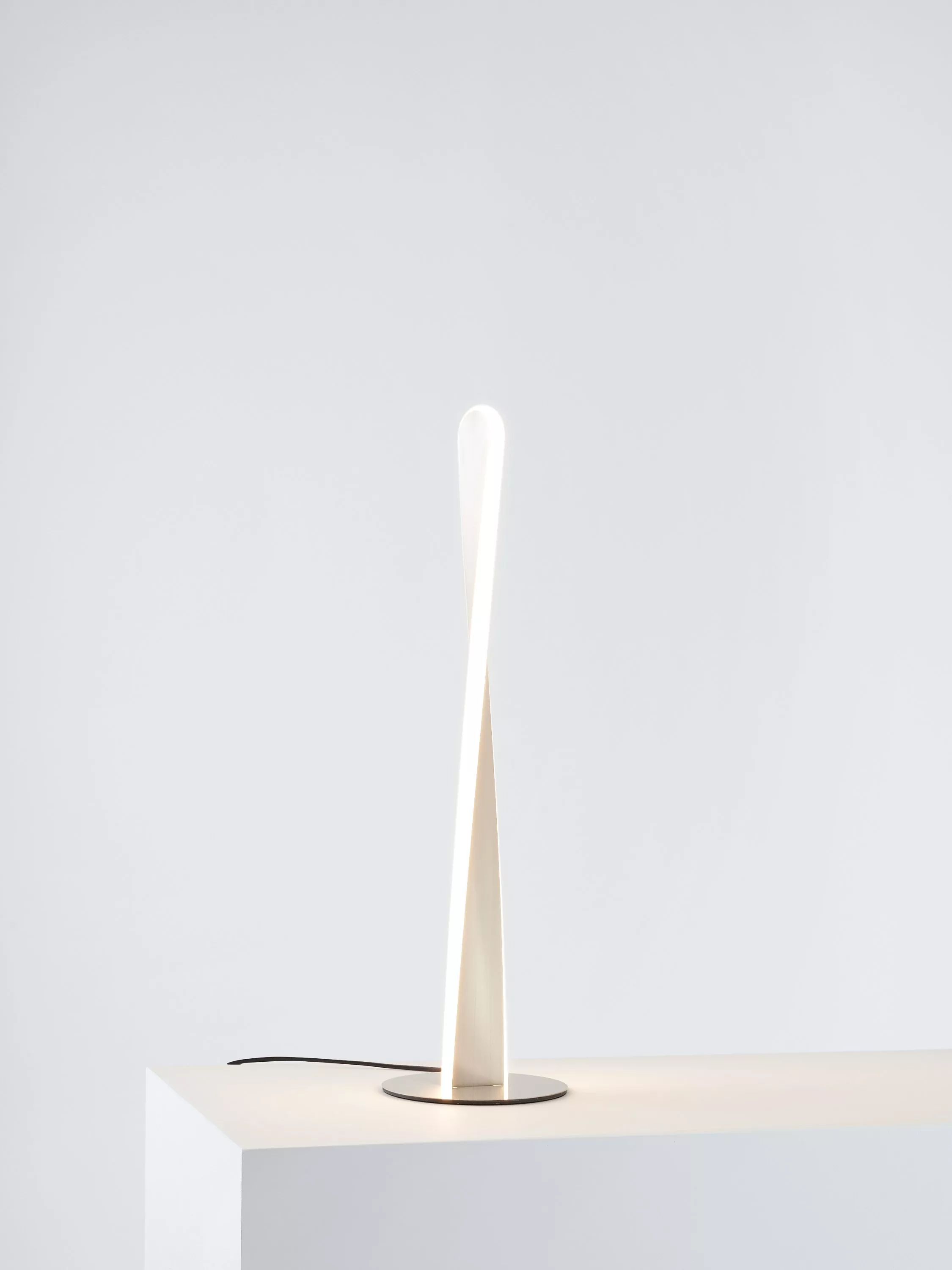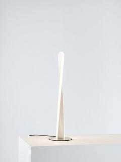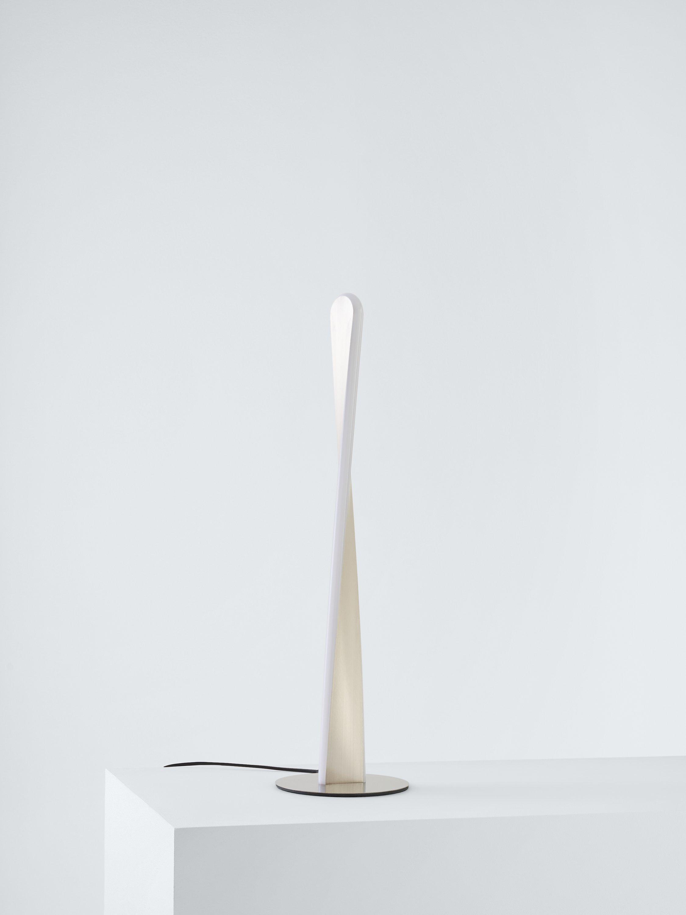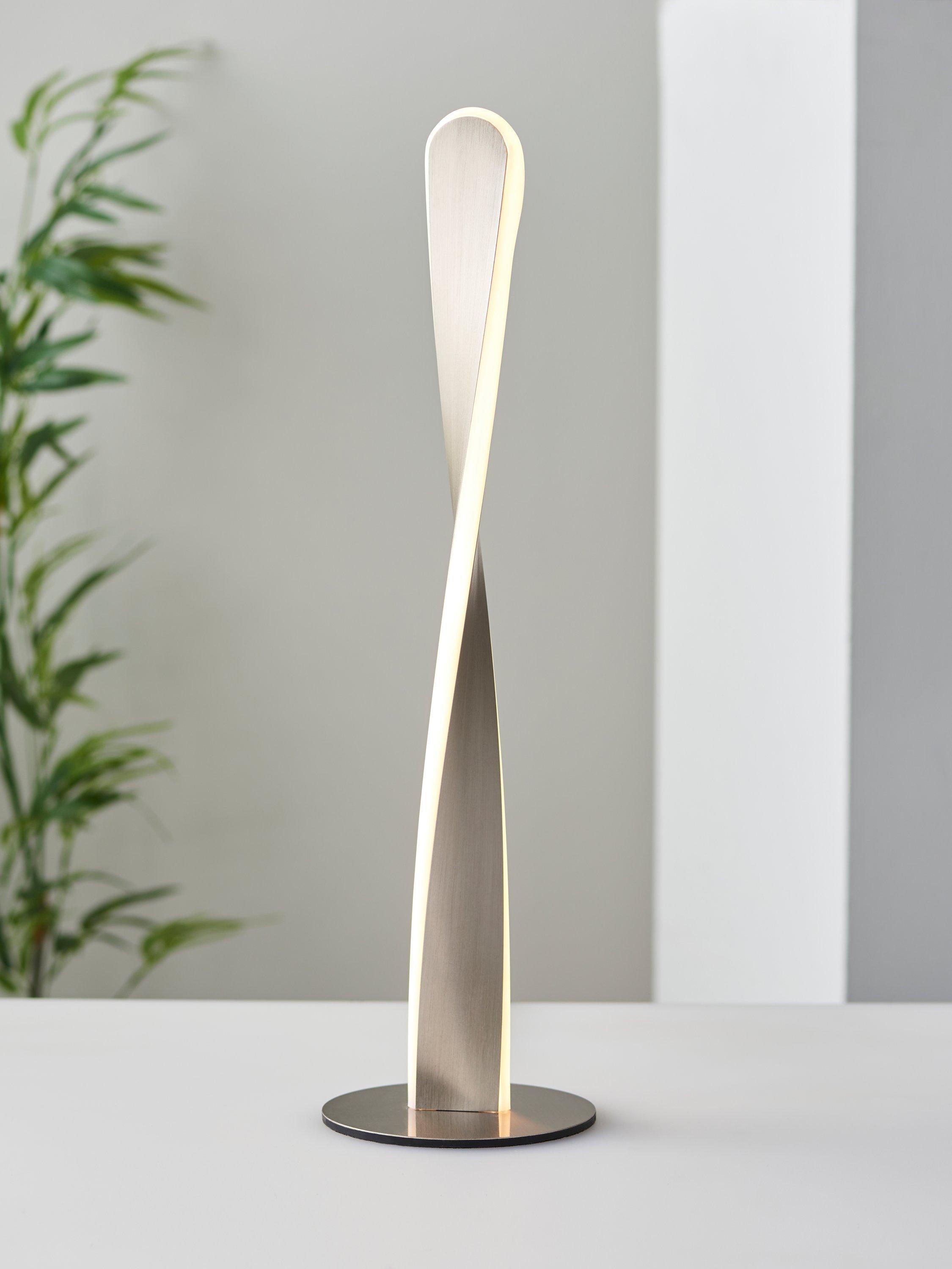 This sculptural table lamp looks impressive both lit and unlit and we've integrated an LED module into its twisted shape. Tall in height with a compact round base, it offers a warm glow of light. It's subtle in its brushed metal finish but its unusual design will draw the eye.