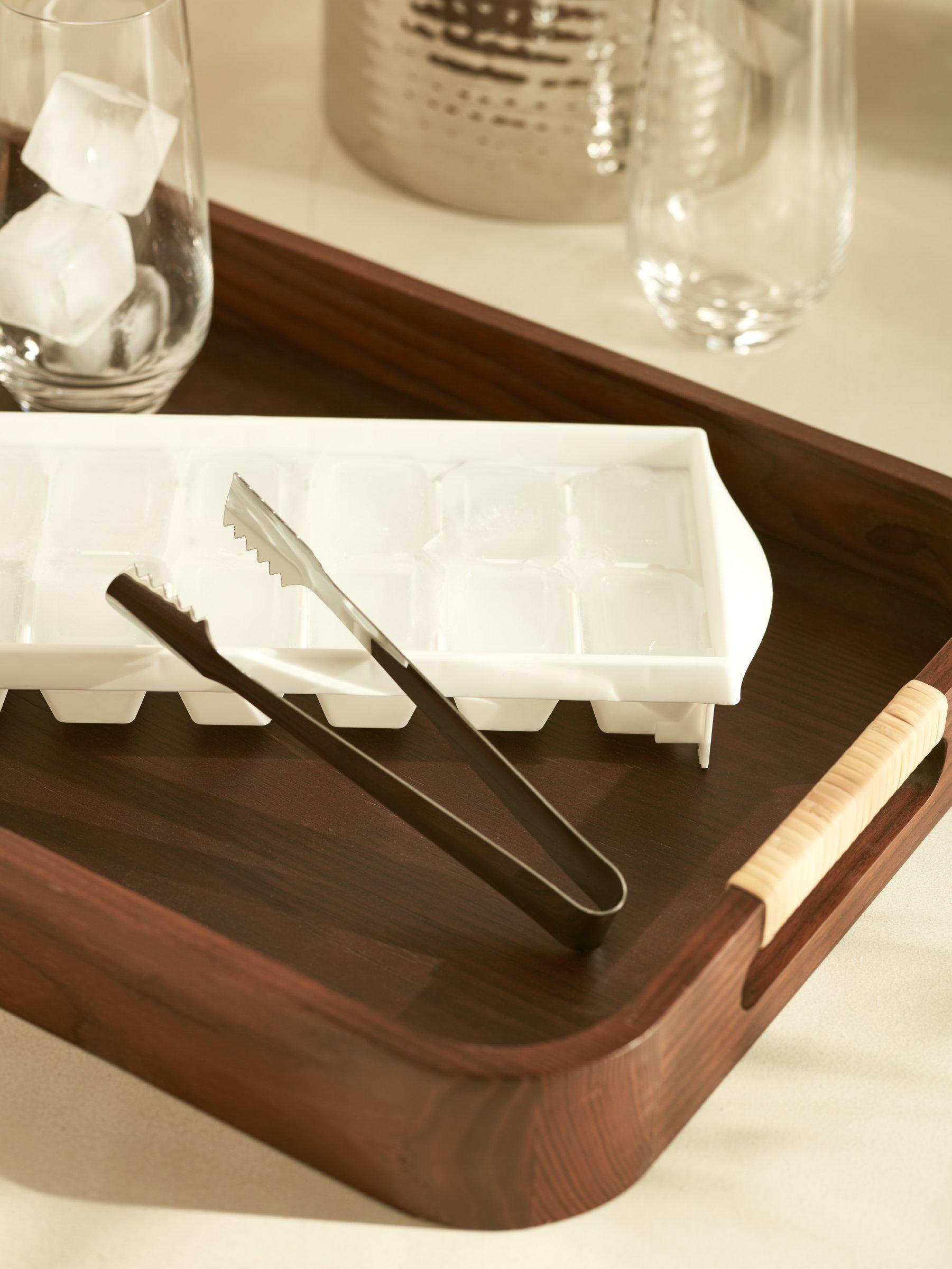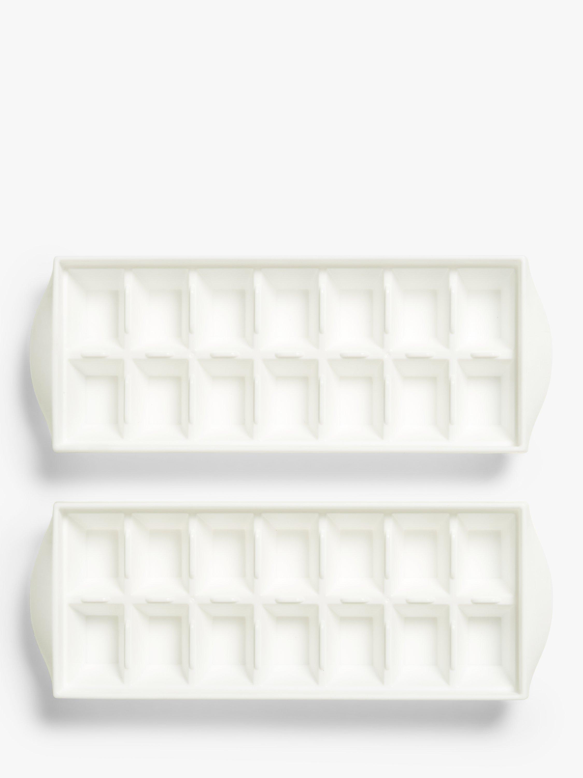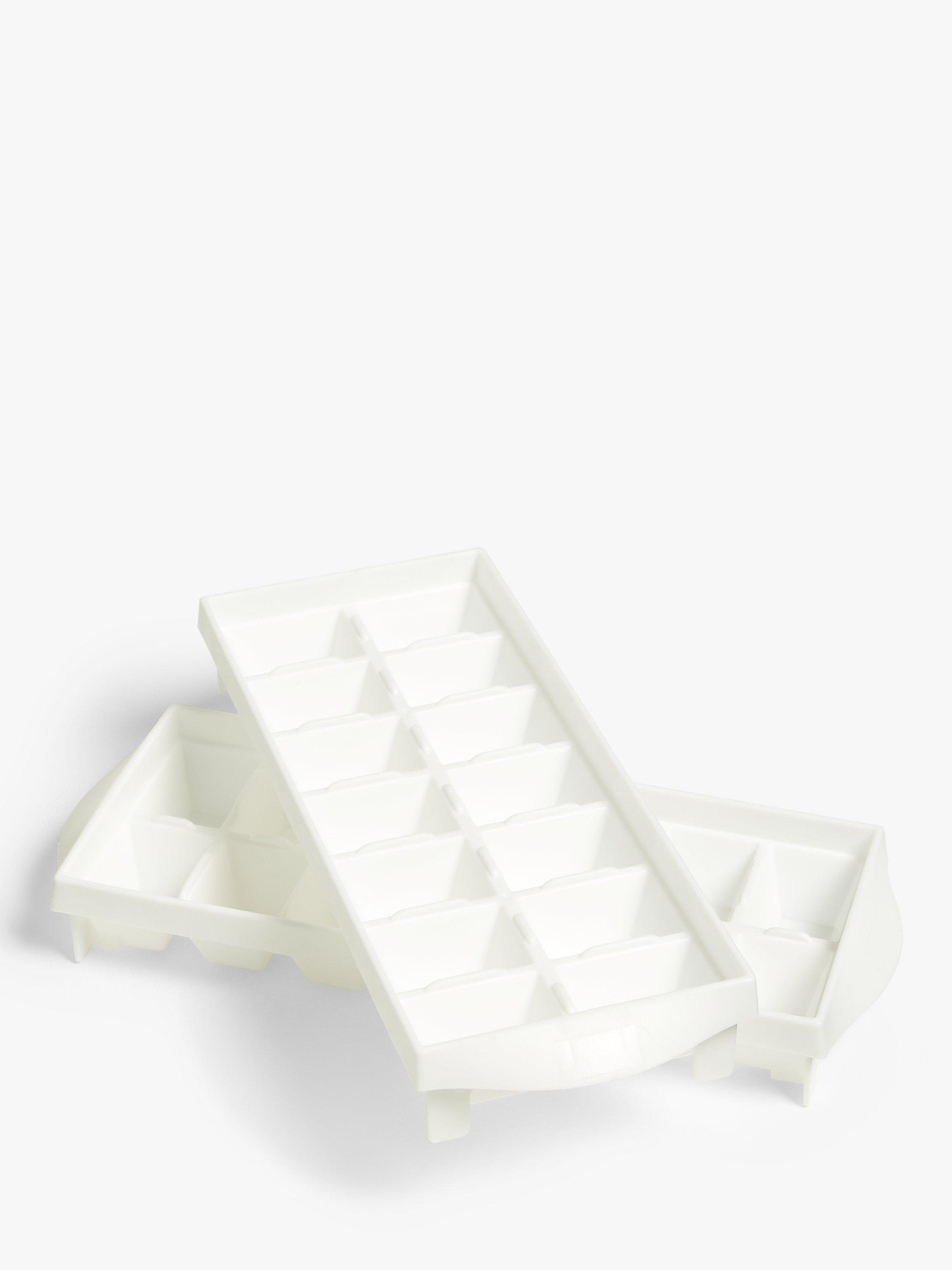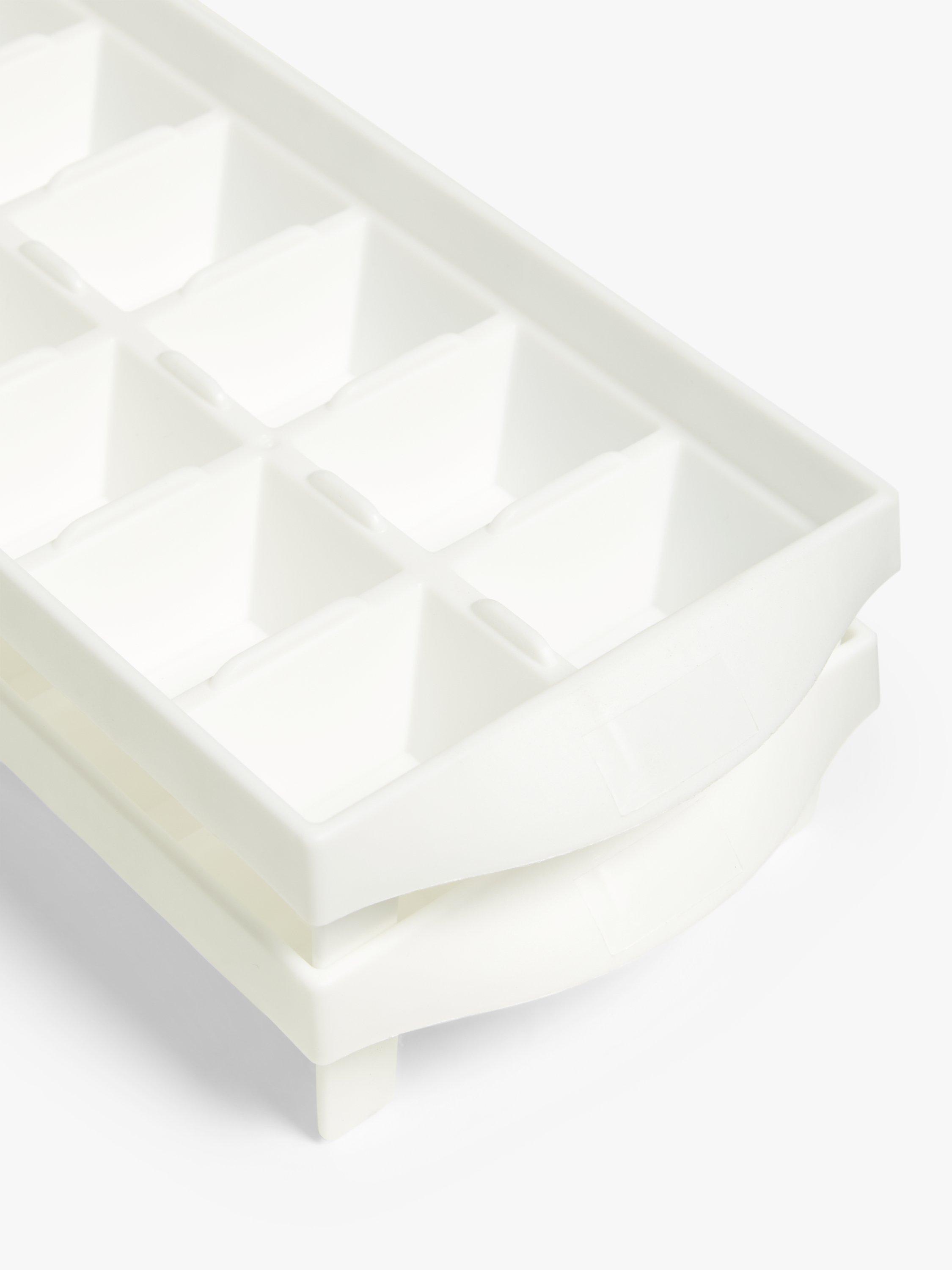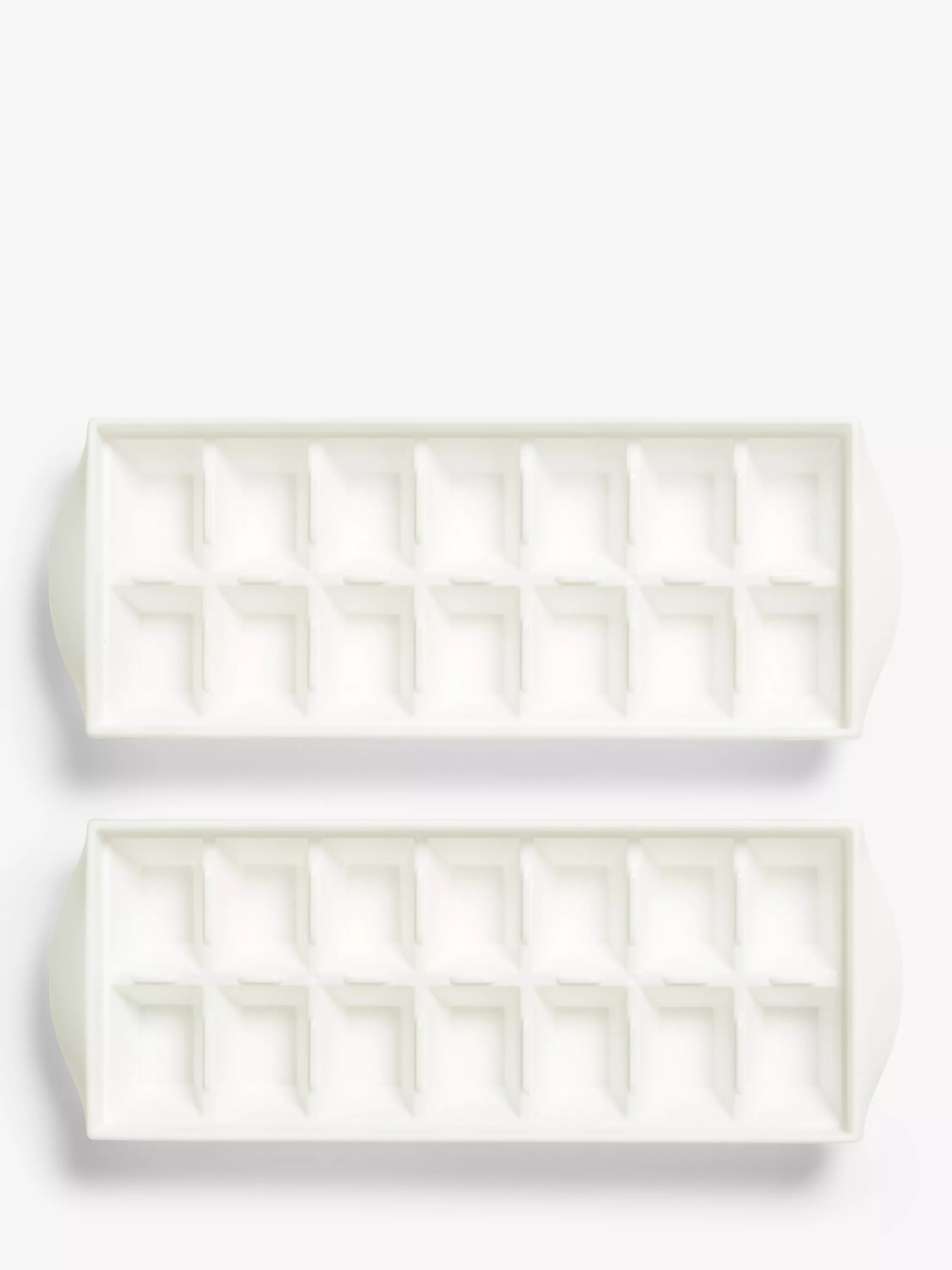 A 2 row ice cube tray in a non-stich, quick release design that's high sided to prevent spillages when filling up.