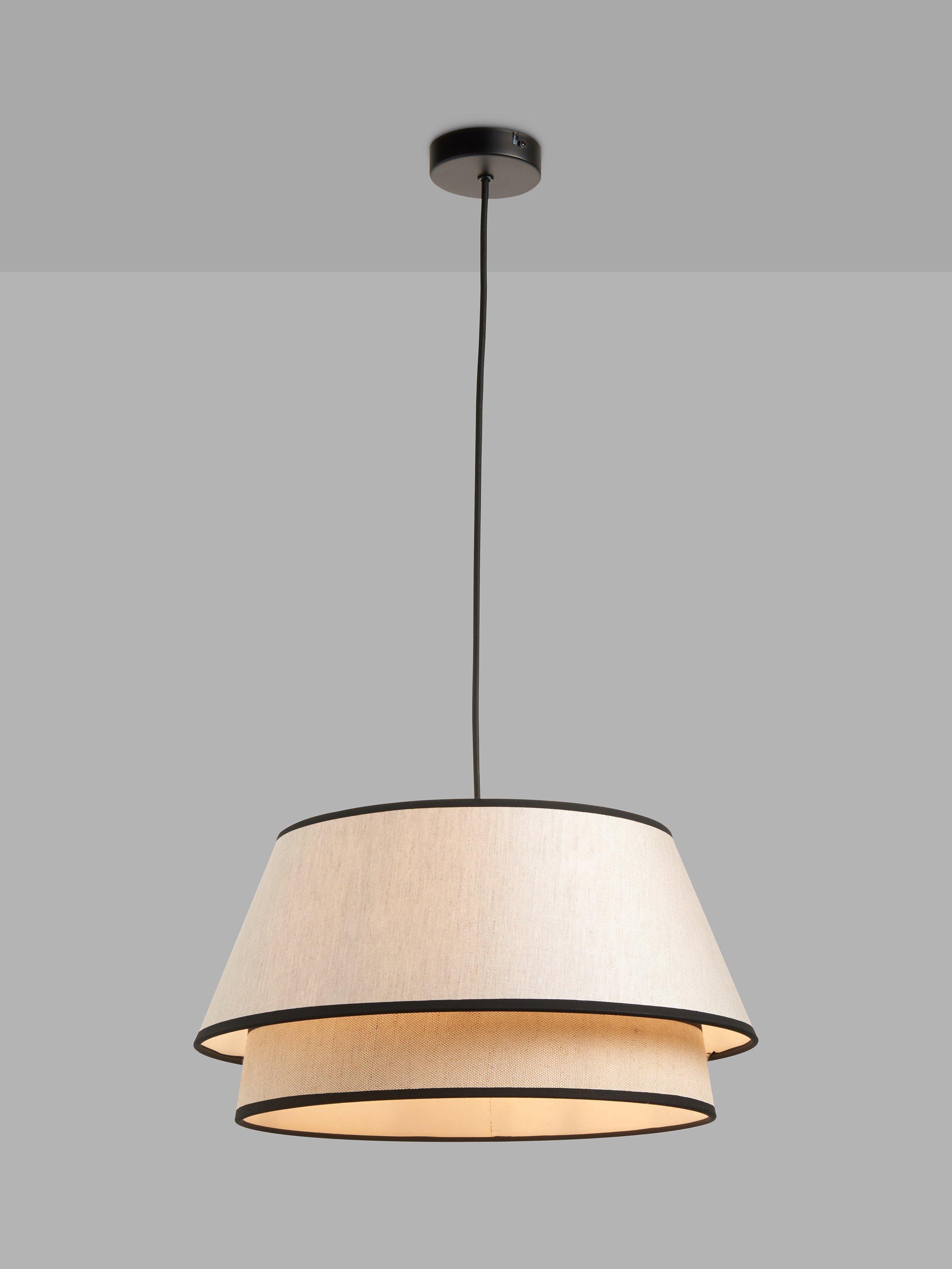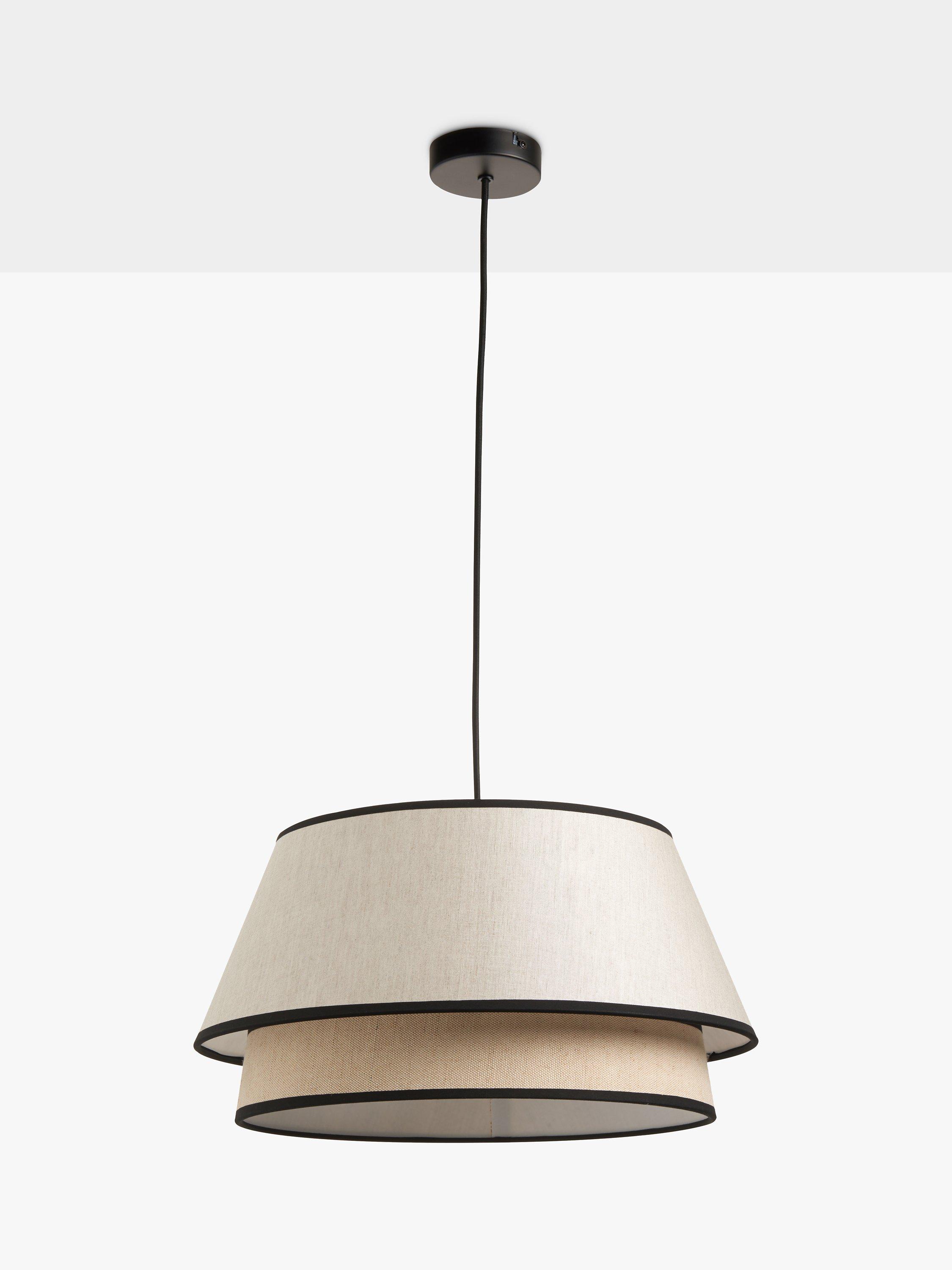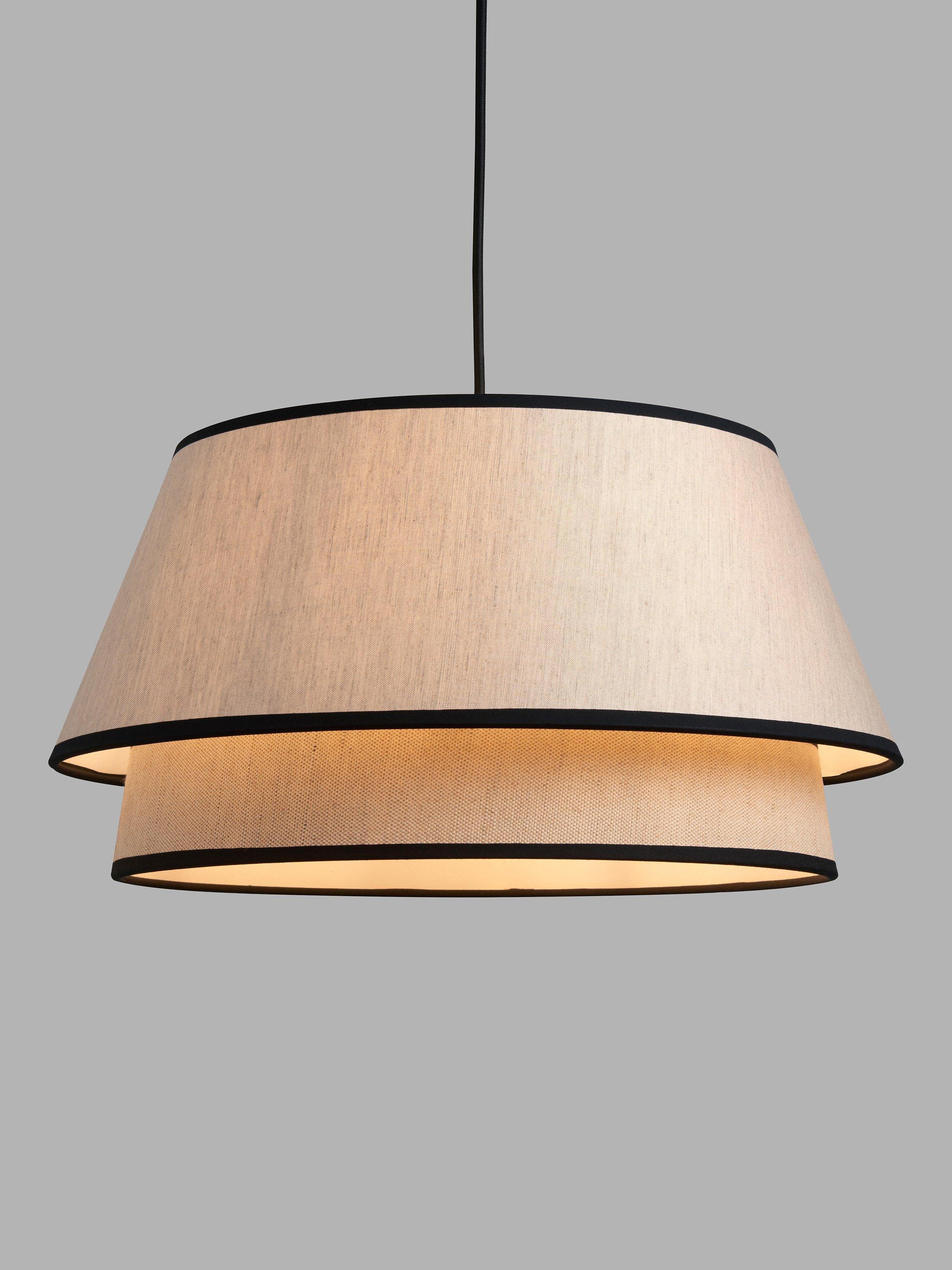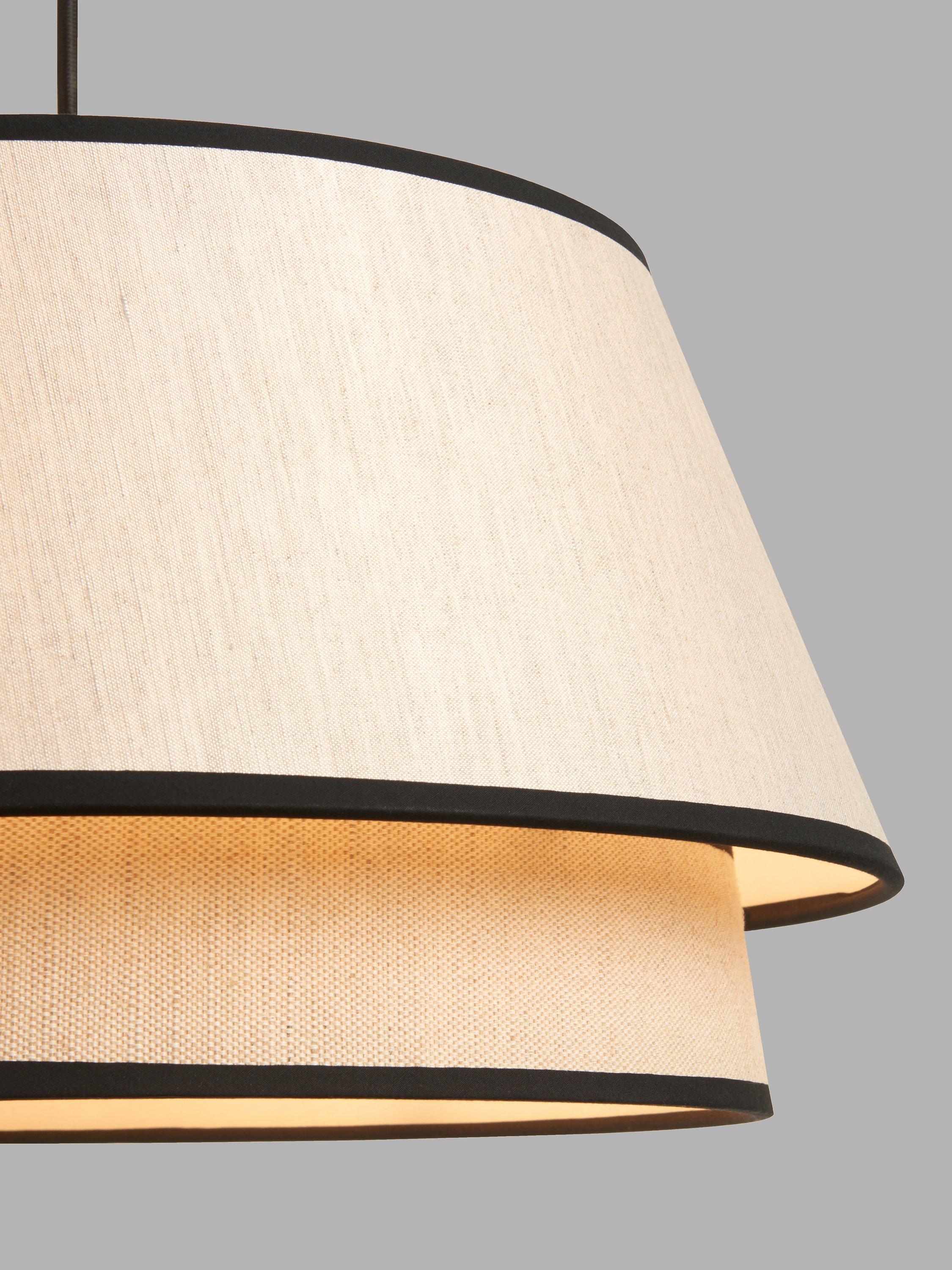 We've created this two-tier pendant from a mix of fabrics, using textured faux linen and natural cotton. Taking inspiration from Japanese design, both shades have a cotton taped edge which creates a distinctive contrast. The shades give out a warm glow when the light is switched on, filling your space with a relaxing ambience.