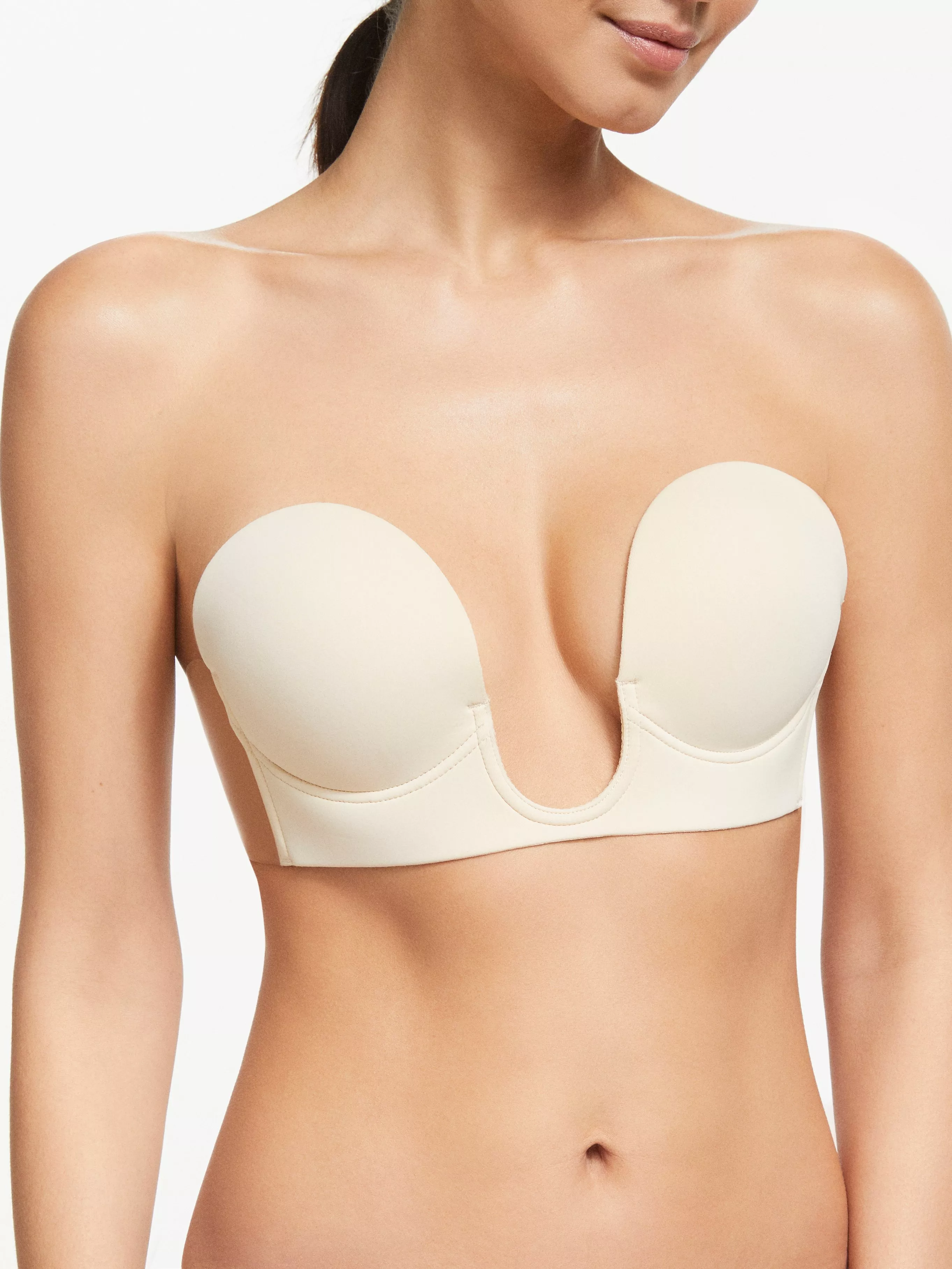 This u-plunge stick-on strapless bra solution allows you to wear plunging backless or strapless clothing with complete confidence. Designed with a u-shaped front with invisible adhesive side wings providing extra reassurance and support, it's complete with seamless moulded cups for a smooth finish. The bra should be wiped clean after each wear and can be used up to 20 times when care instructions are followed correctly.