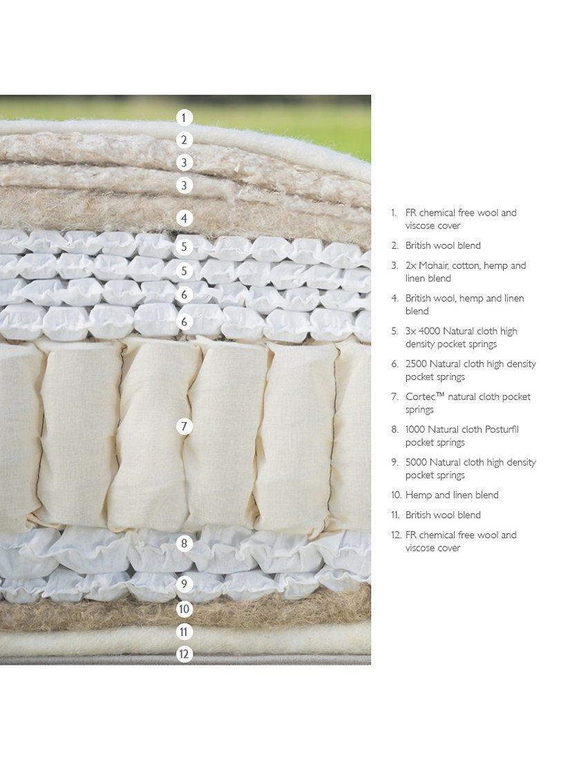 Indulge in ultimate luxury with our own brand, John Lewis mattresses. The Ultimate Natural Collection 22250 is made with eight layers of natural fillings including hemp, flax, traceable British wool, cotton and mohair. Combining 100% natural fillings with innovative pocket spring technology - six layers of springs contour the body, for a super comfortable sleep. This mattress can be ordered in a regular or firmer tension depending on your comfort needs. This zip link model can be used as one large mattress or as two independent mattresses.