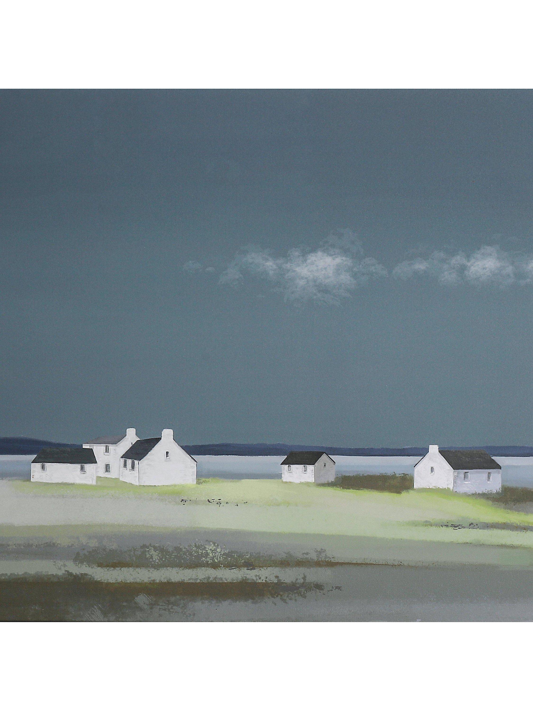 A family of whitewashed cottages are warmed in a sunlit spot beneath Ulyana Hammond's bruised blue-grey sunset. Framed canvas print, ready to hang on your wall.