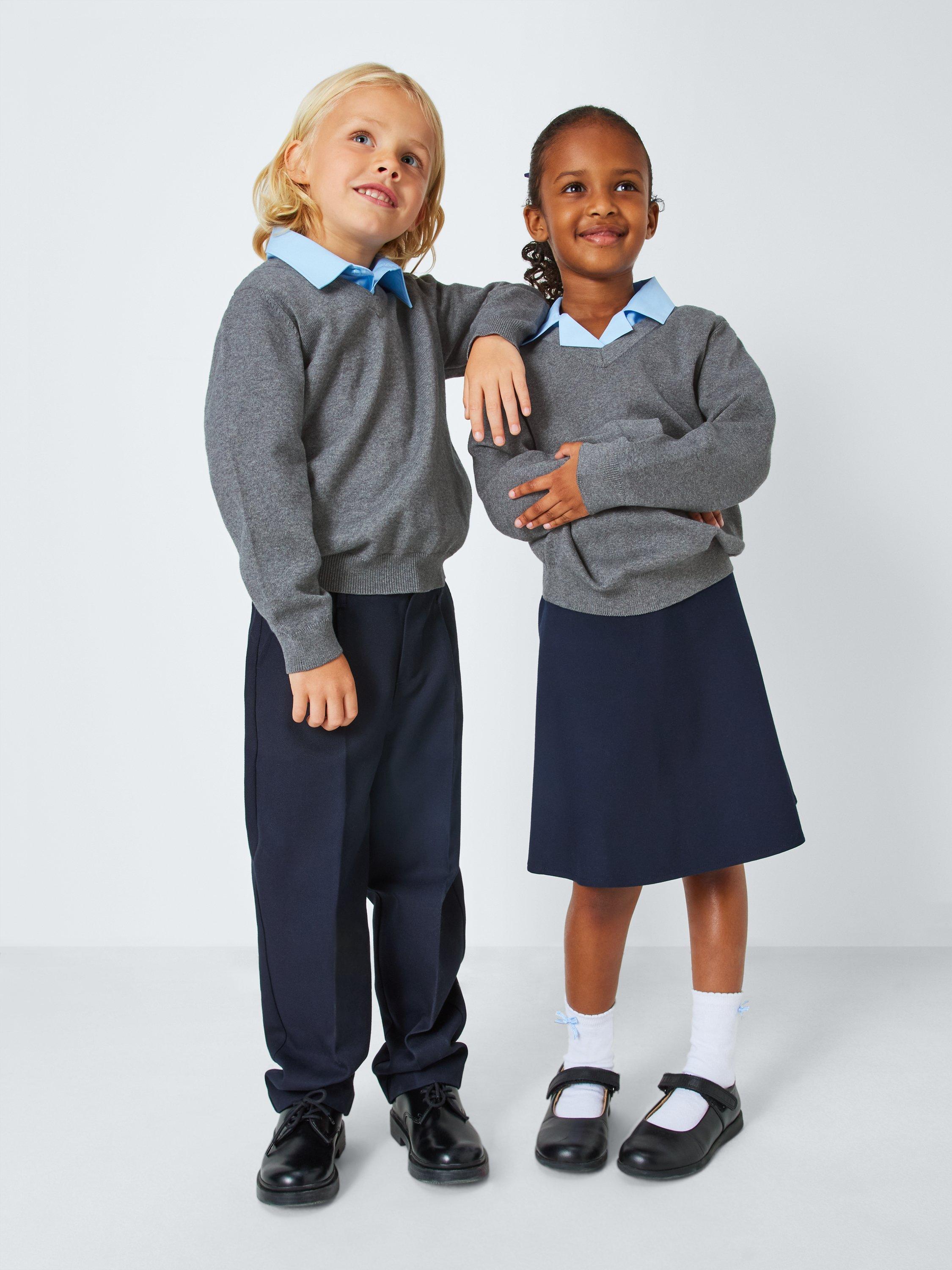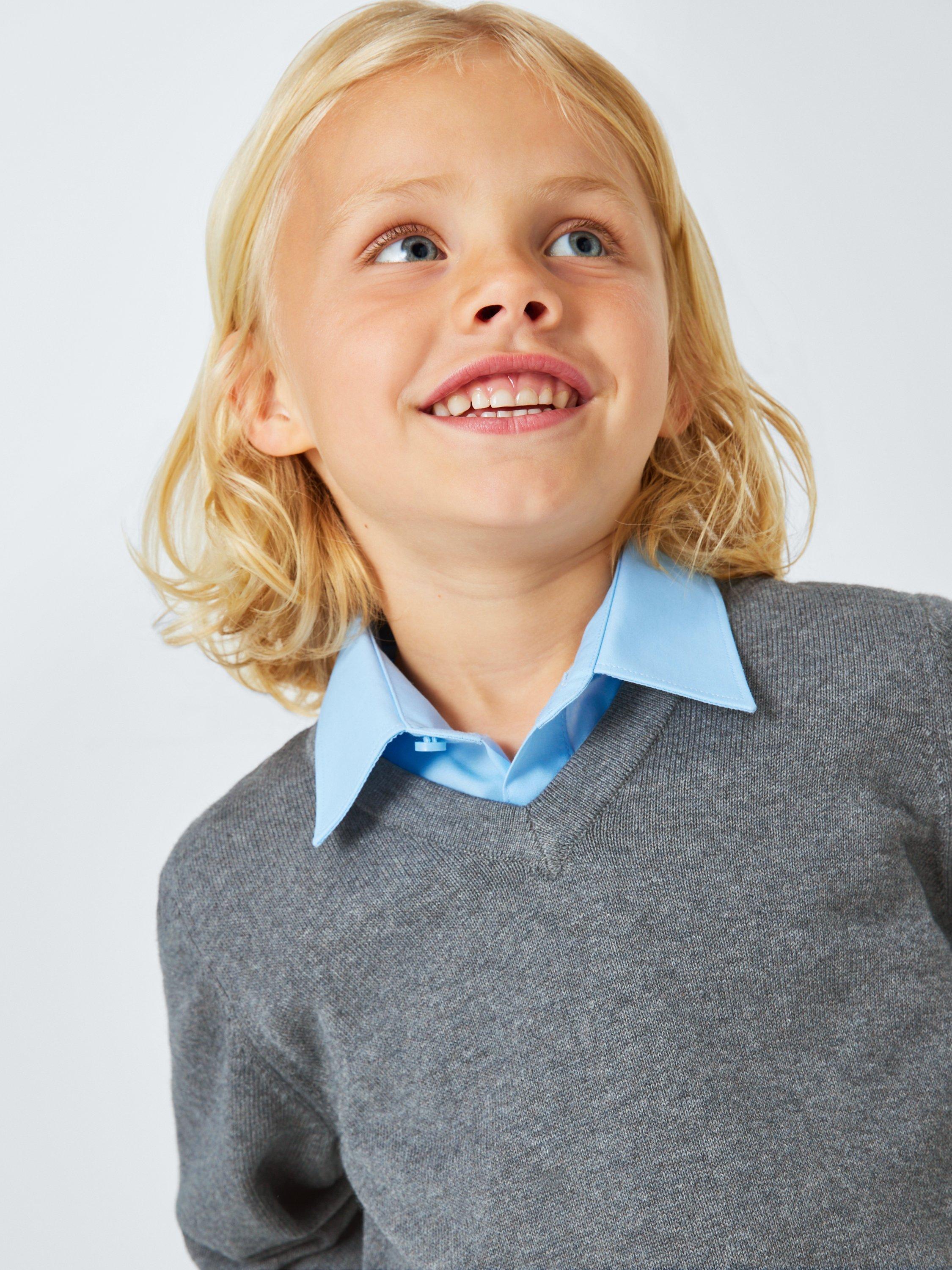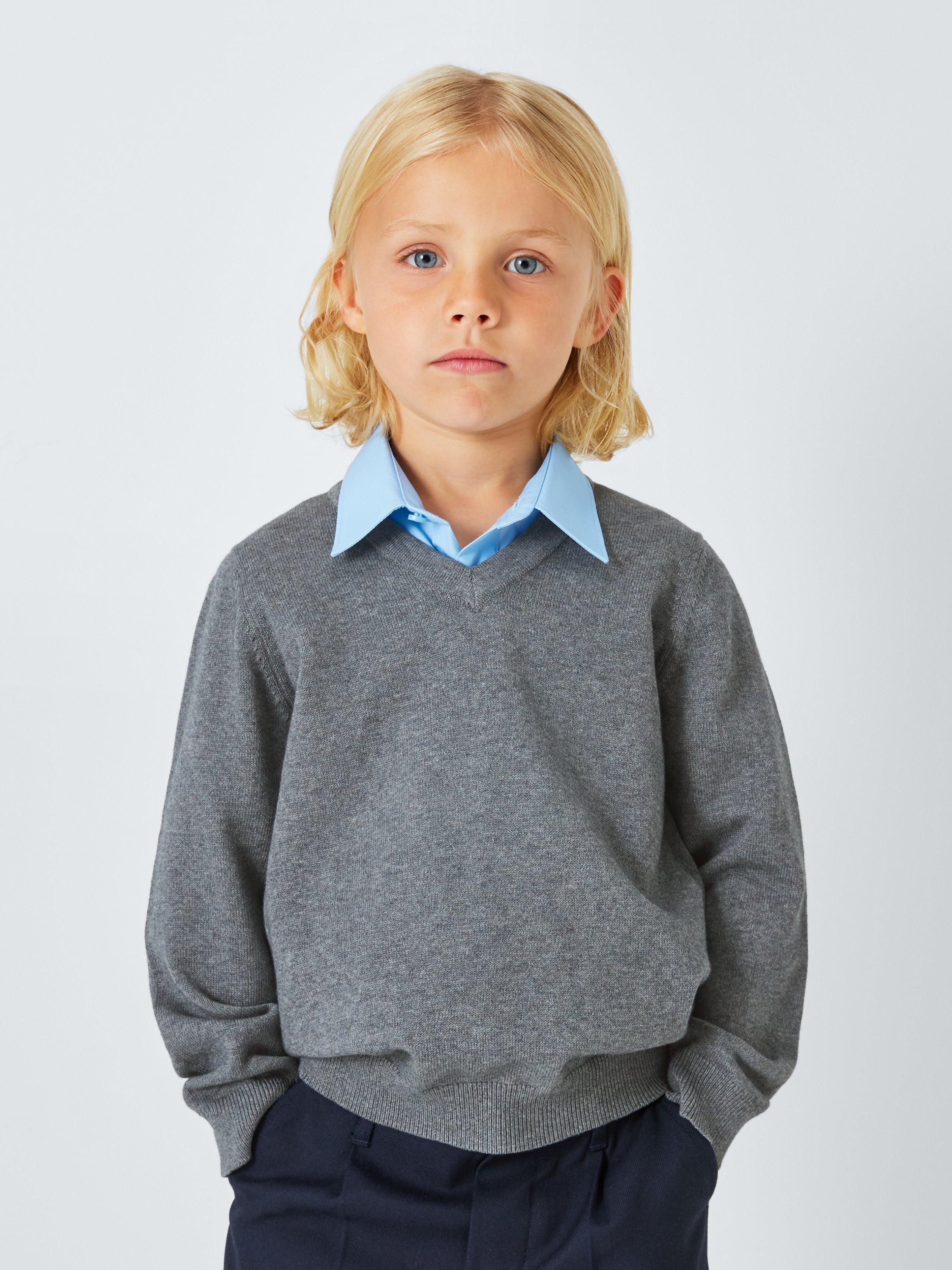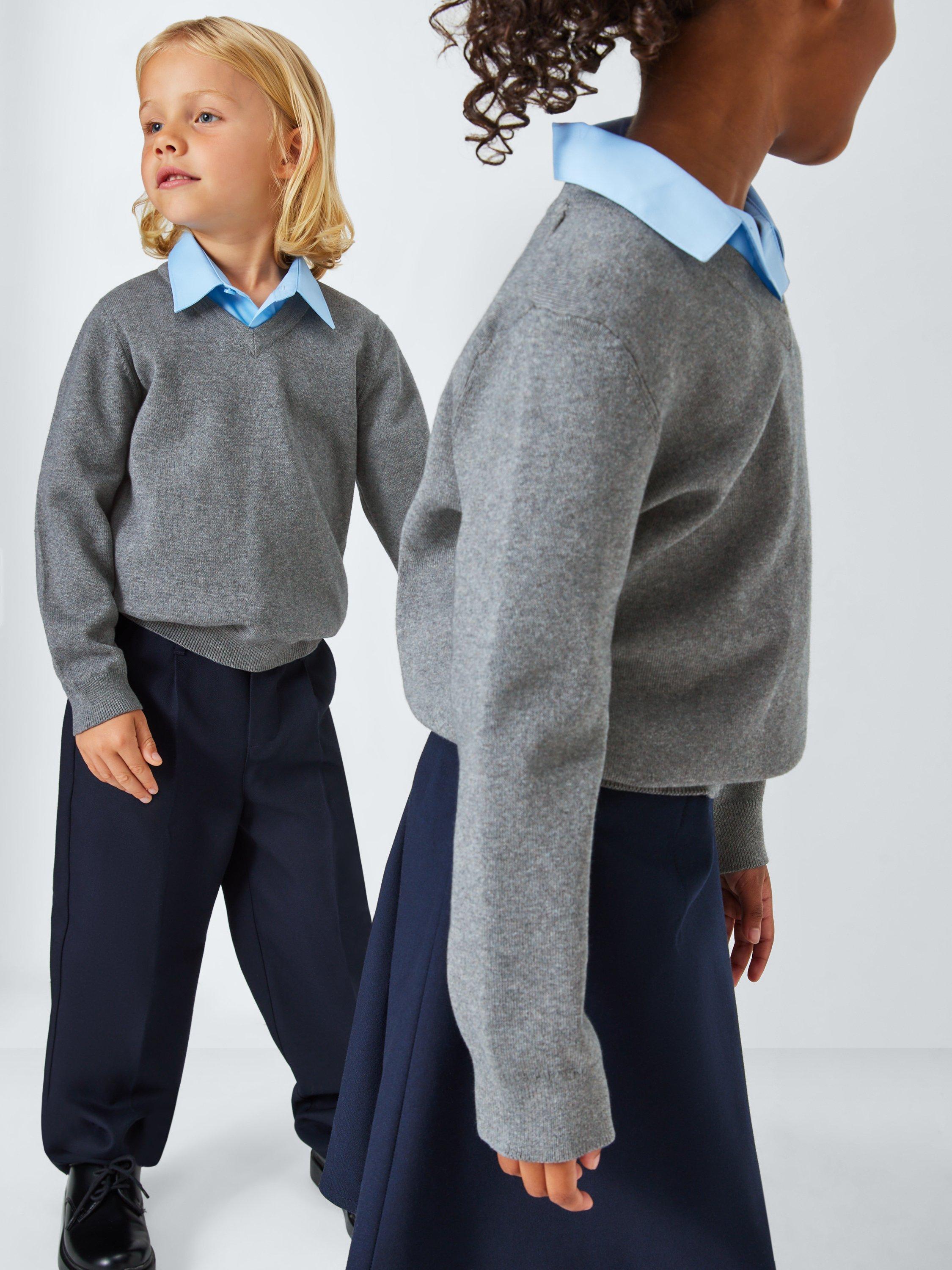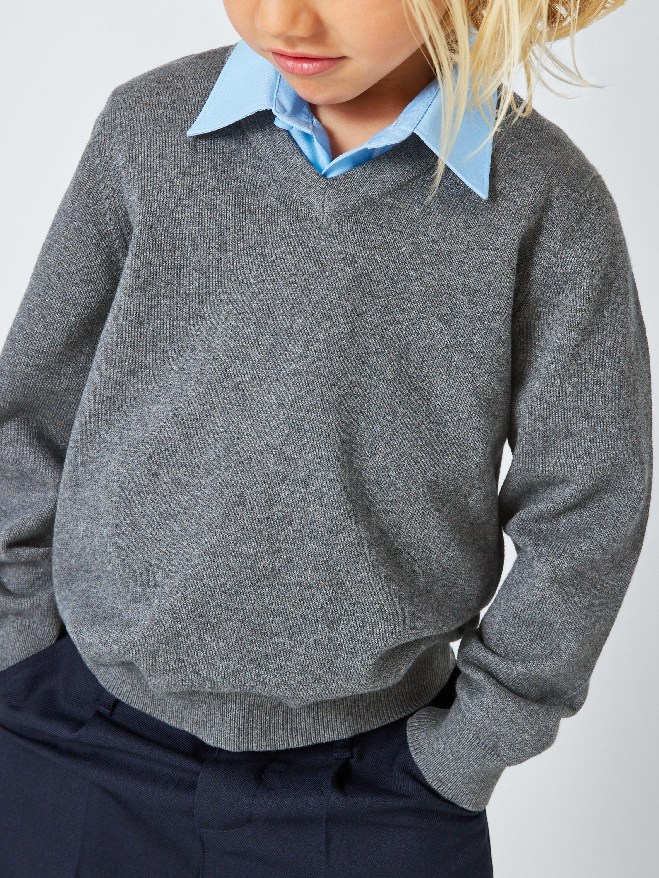 Unisex V-neck school jumper made from a cotton/nylon blend.