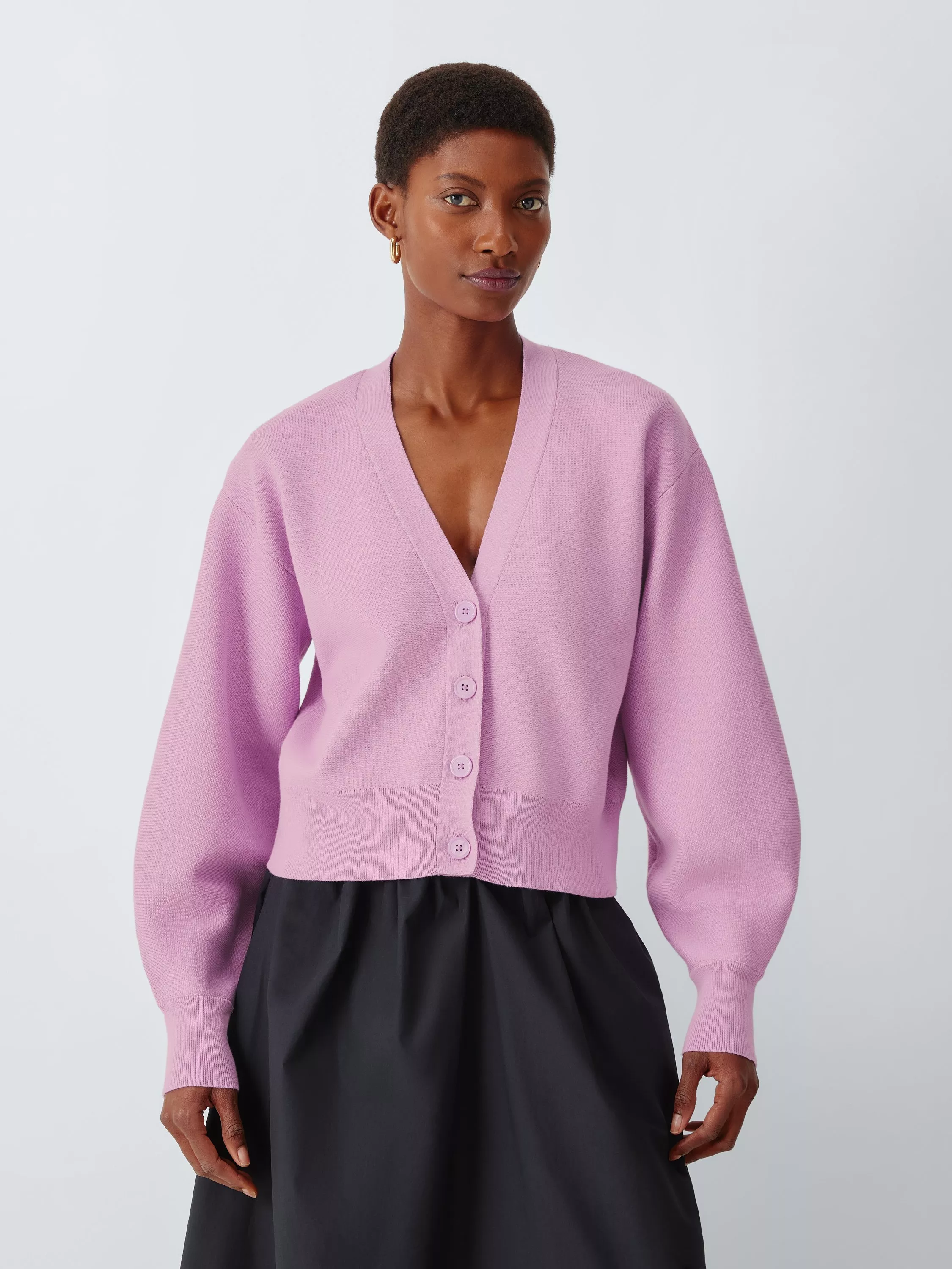 Made of a soft cotton blend, this cropped cardigan features relaxed sleeves and a V-neckline. An ideal layer, it has a button-down front and a ribbed hem and cuffs for a refined finish.