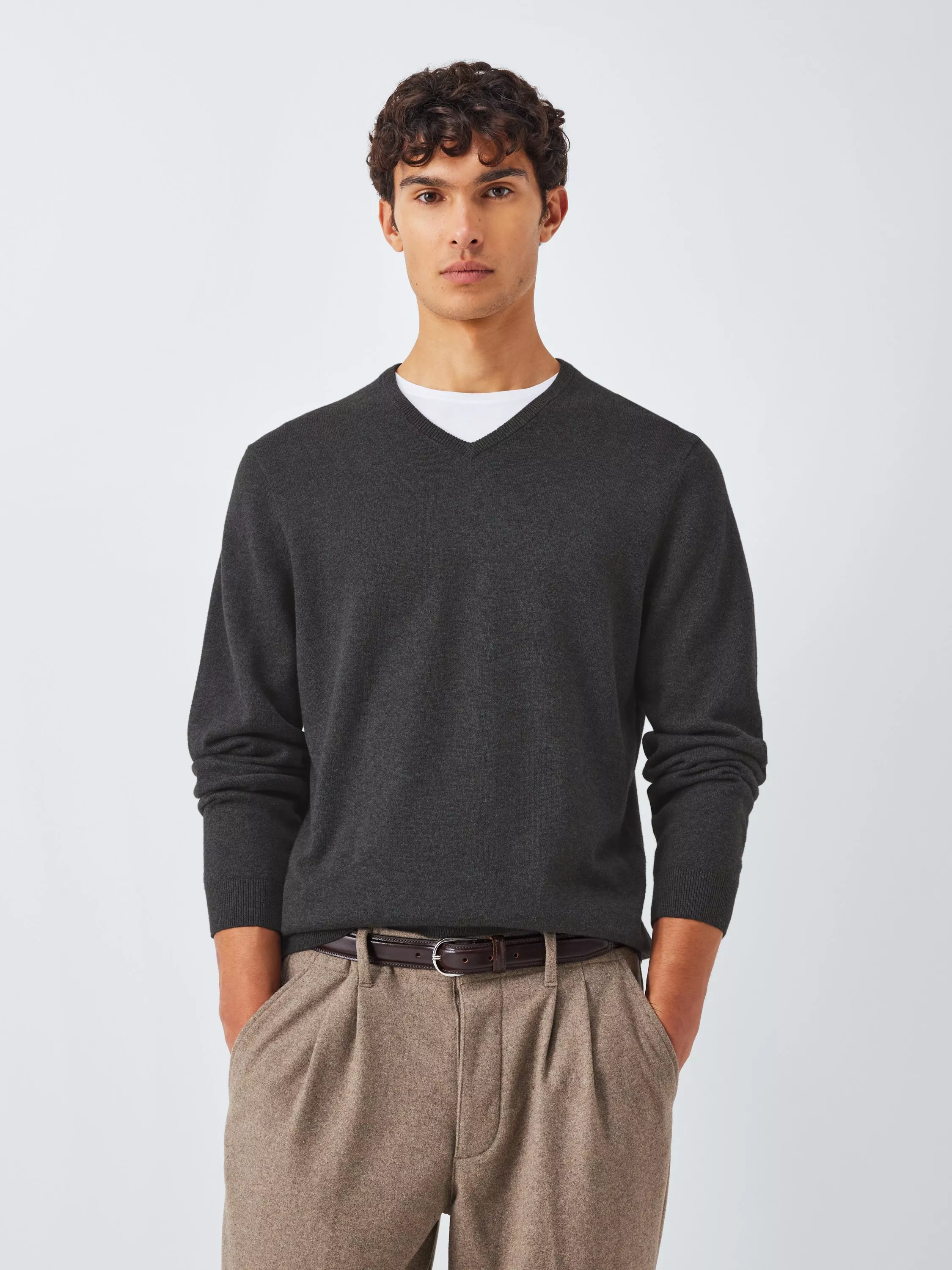 Made from pure cotton, this V-neck jumper is a versatile layering option with a timeless aesthetic.