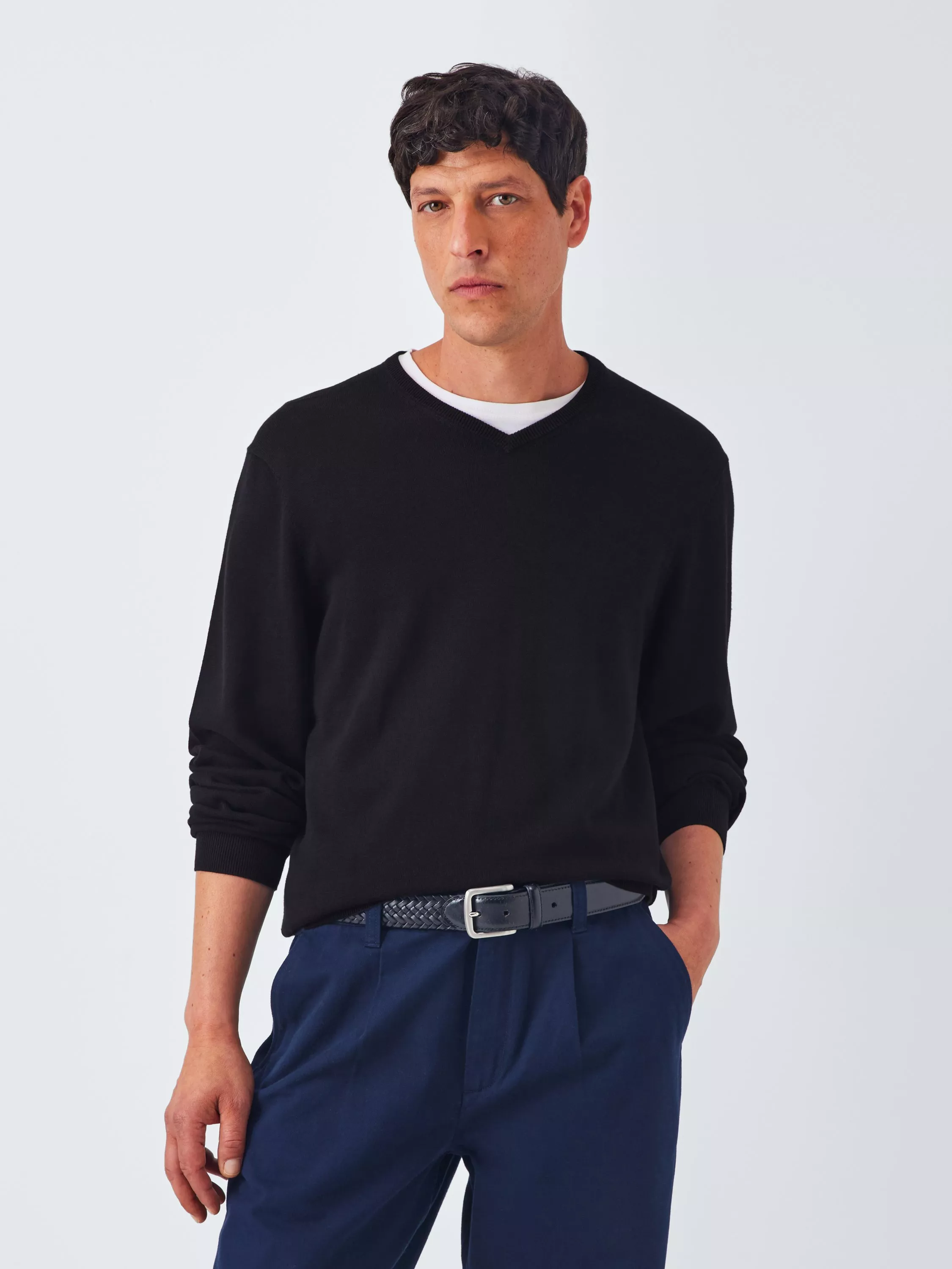 Made from pure cotton, this V-neck jumper is a versatile layering option with a timeless aesthetic.