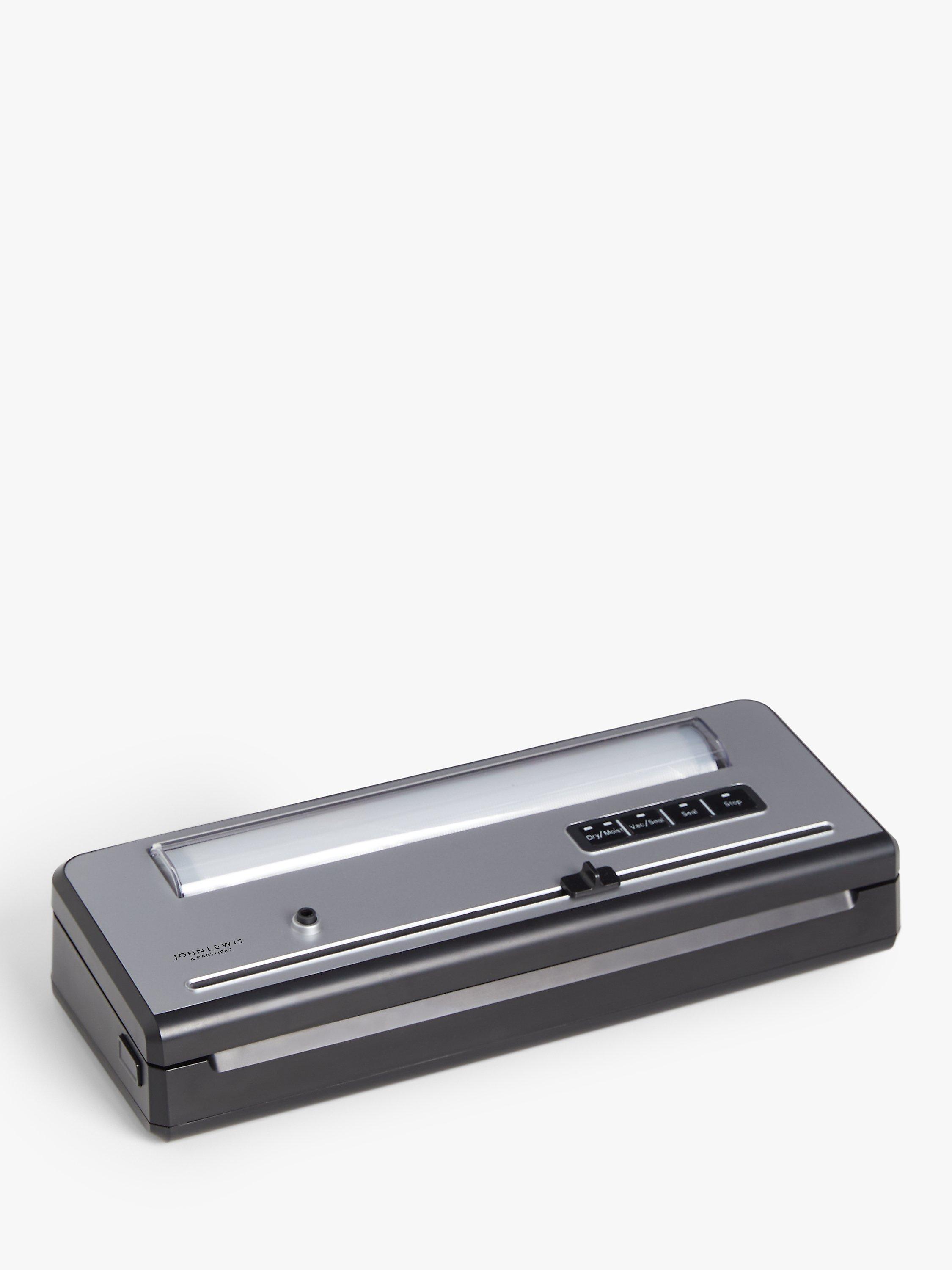 Seal, store, repeat. The easy way to keep food fresh, marinade meats, and prep for sous vide cooking. This functional, quiet John Lewis Vacuum Sealer can also be used to store liquids too. Comes with cutting function and two rolls included.