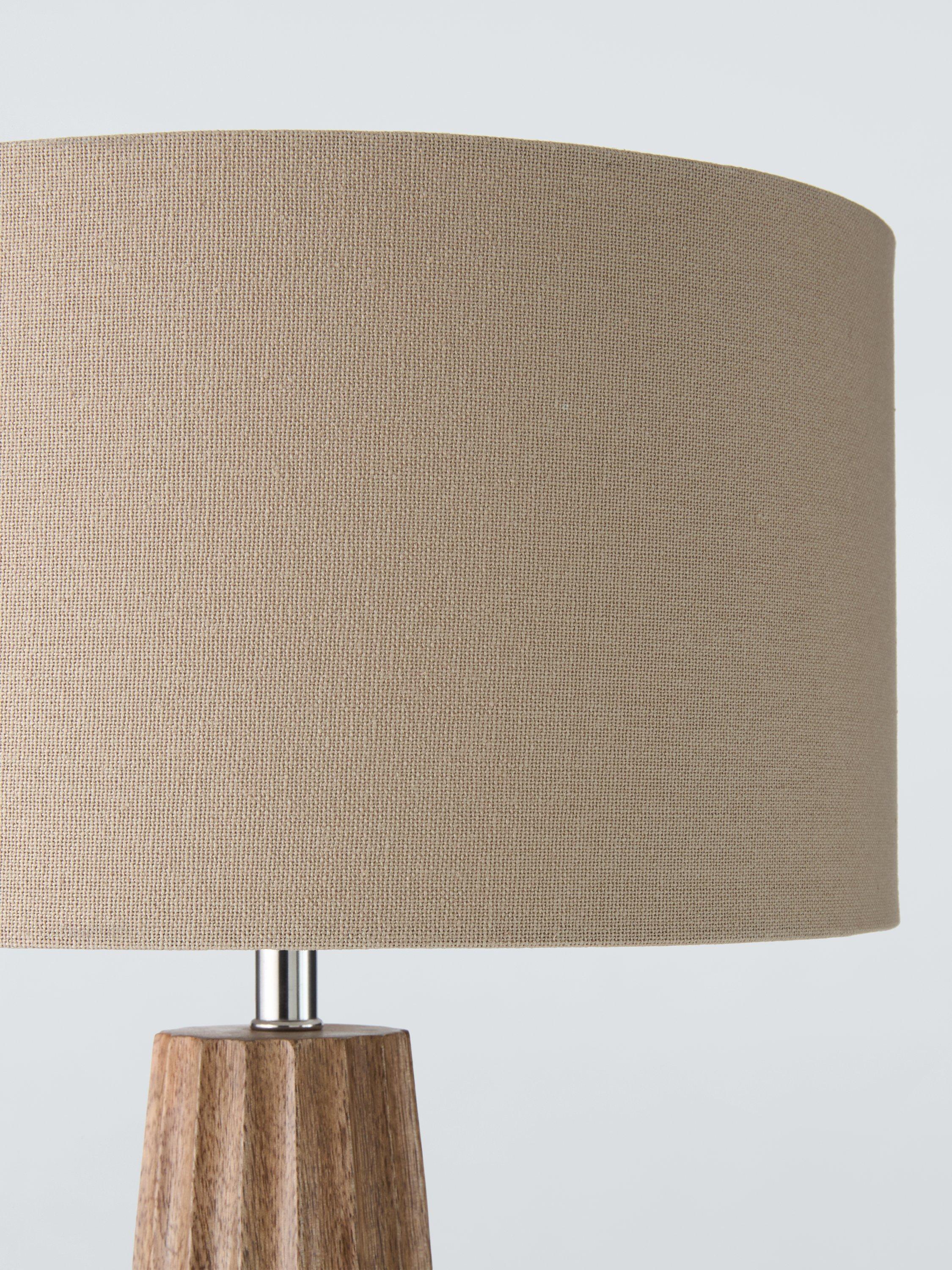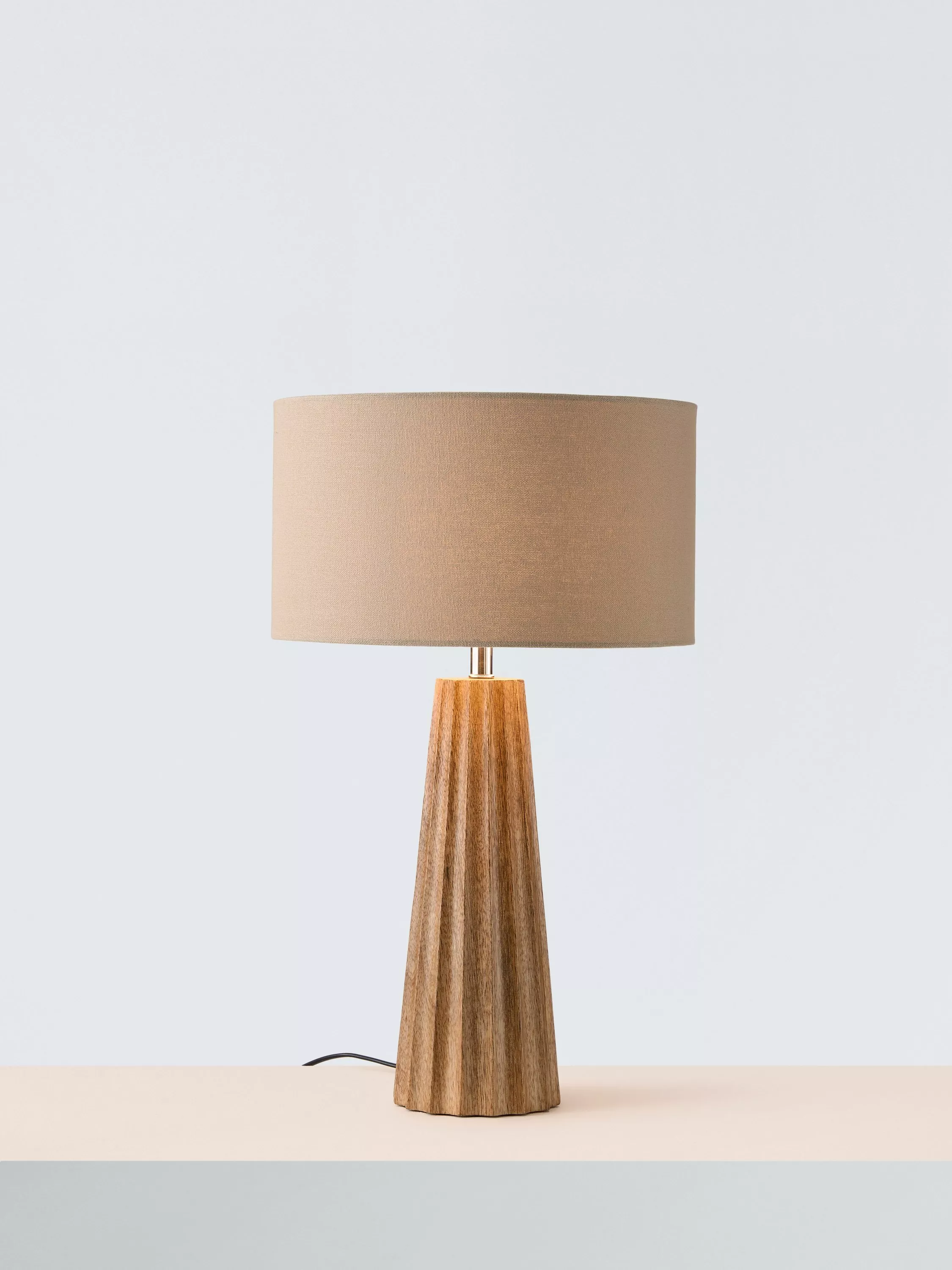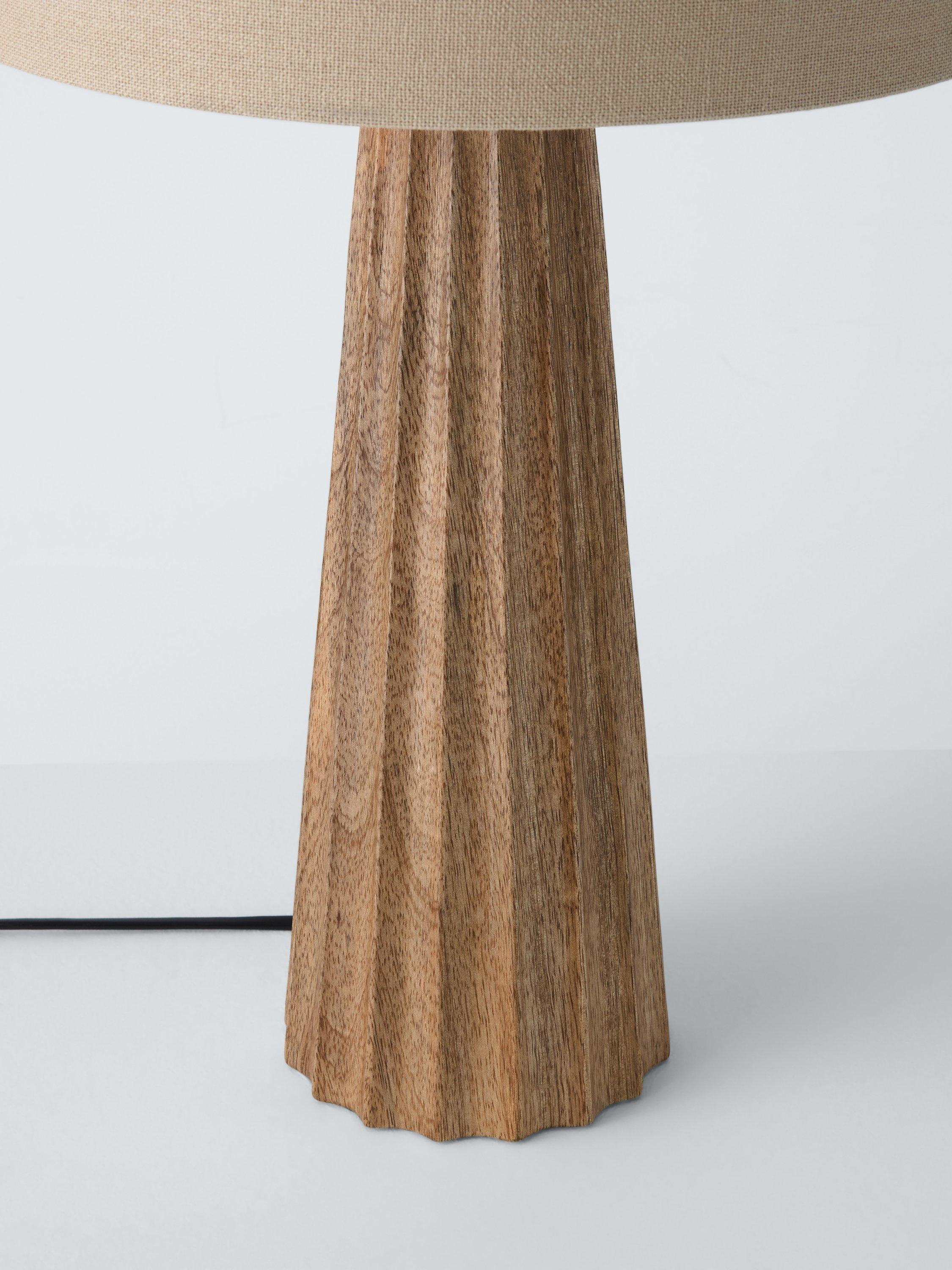 This minimalist mango wood table lamp features a textured conical design paired with a simple yet elegant handloom lampshade, creating a soft contrast. The Vallei table lamp makes use of natural wood grain and has a ridged carving design to add texture. Made in India, this light and airy piece will suit a range of interior styles from Scandi to Coastal.