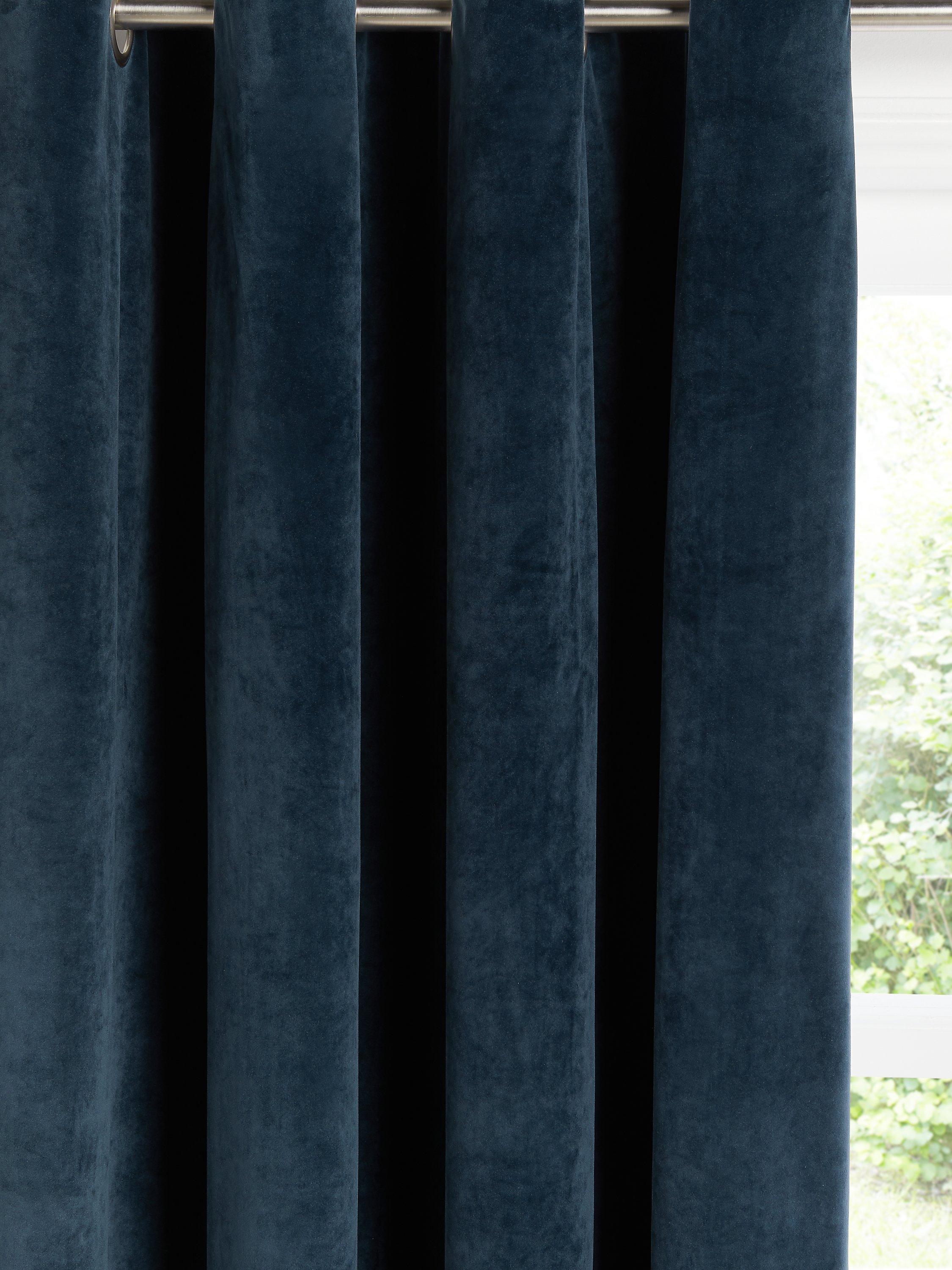 Plain-coloured eyelet curtains made from lustrous polyester velvet. The lining adds the perfect finish, improving the drape and enhancing the vibrancy of the curtain.