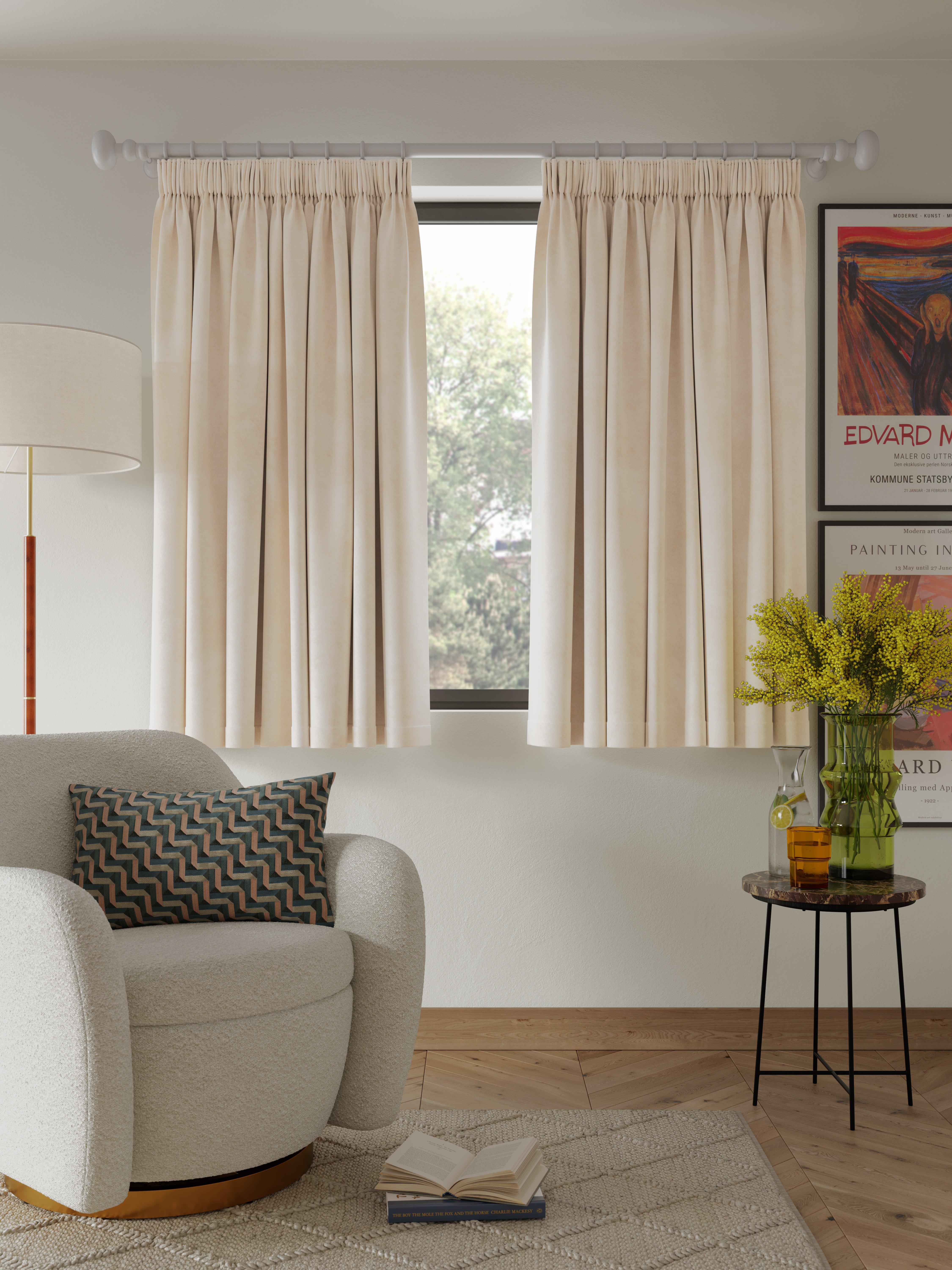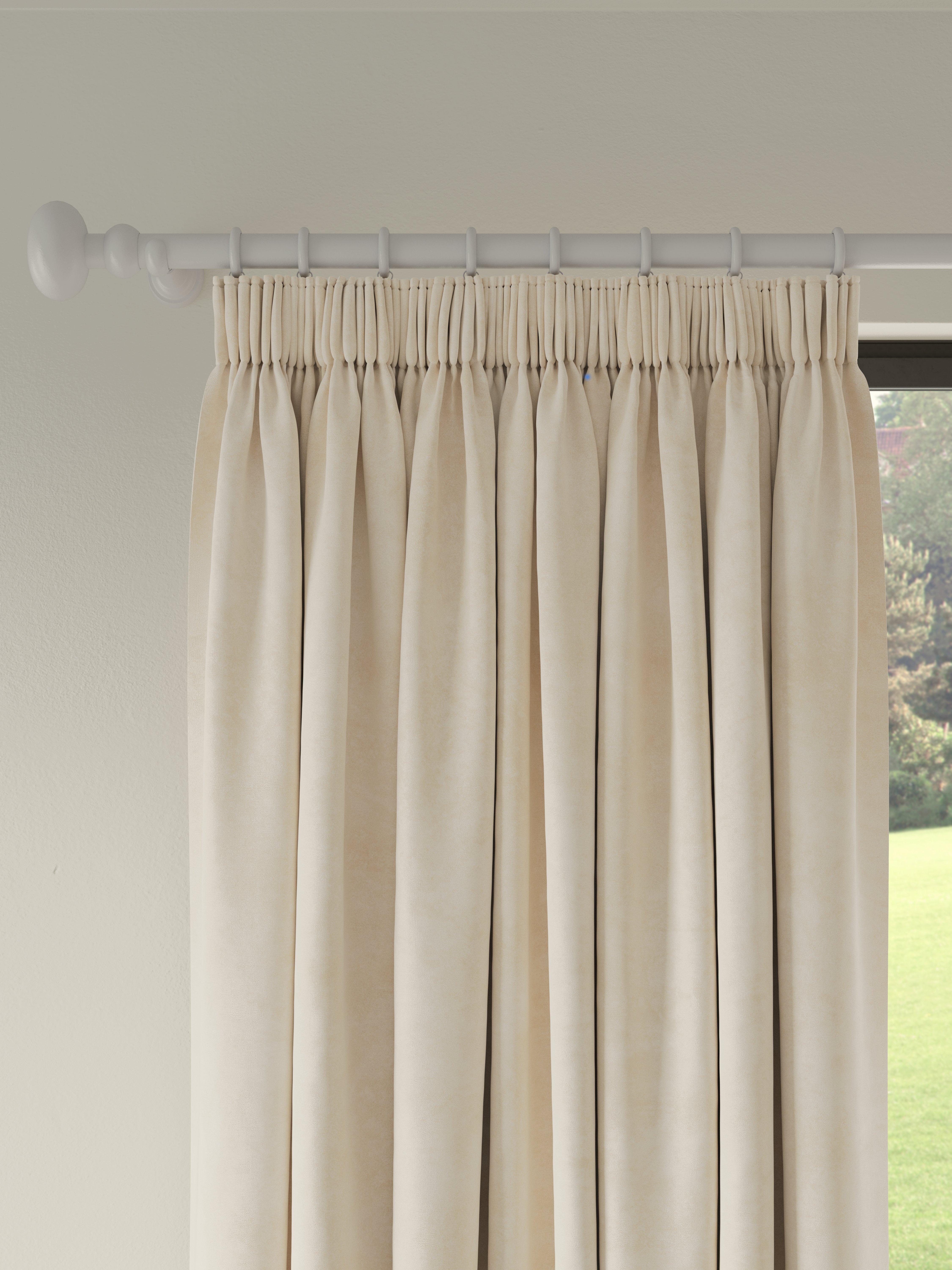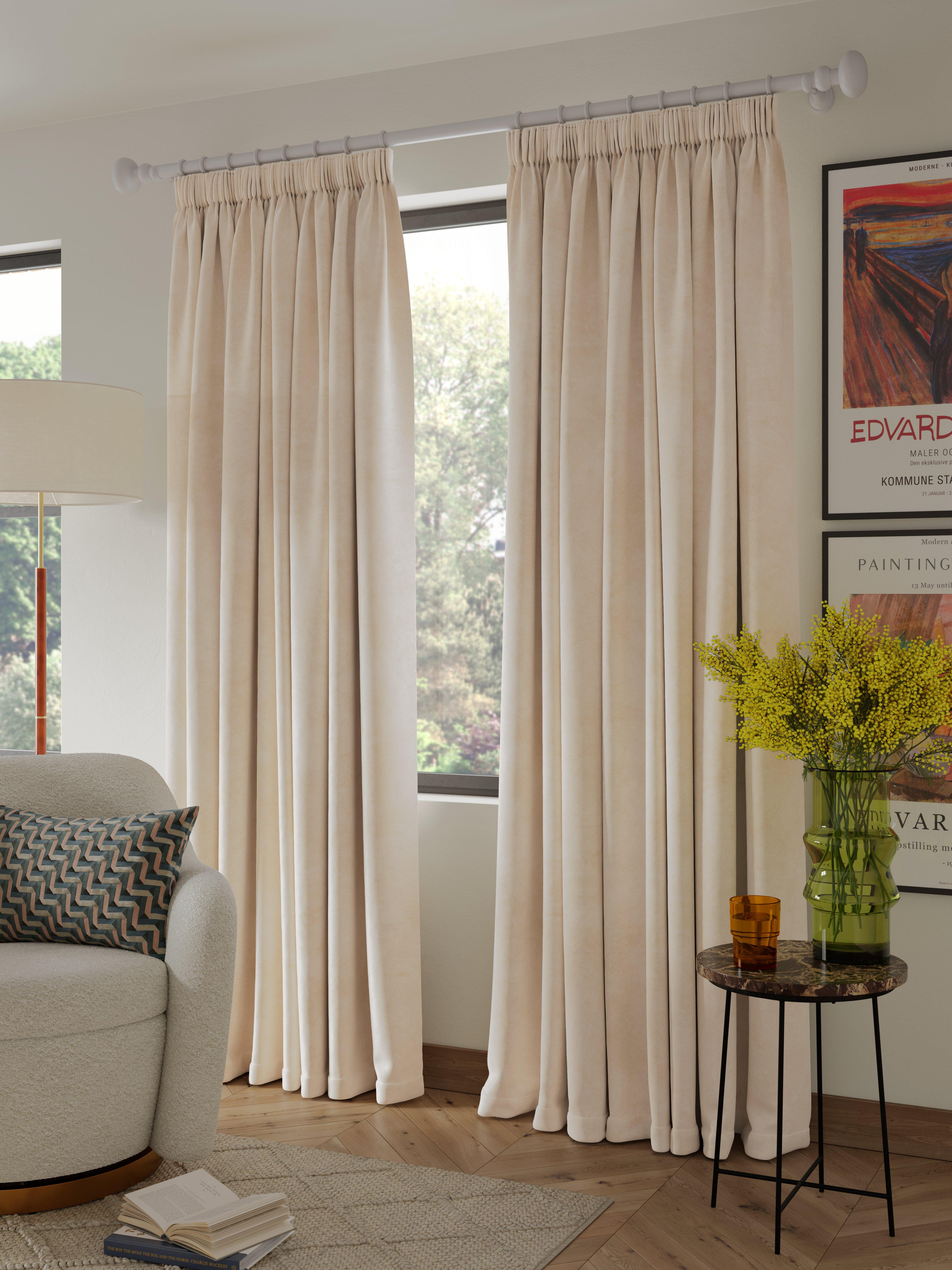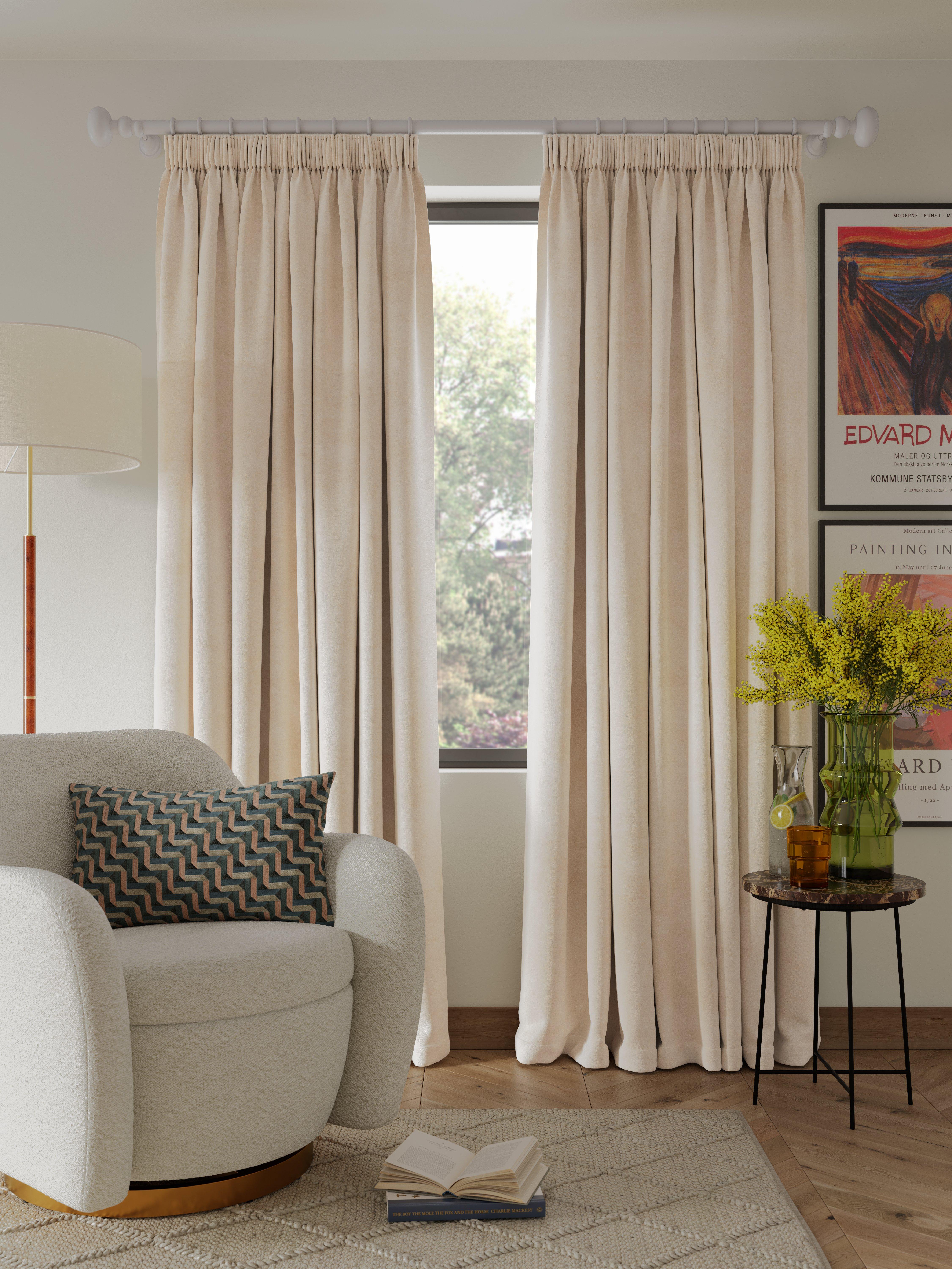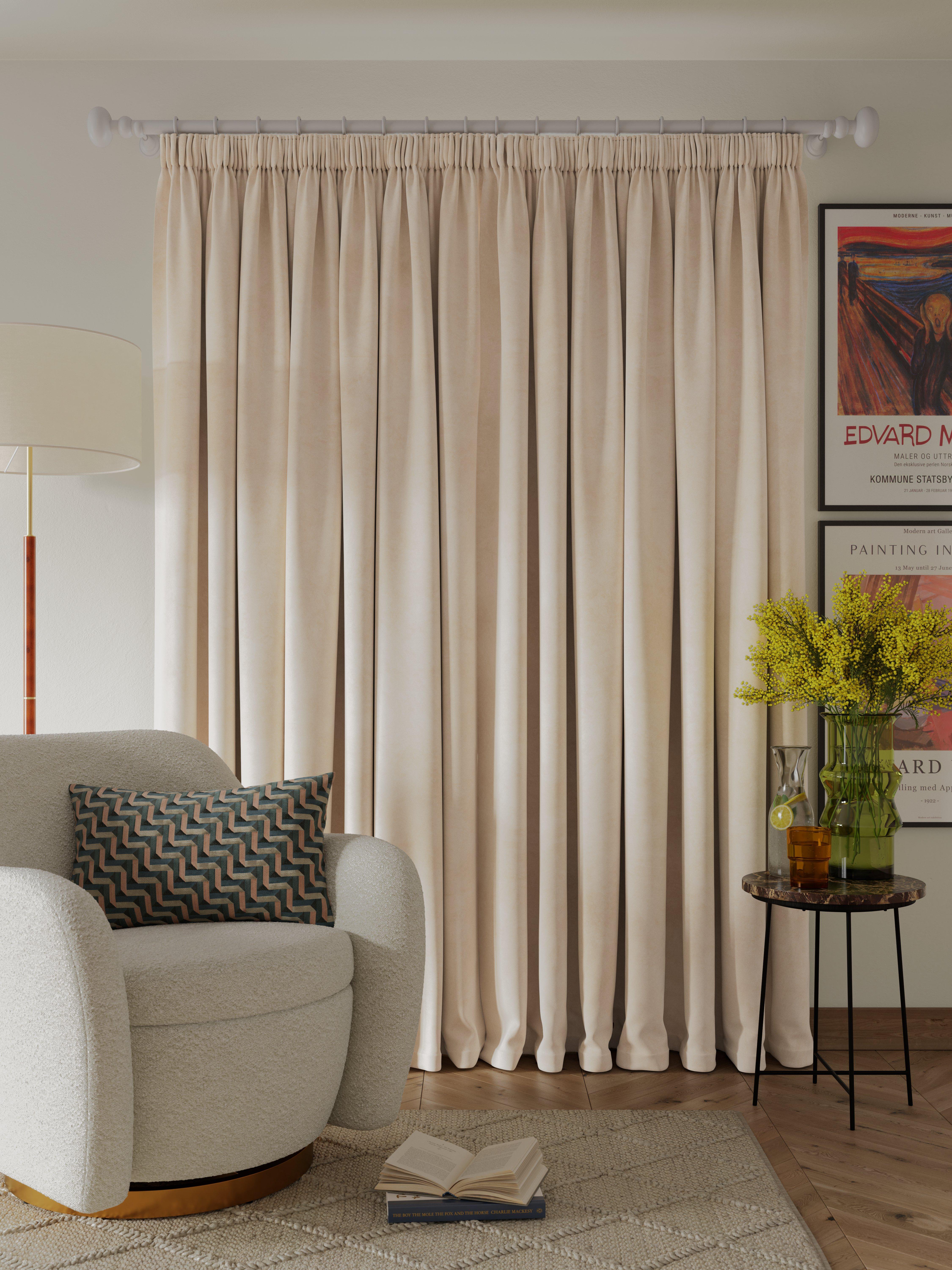Plain-coloured pencil pleat curtains made from lustrous polyester velvet. The lining adds the perfect finish, improving the drape and enhancing the vibrancy of the curtain.