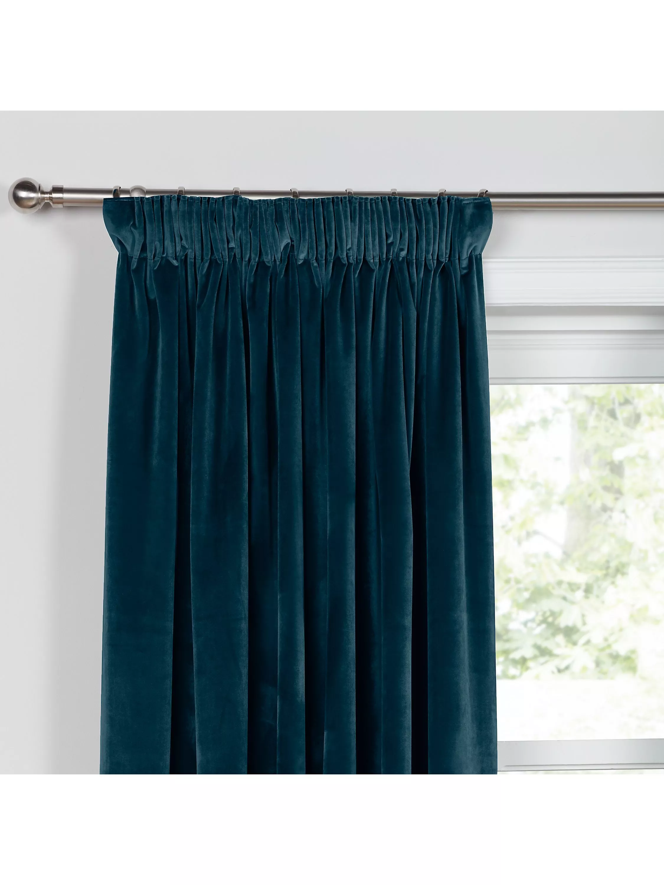 Plain-coloured pencil pleat curtains made from lustrous polyester velvet. The lining adds the perfect finish, improving the drape and enhancing the vibrancy of the curtain.
