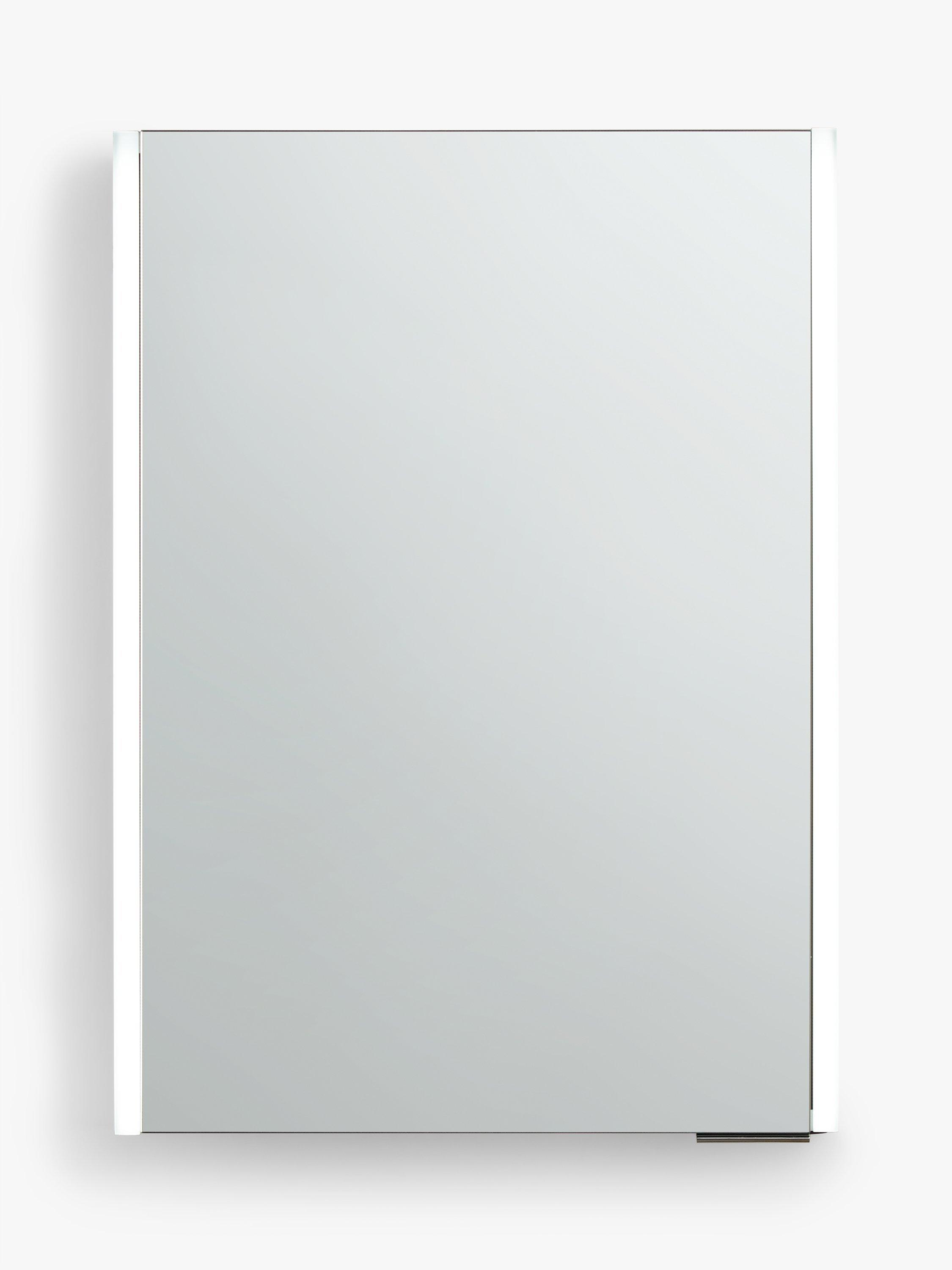 Our Vertical bathroom cabinet has a single double-sided mirror door with stylish LED illumination running vertically along each side.