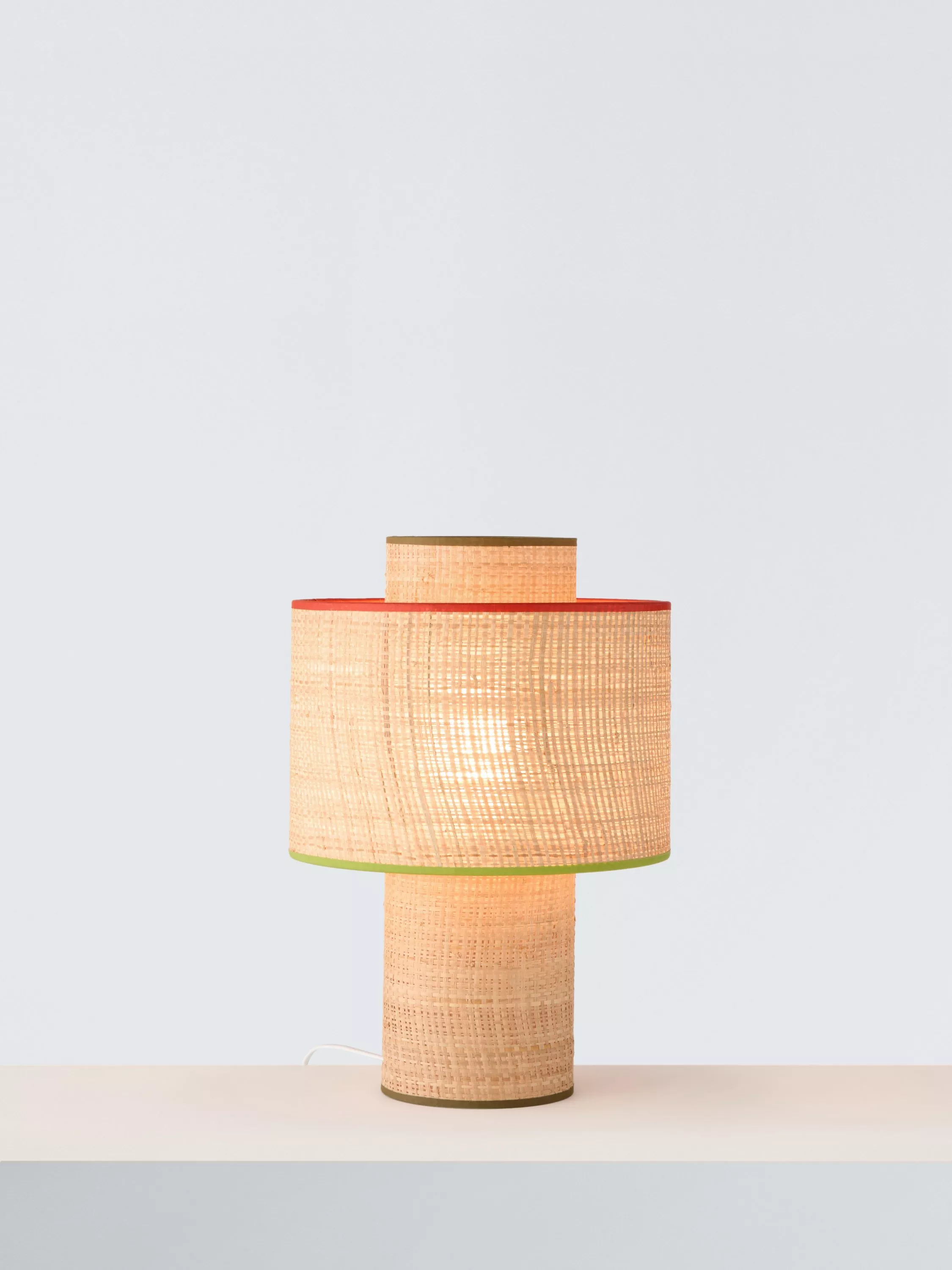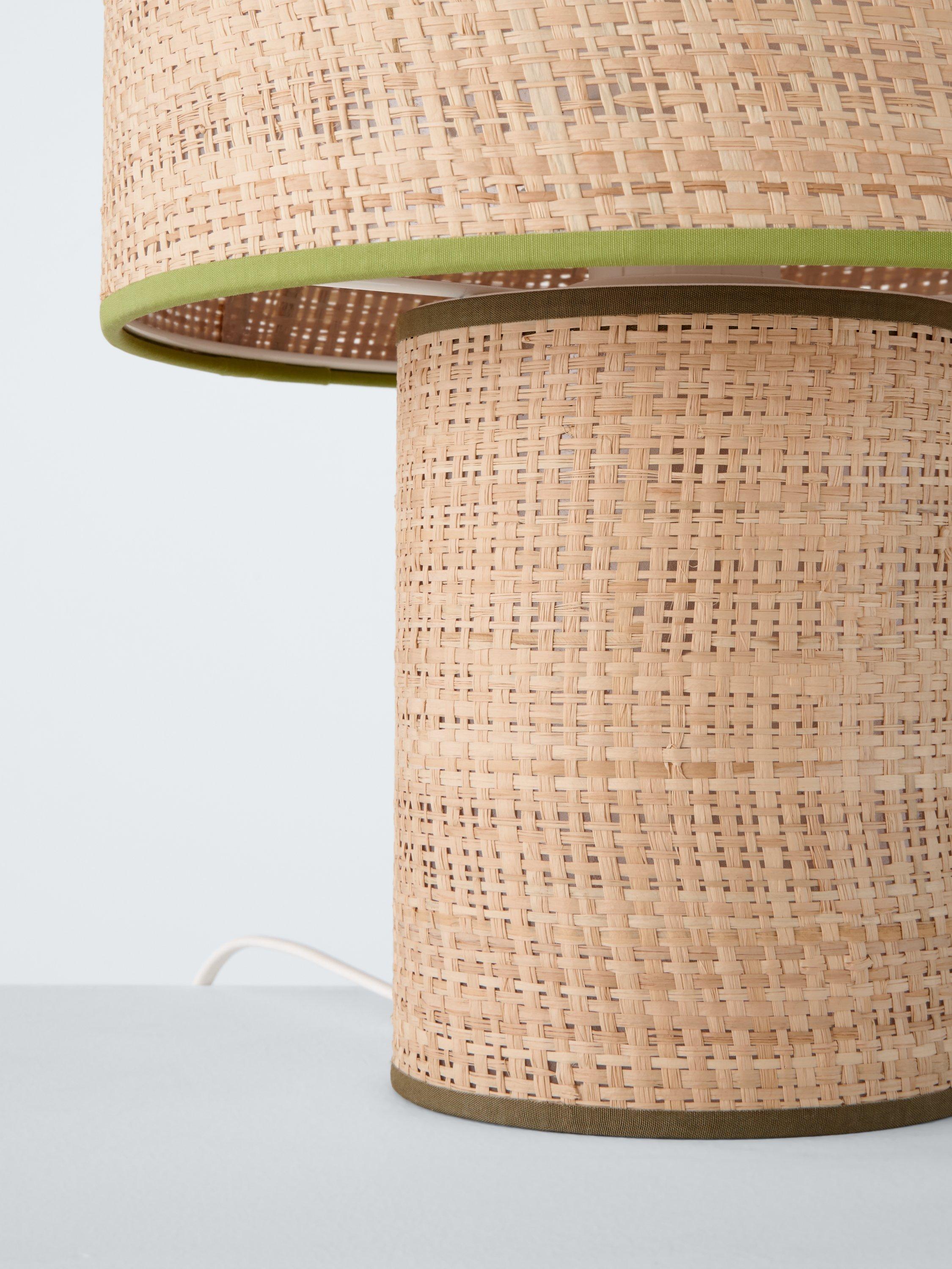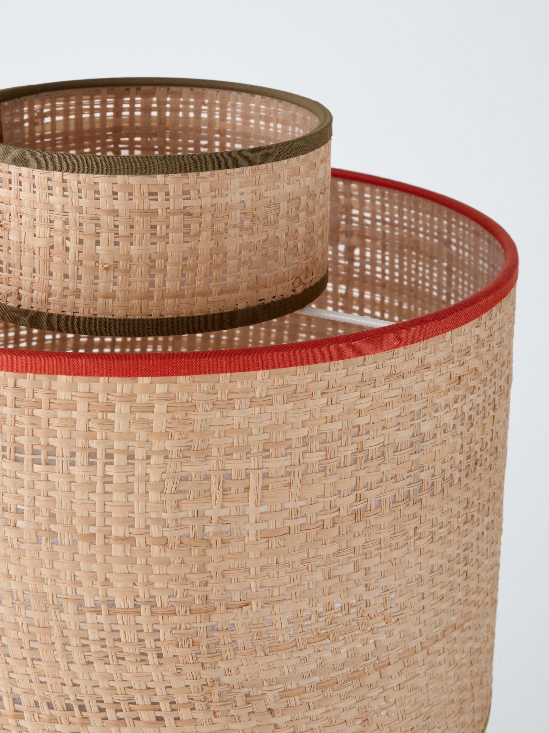 Our Vicente table lamp creates a warm atmosphere in small areas. The natural raffia fabric on the base and shade, with contrasting trim, suits any decor and adds texture. Combine with our Vicente wall lighting for a coordinating retro look.