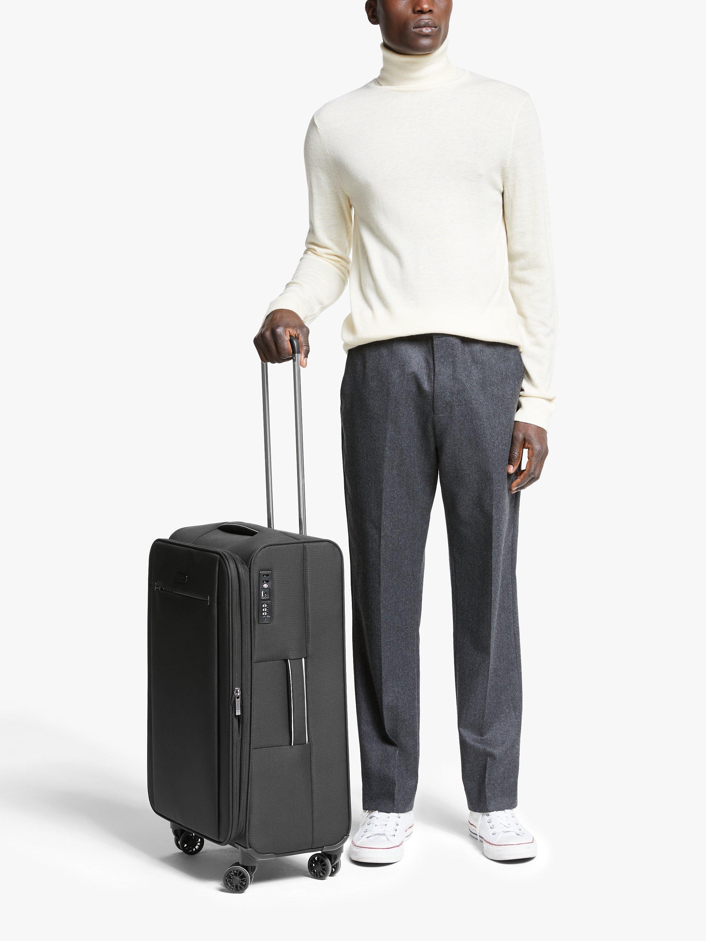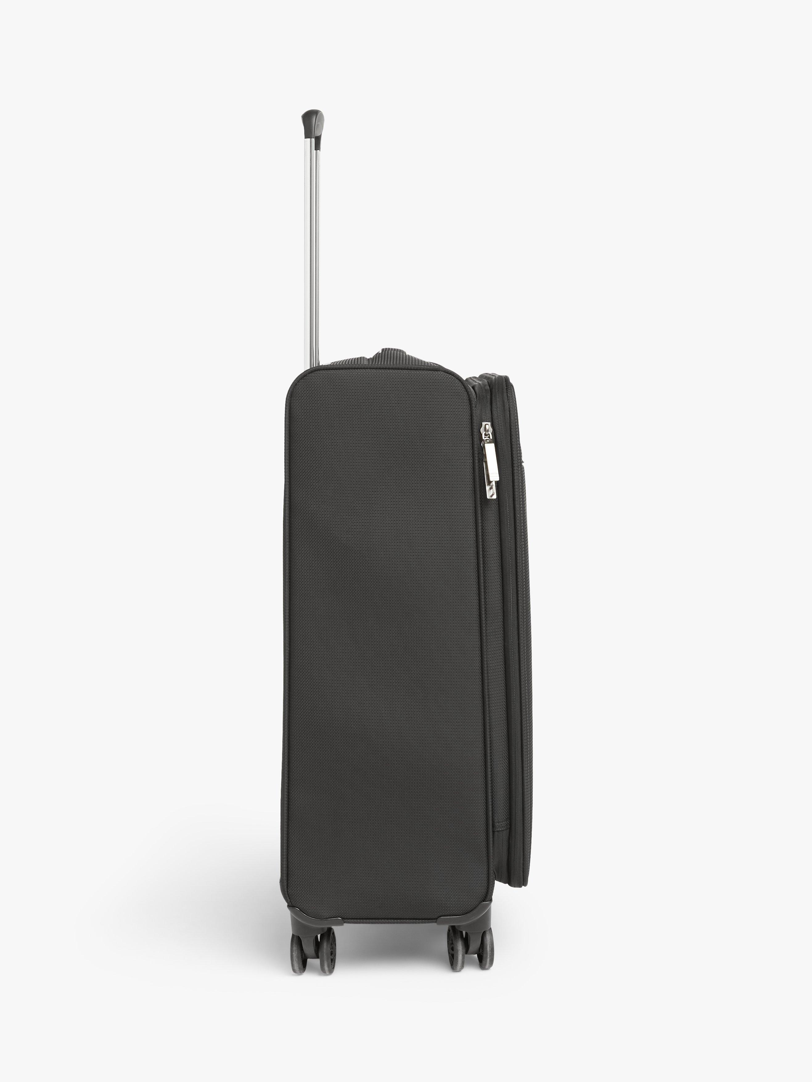Carefully designed with a soft-shell outer, the contrast zip and stitching details making it easier to spot on the luggage carousel. Plus, weighing just 2.3kg, you won't find yourself picking up any extra weight along the way either. The practical front zipped pocket happily fits a 15" laptop or A4 notepad, and the zip comes lockable to give you peace of mind when separated.