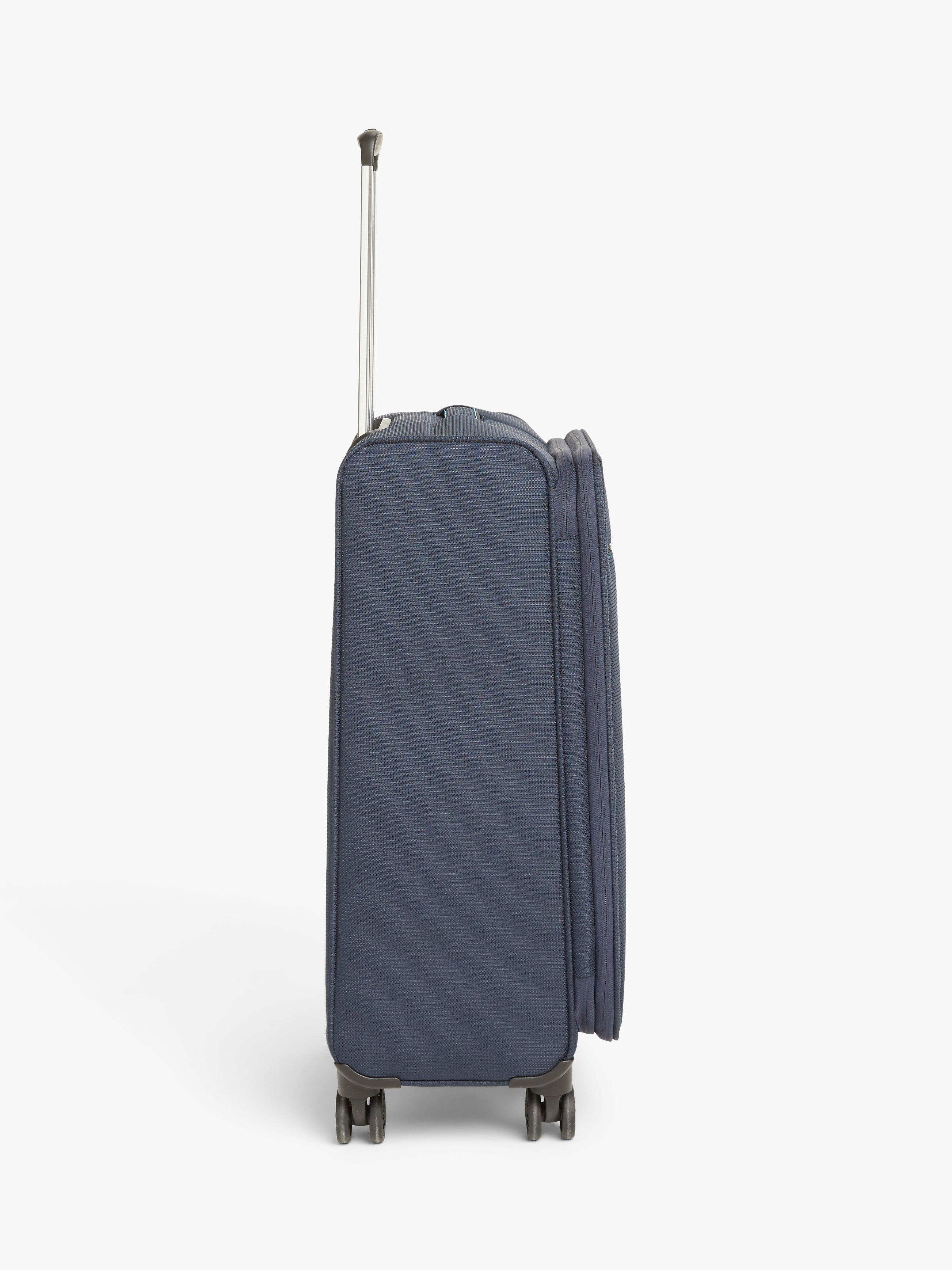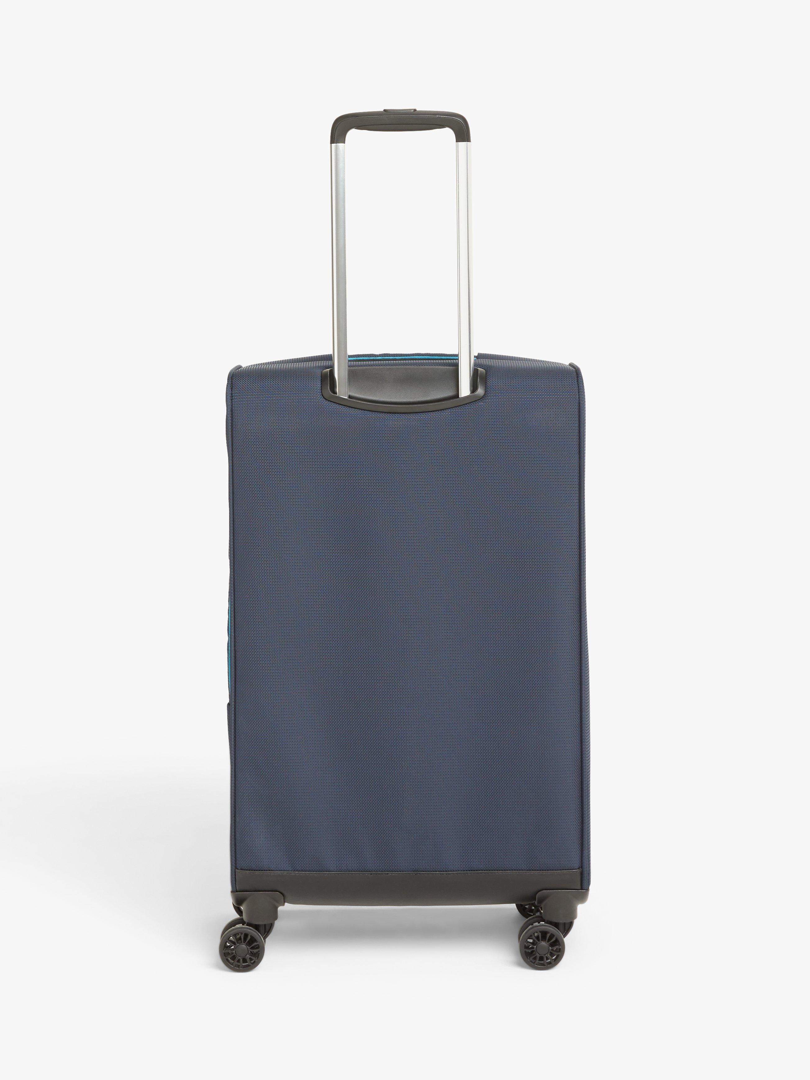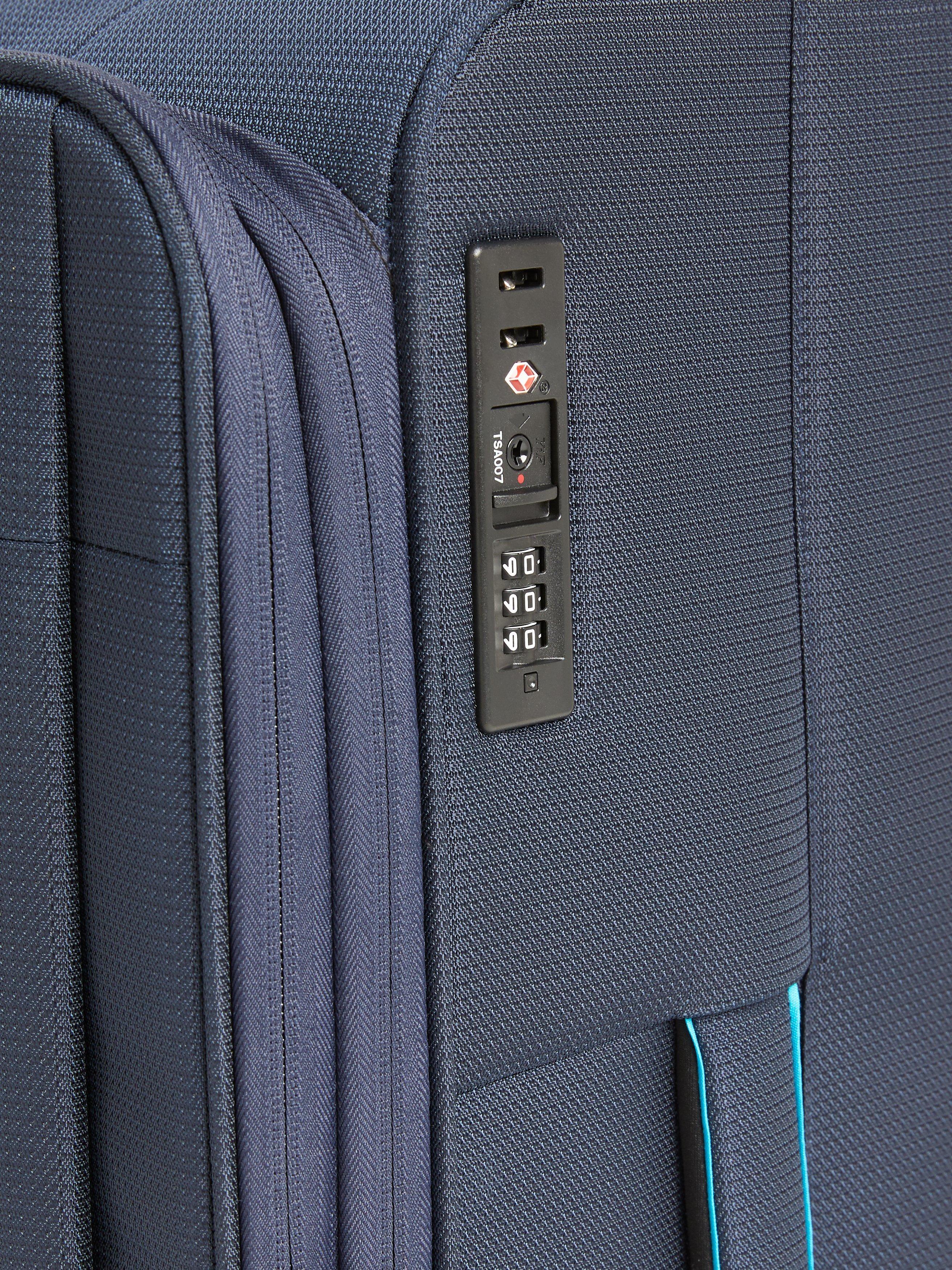 Carefully designed with a soft-shell outer, the contrast zip and stitching details making it easier to spot on the luggage carousel. Plus, weighing just 2.3kg, you won't find yourself picking up any extra weight along the way either. The practical front zipped pocket happily fits a 15" laptop or A4 notepad, and the zip comes lockable to give you peace of mind when separated.