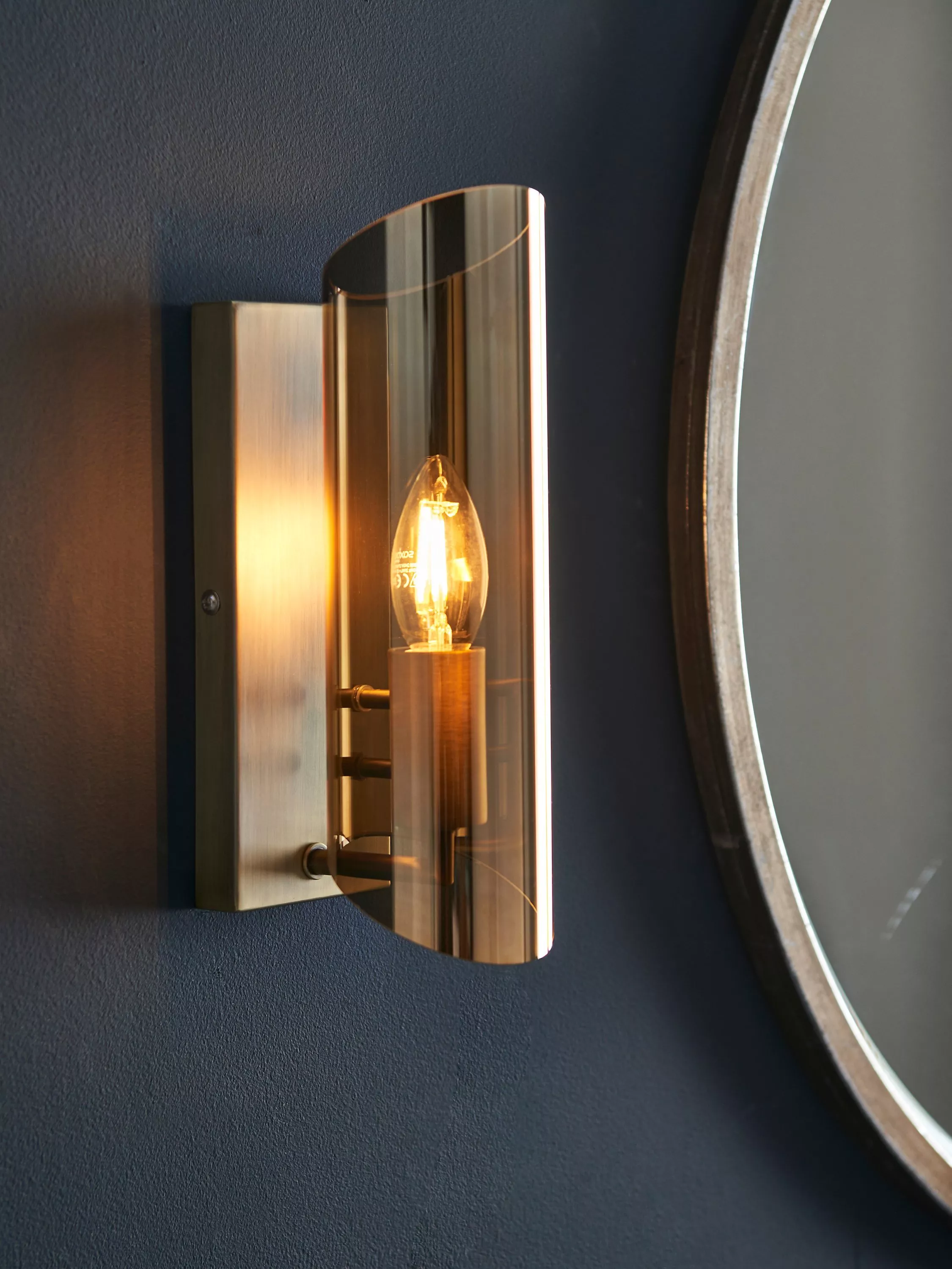 Add a warm glow to your home with this beautiful and stylish Mid-century wall light. Finished in matt antique brass with a gold lustre glass shade it effortlessly adds a luxe look to your interior. A matching ceiling pendant is also available to complete a co-ordinated look.