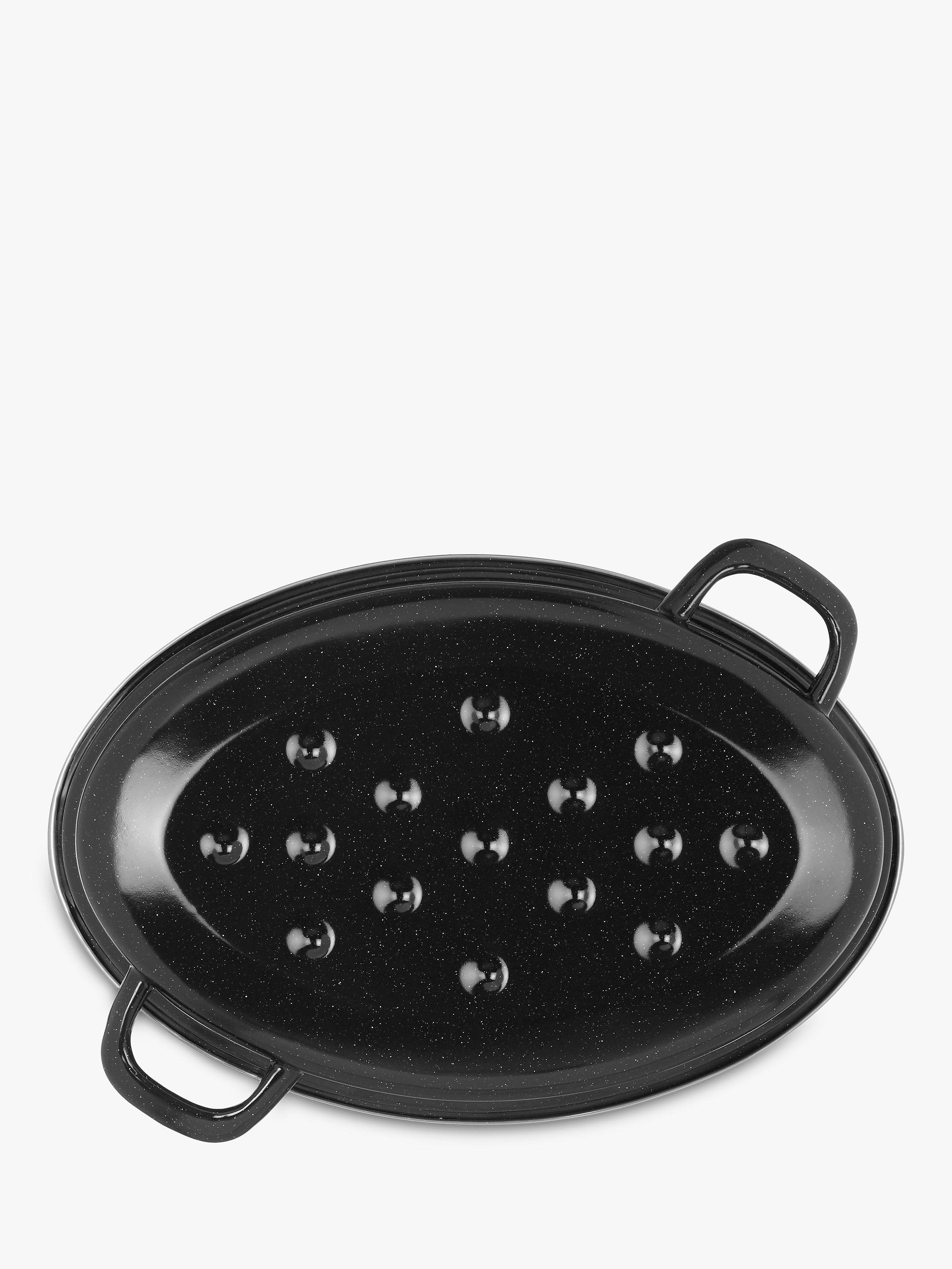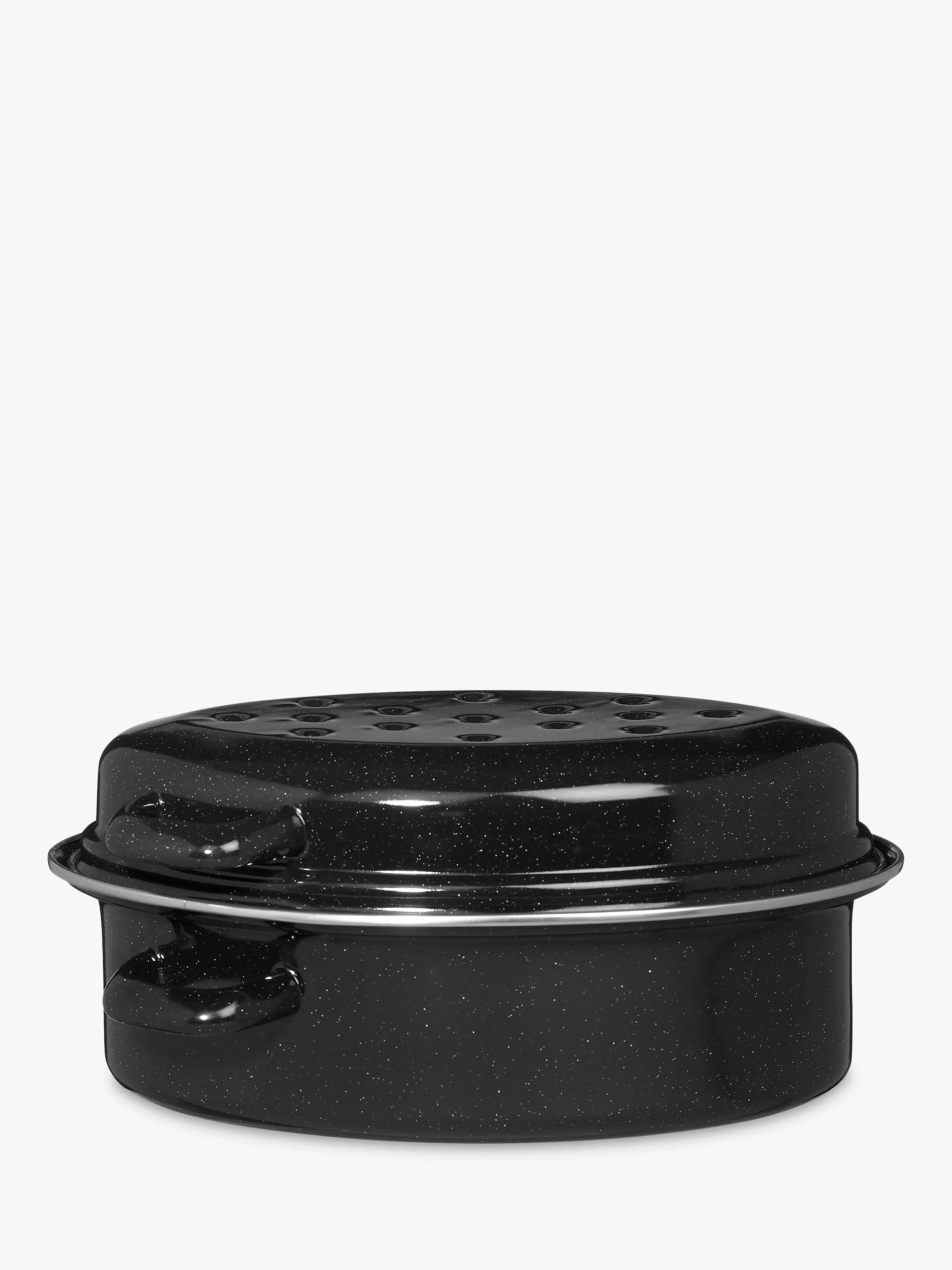 Our vitreous enamel oval roaster has a dimpled lid to aid self-basting. A great way to roast meat, poultry and vegetables, this piece is an essential for every kitchen.
