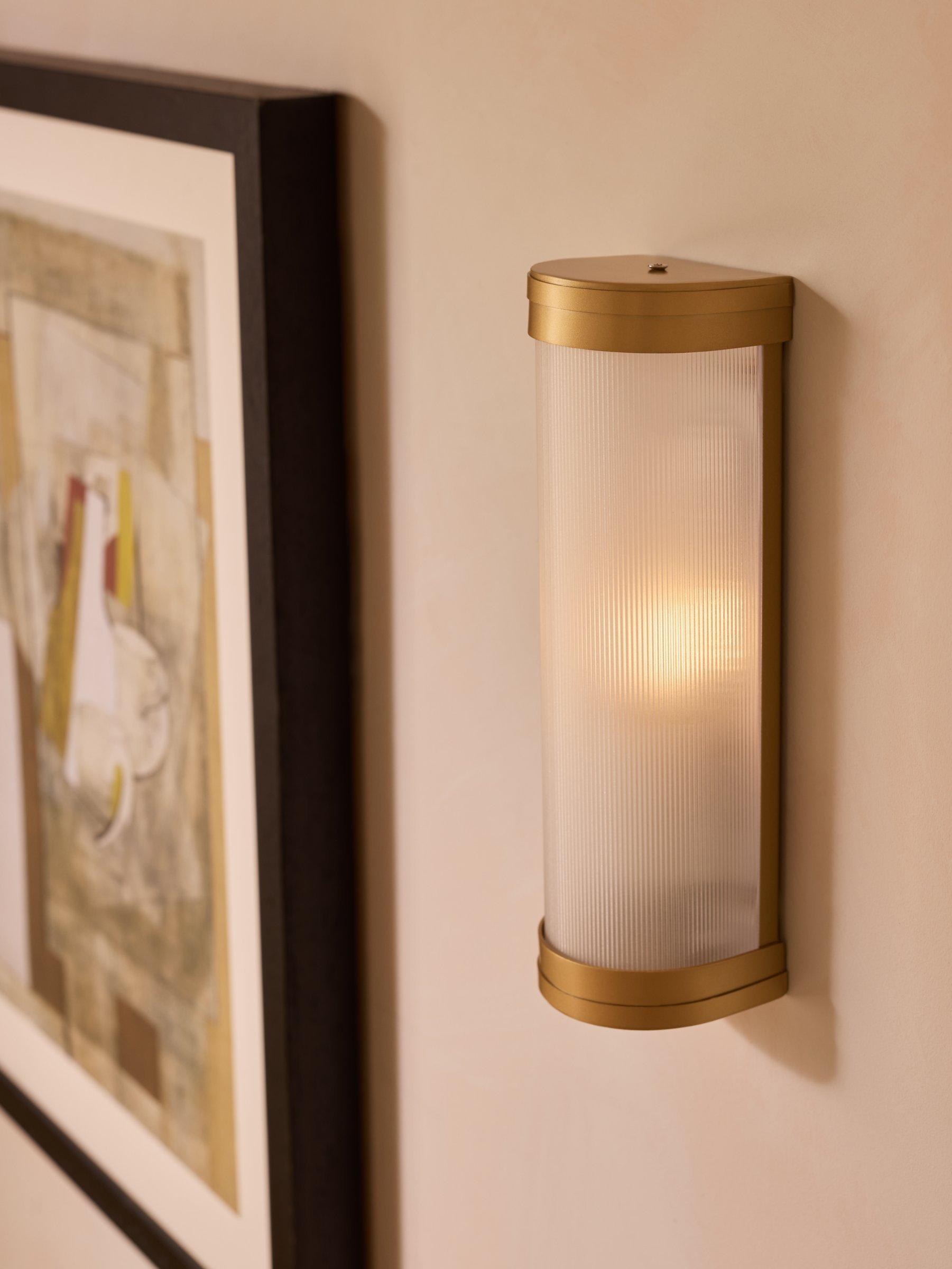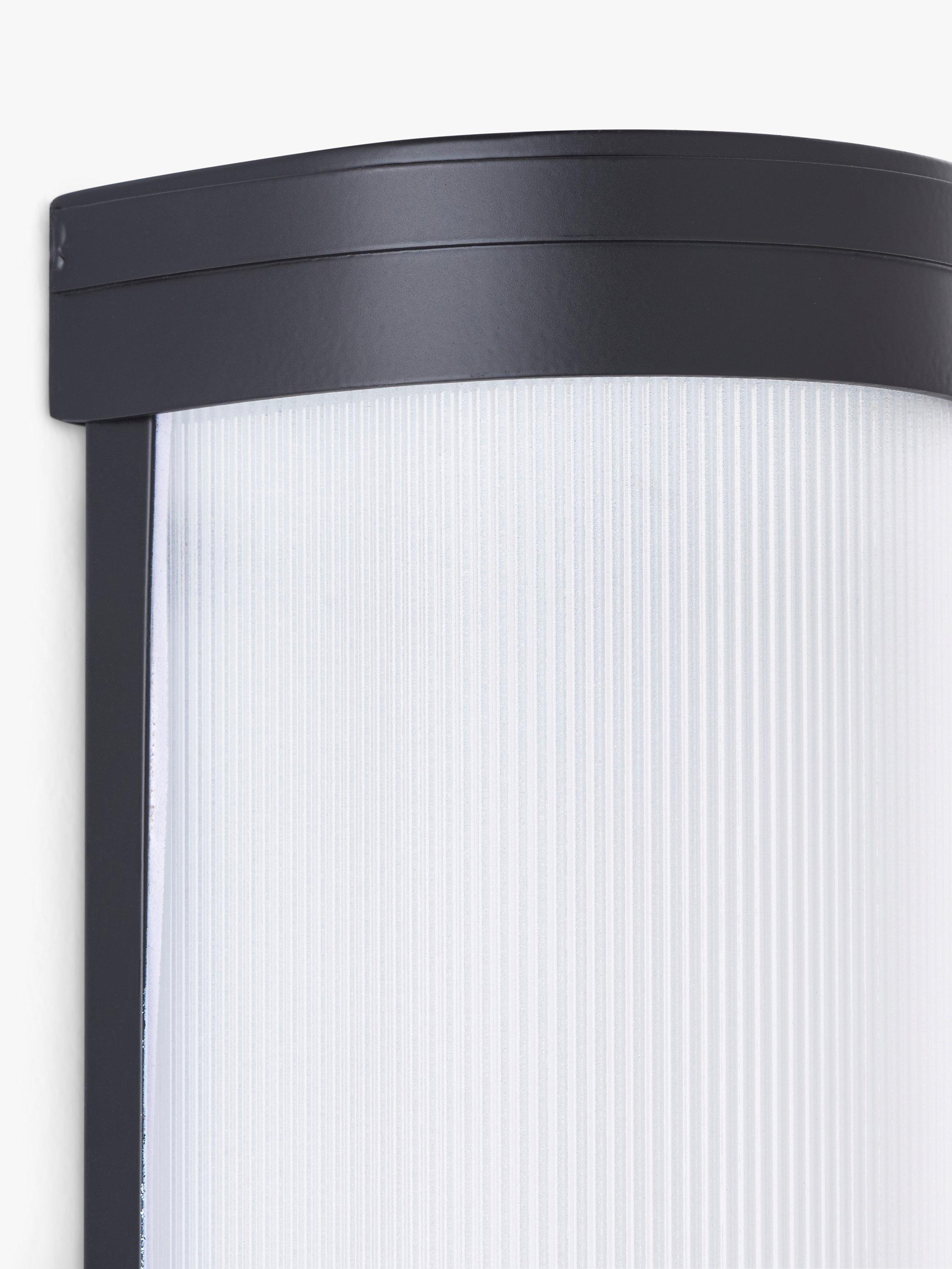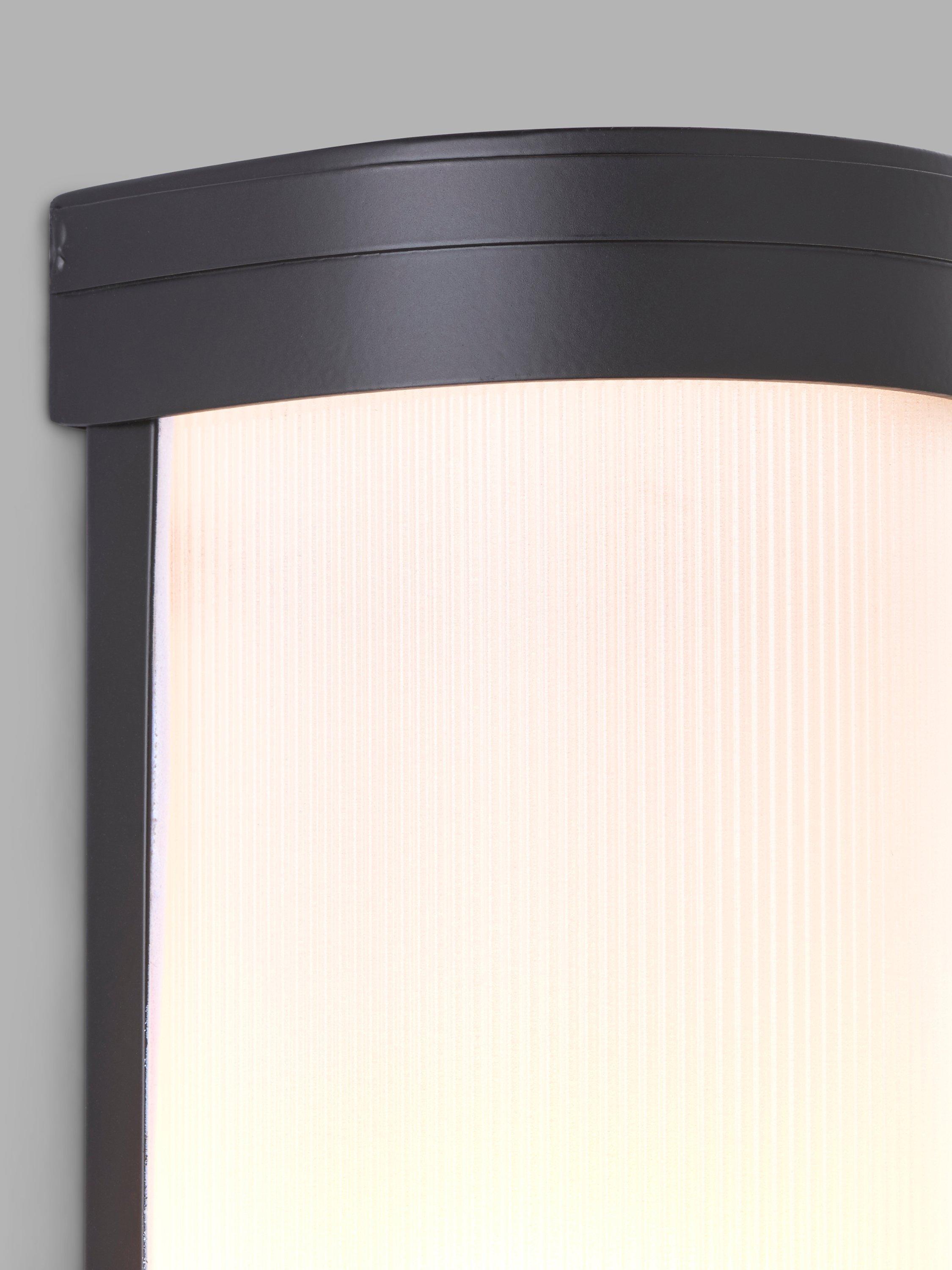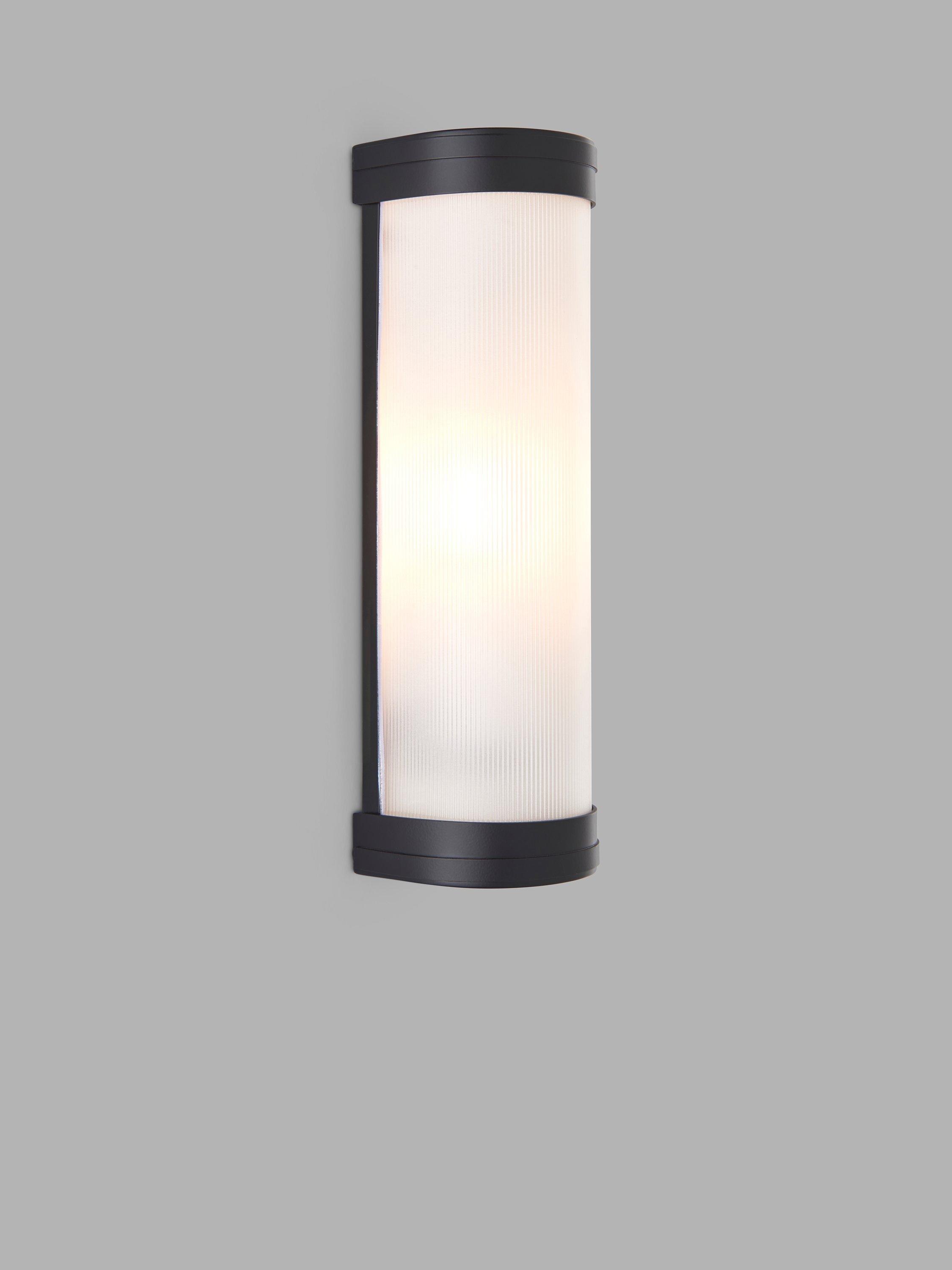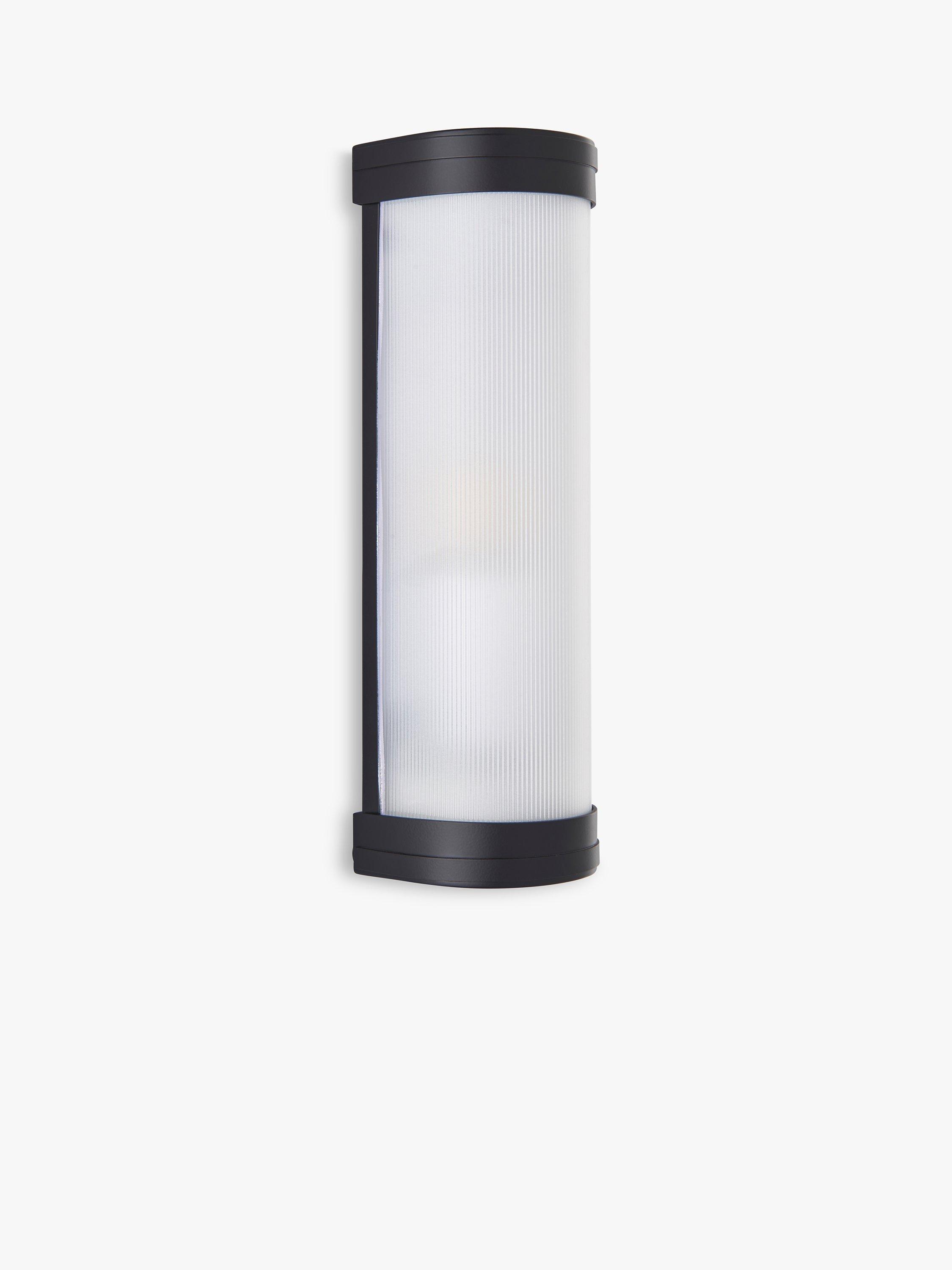 A stylish ribbed glass outdoor wall light mounted on a modern matt frame.