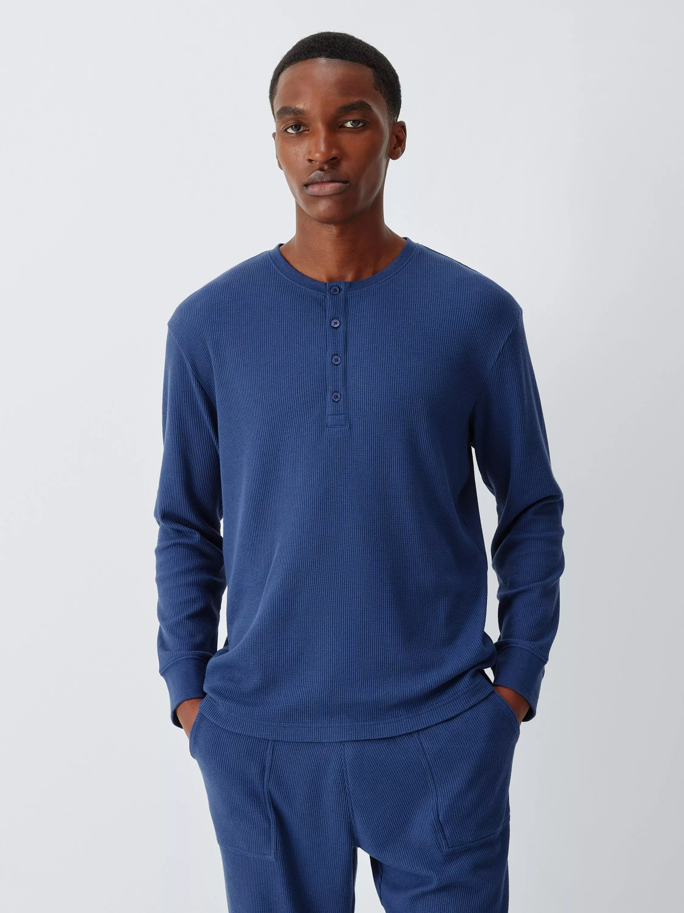 With a cooling waffle texture, our Henley top is an ideal statement of simple style. With a four-button placket and elasticated cuffs for comfort.