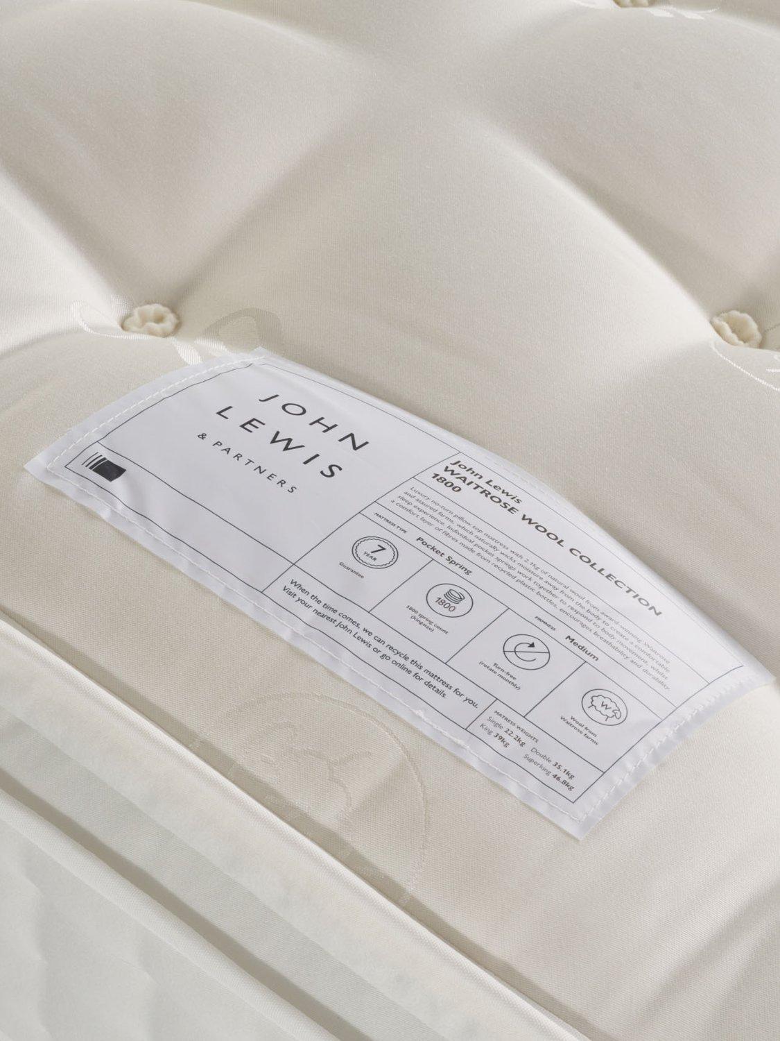 John LewisWaitrose Wool 1800 Pillowtop Pocket Spring Mattress, Medium Tension, King Size