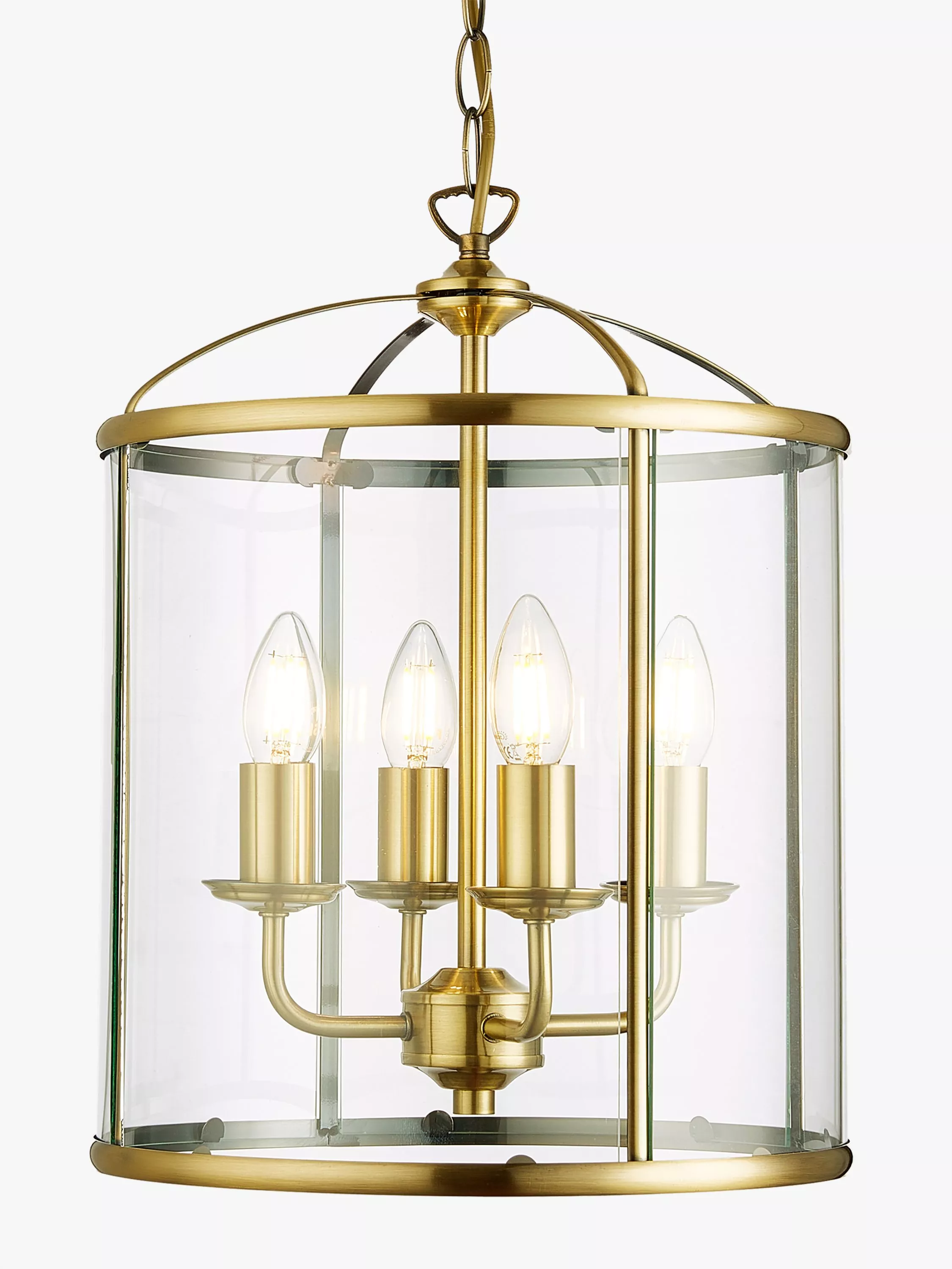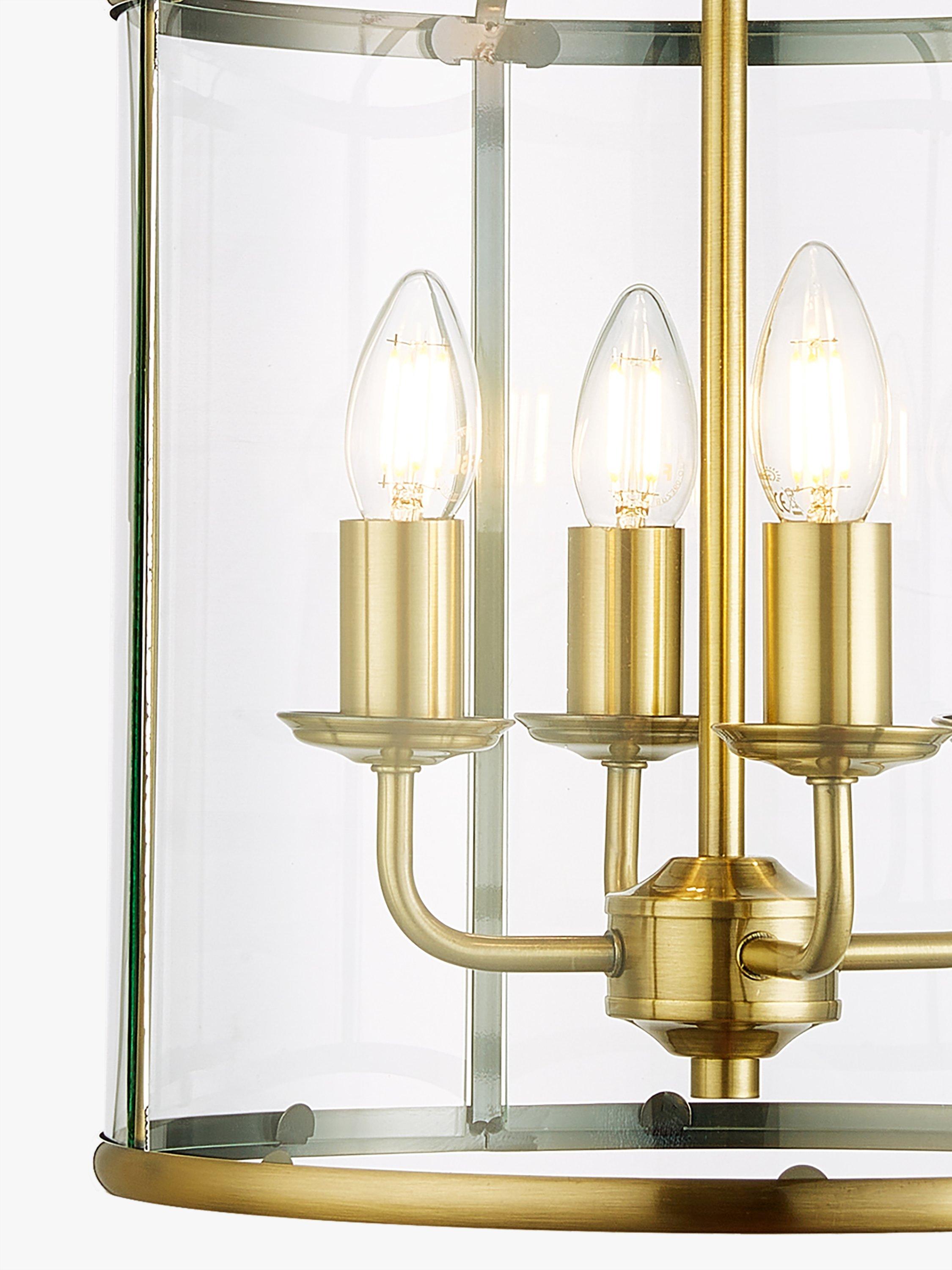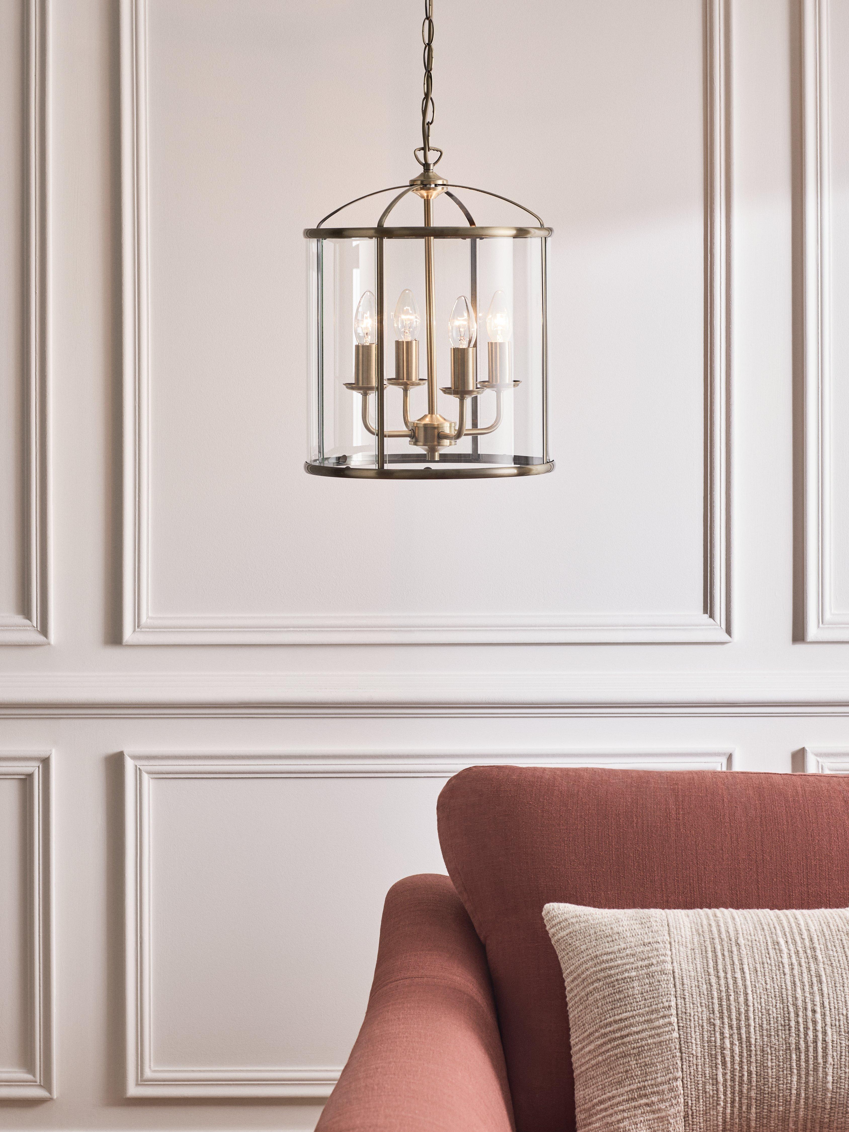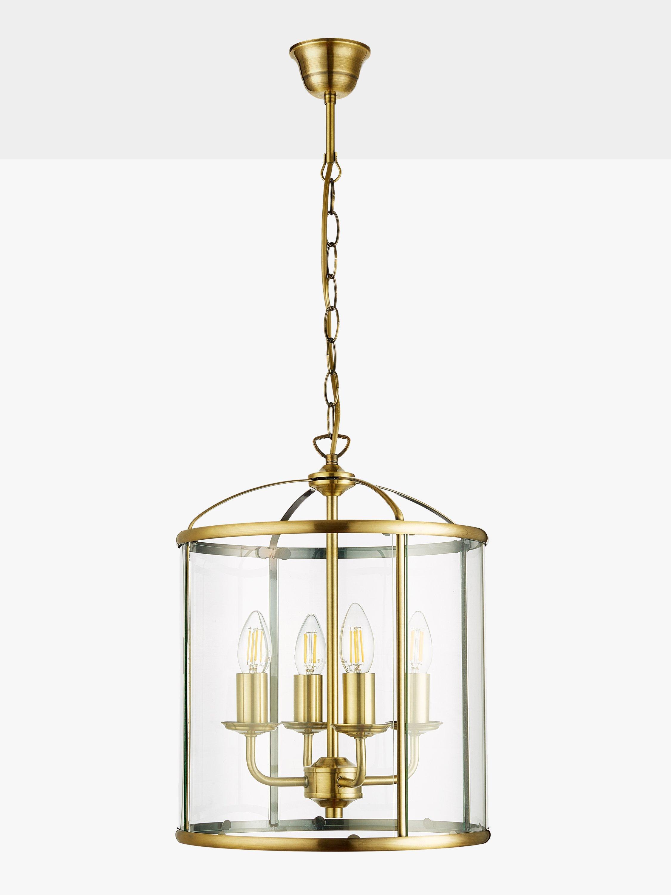 This Victorian style antique brass lantern has four bulb holders and when lit, will cast a radiance of light.